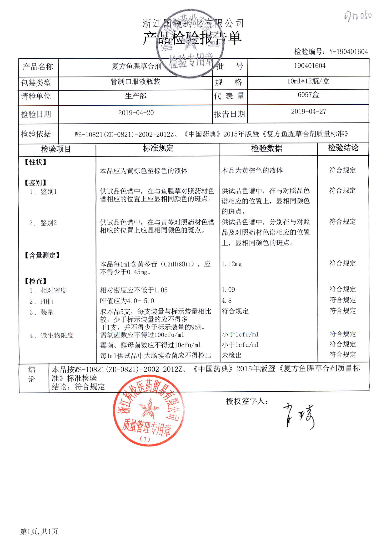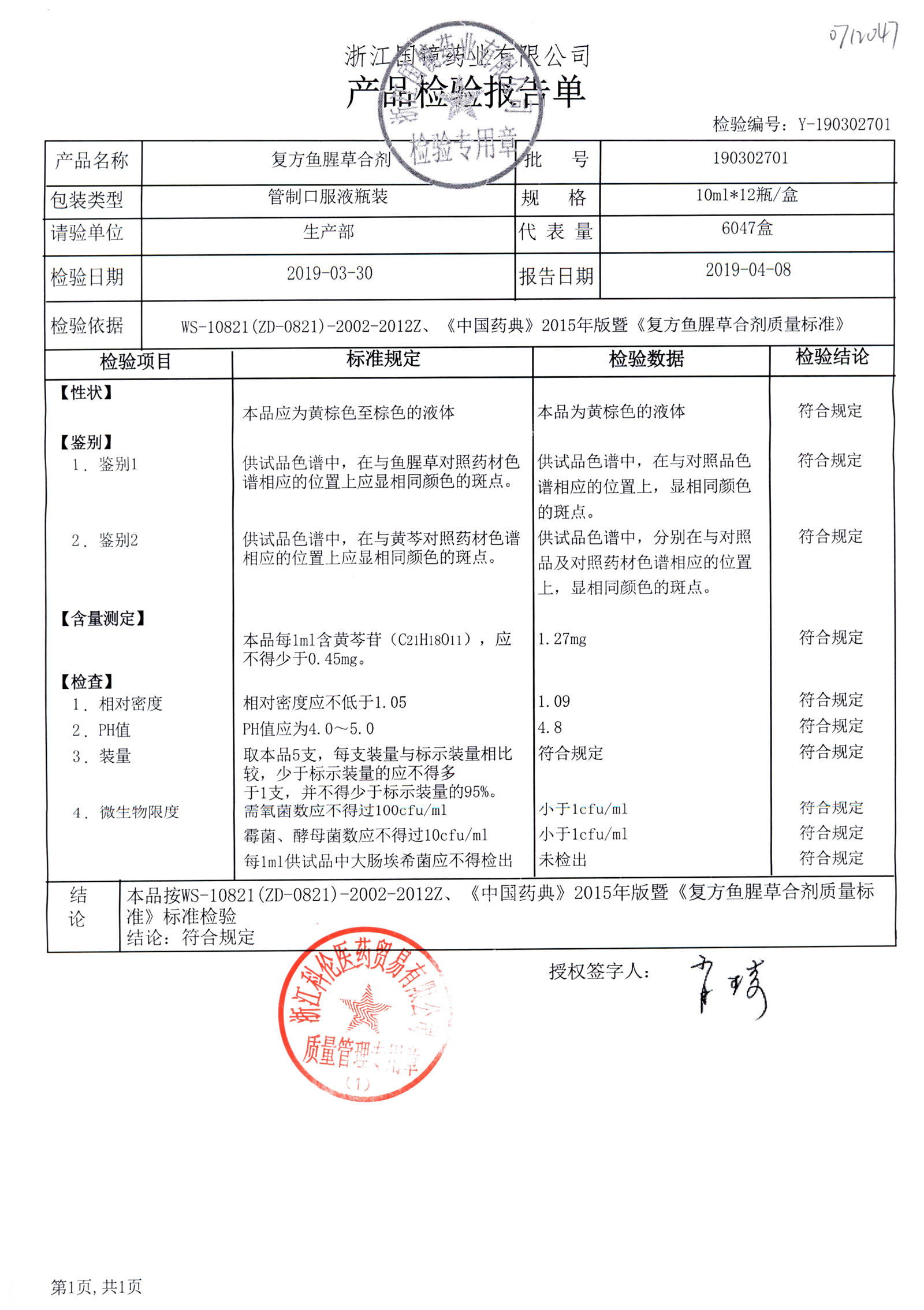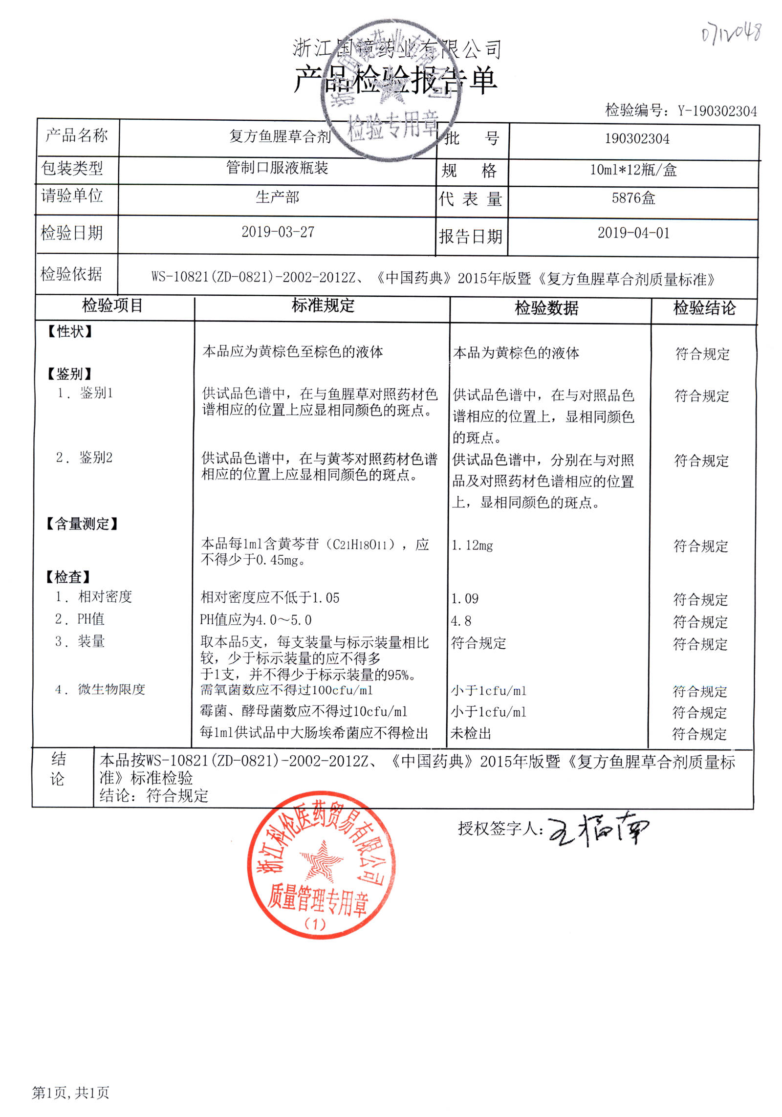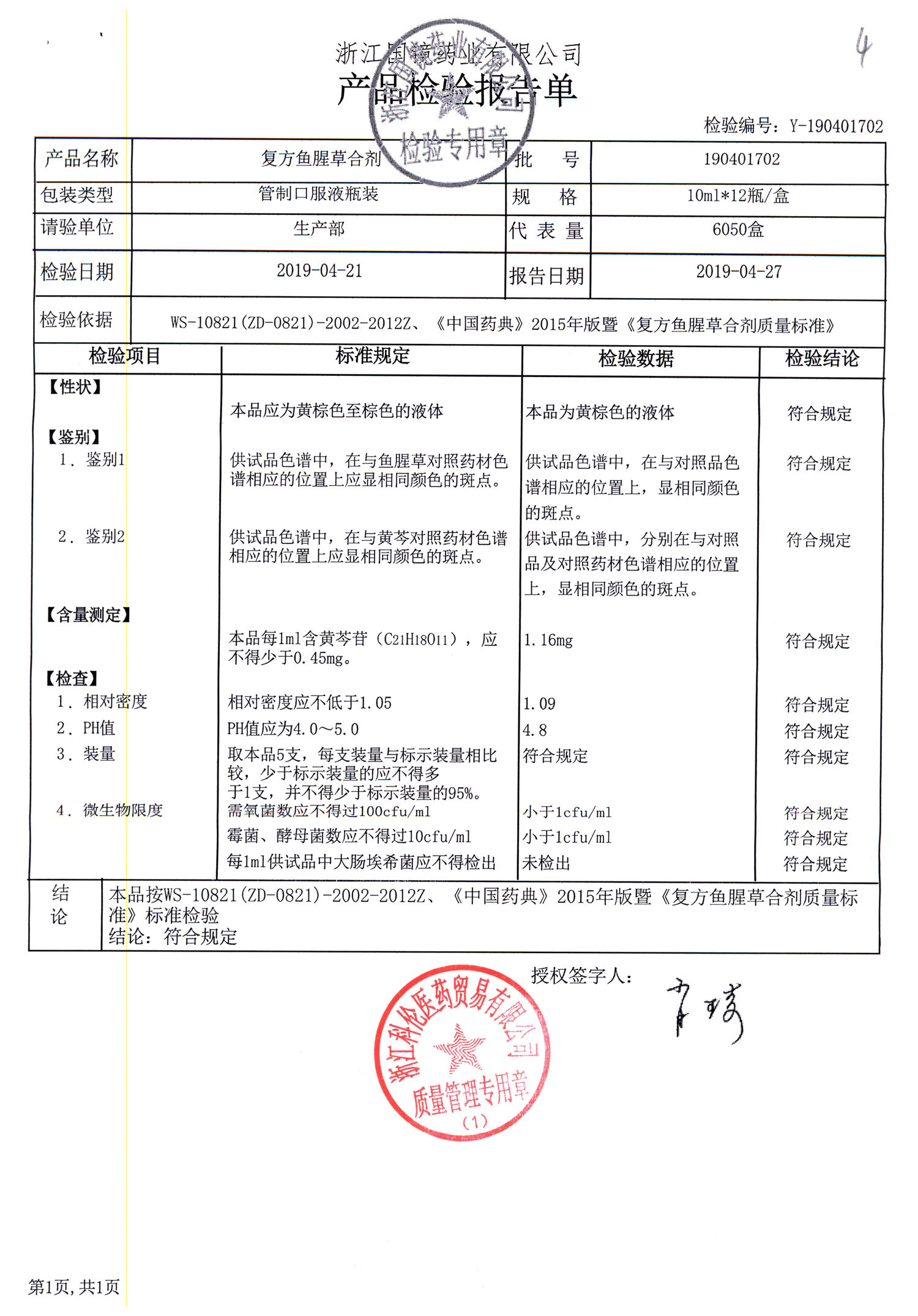 | 復方魚腥草合劑 | 10ml | 190502001 | 查看詳情 |