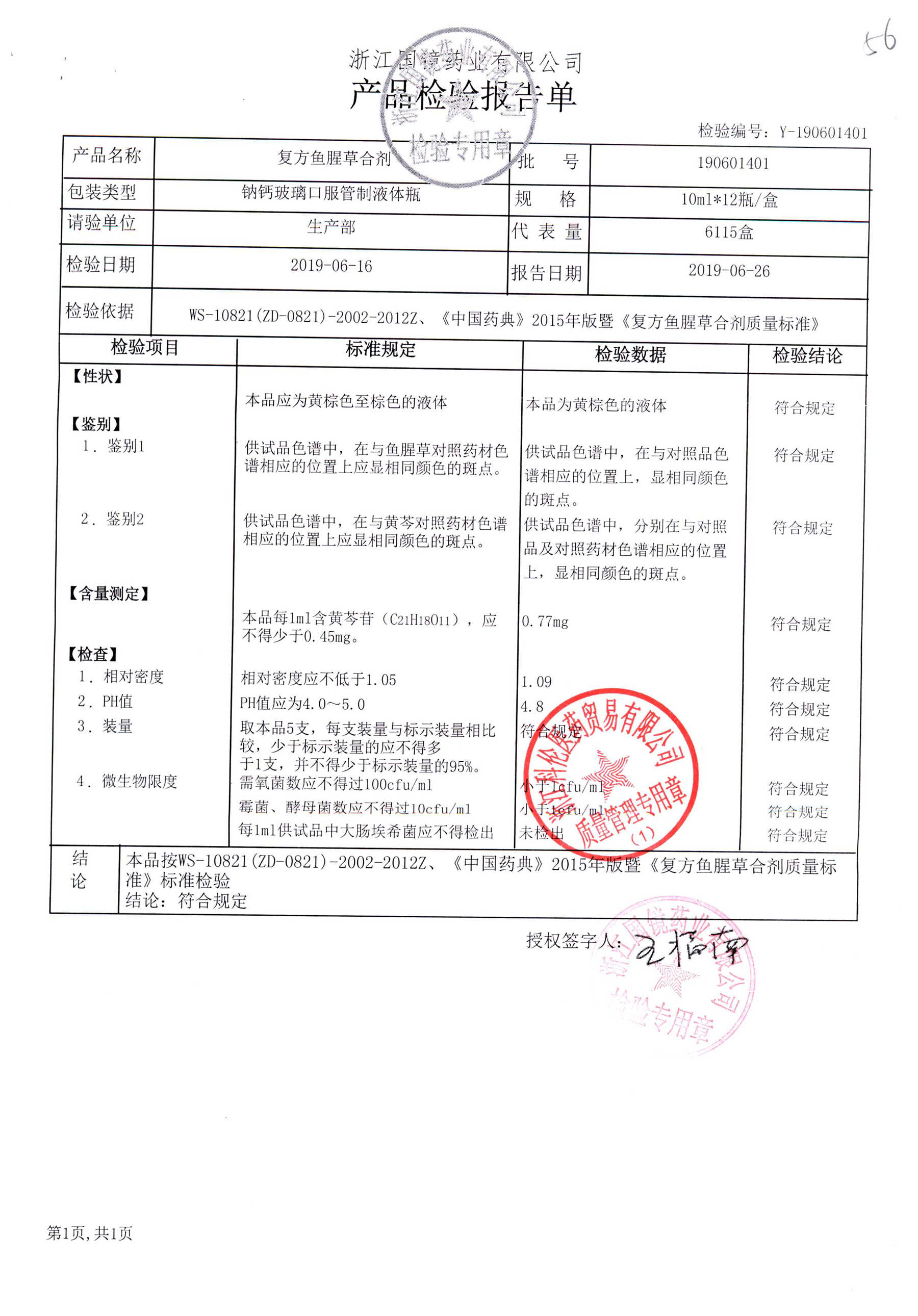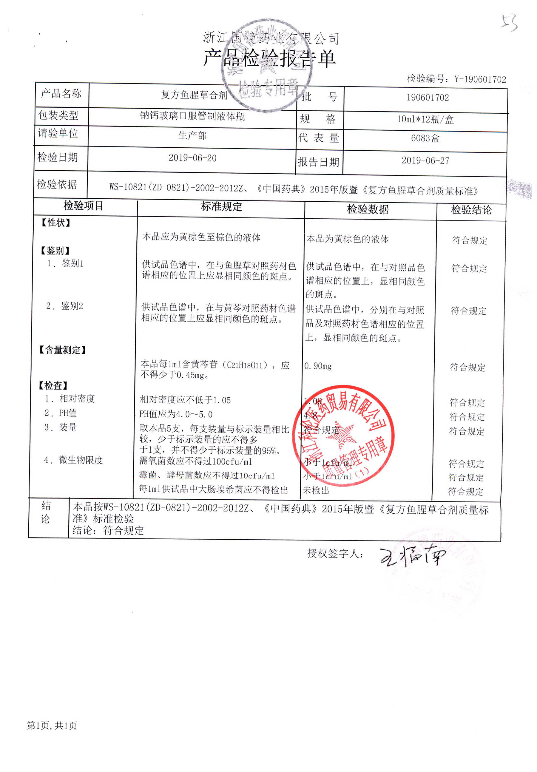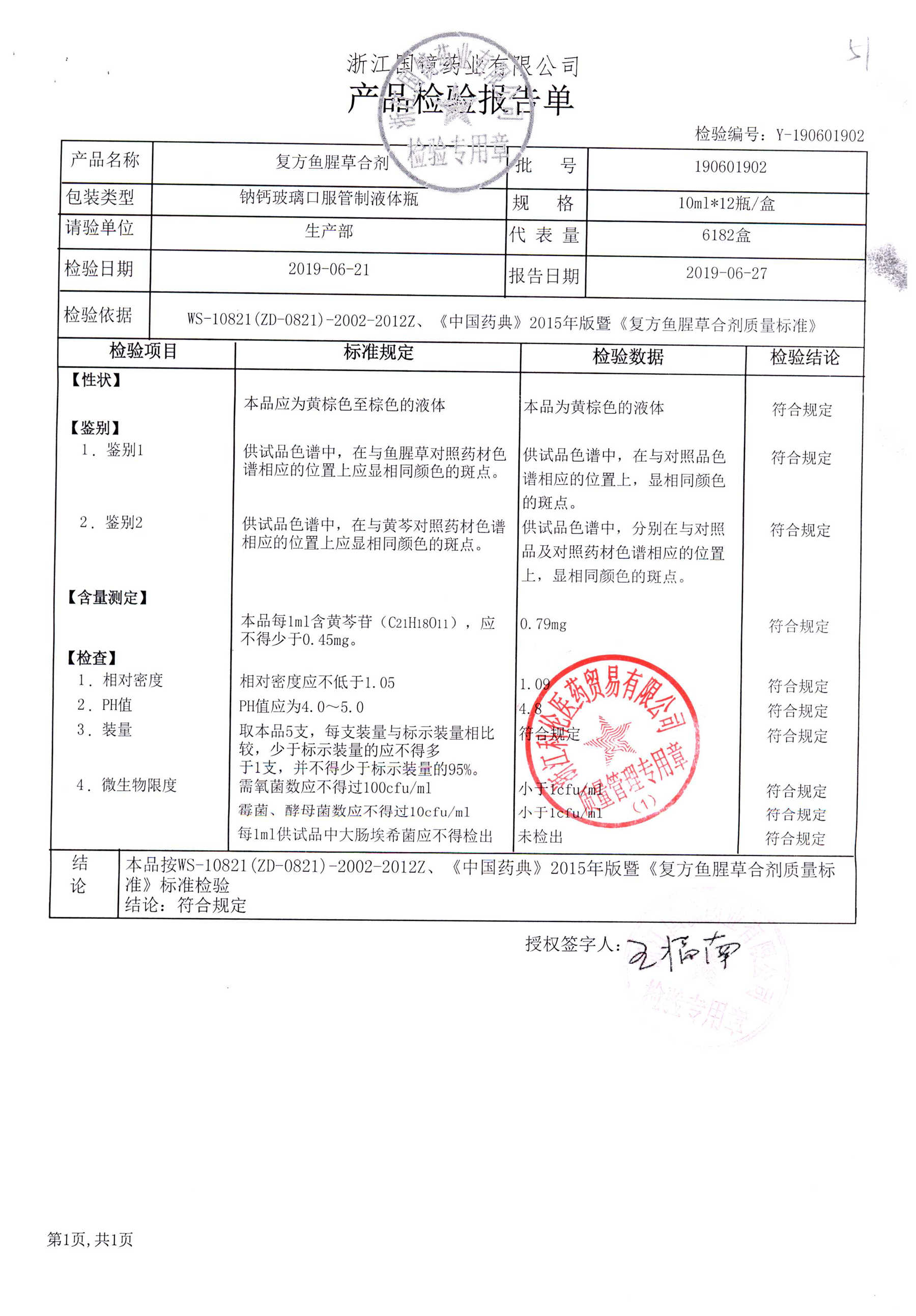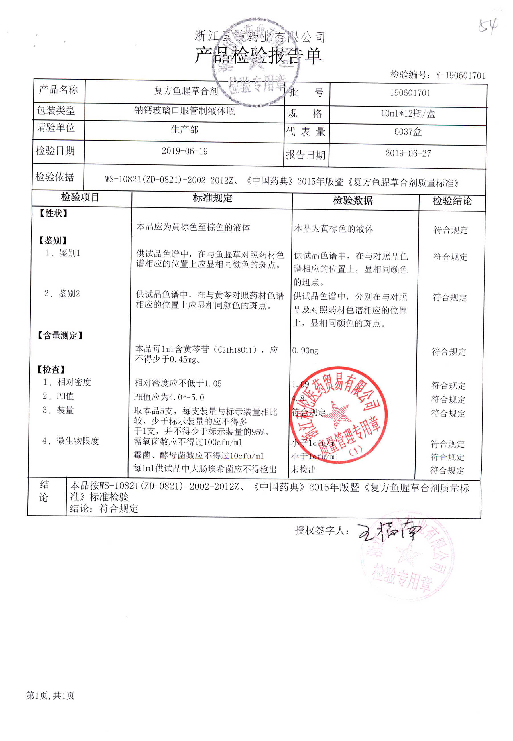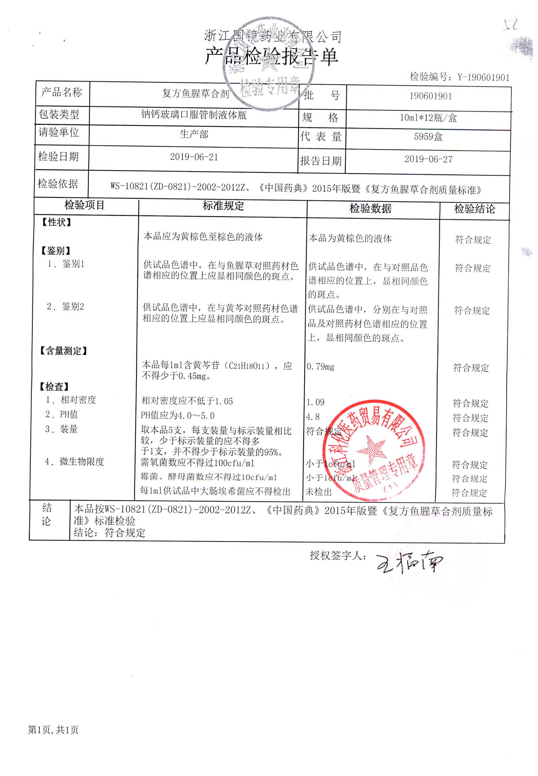 | 復方魚腥草合劑 | 10ml | 190602001 | 查看詳情 |