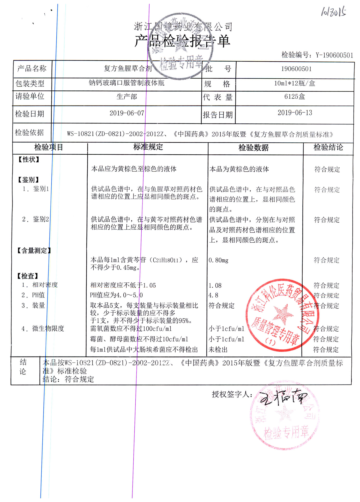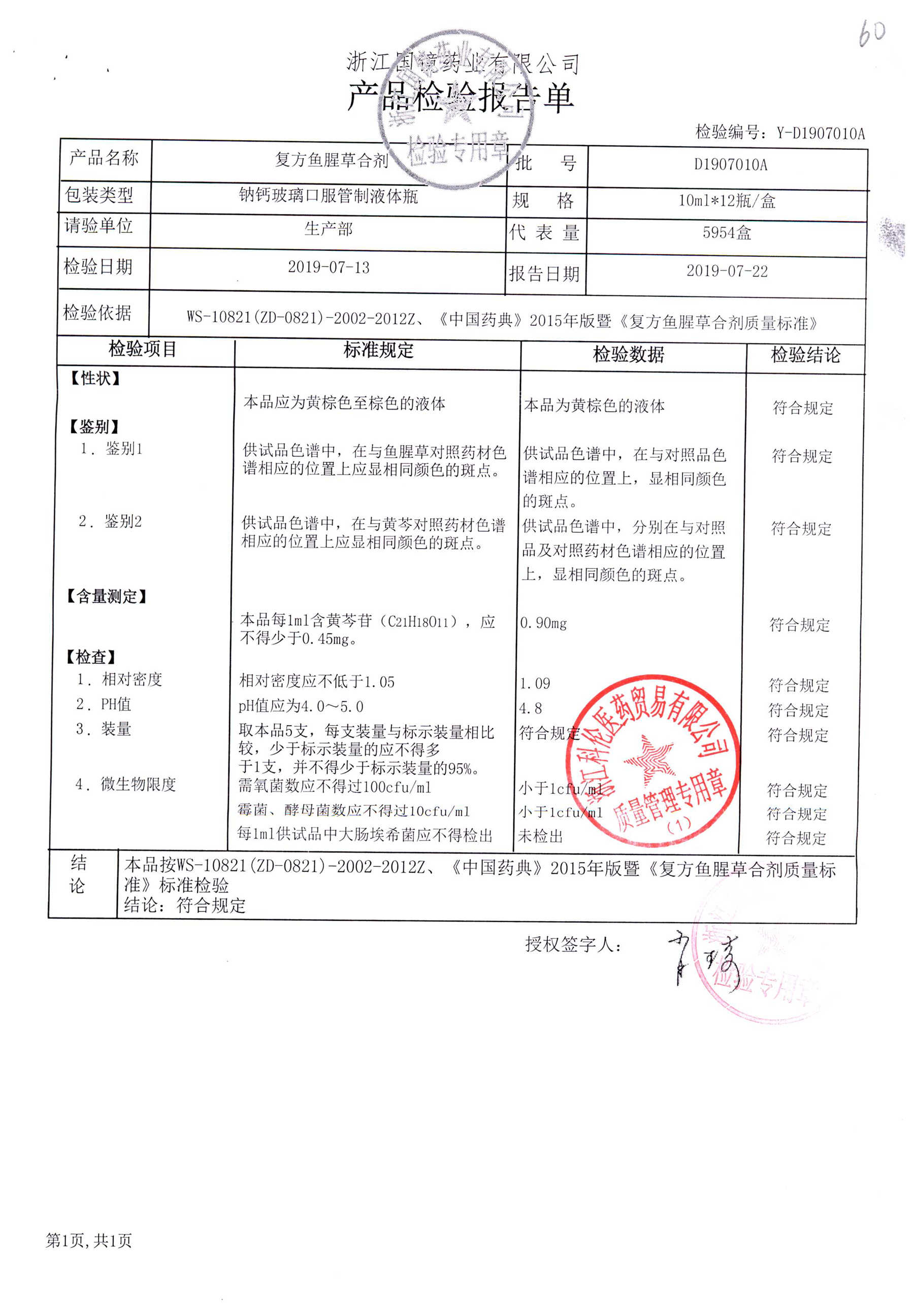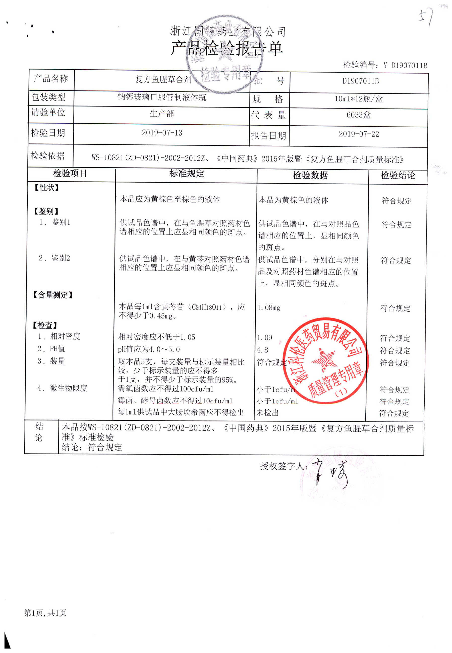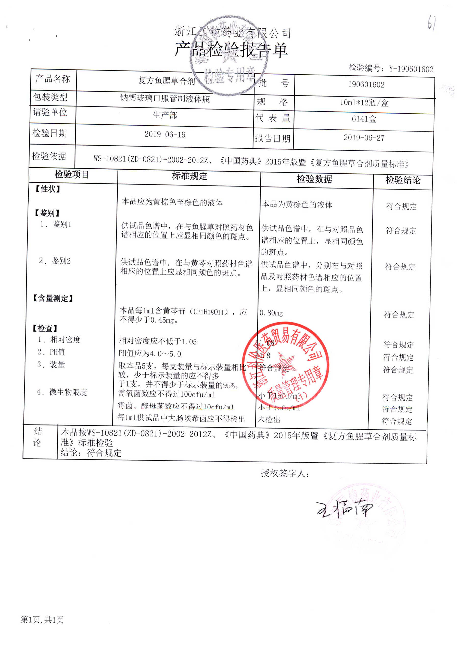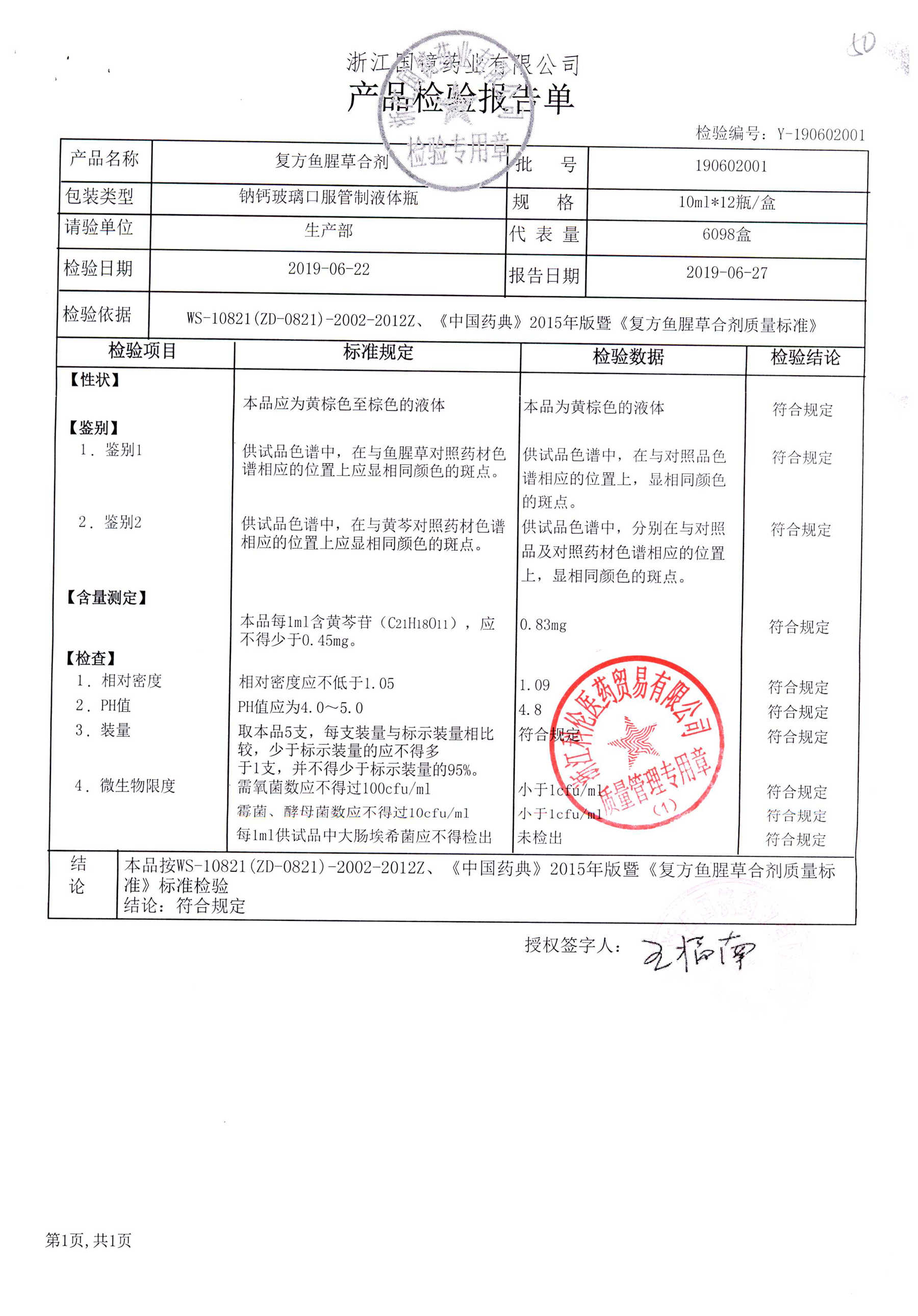 | 復方魚腥草合劑 | 10ml | 190602001 | 查看詳情 |
