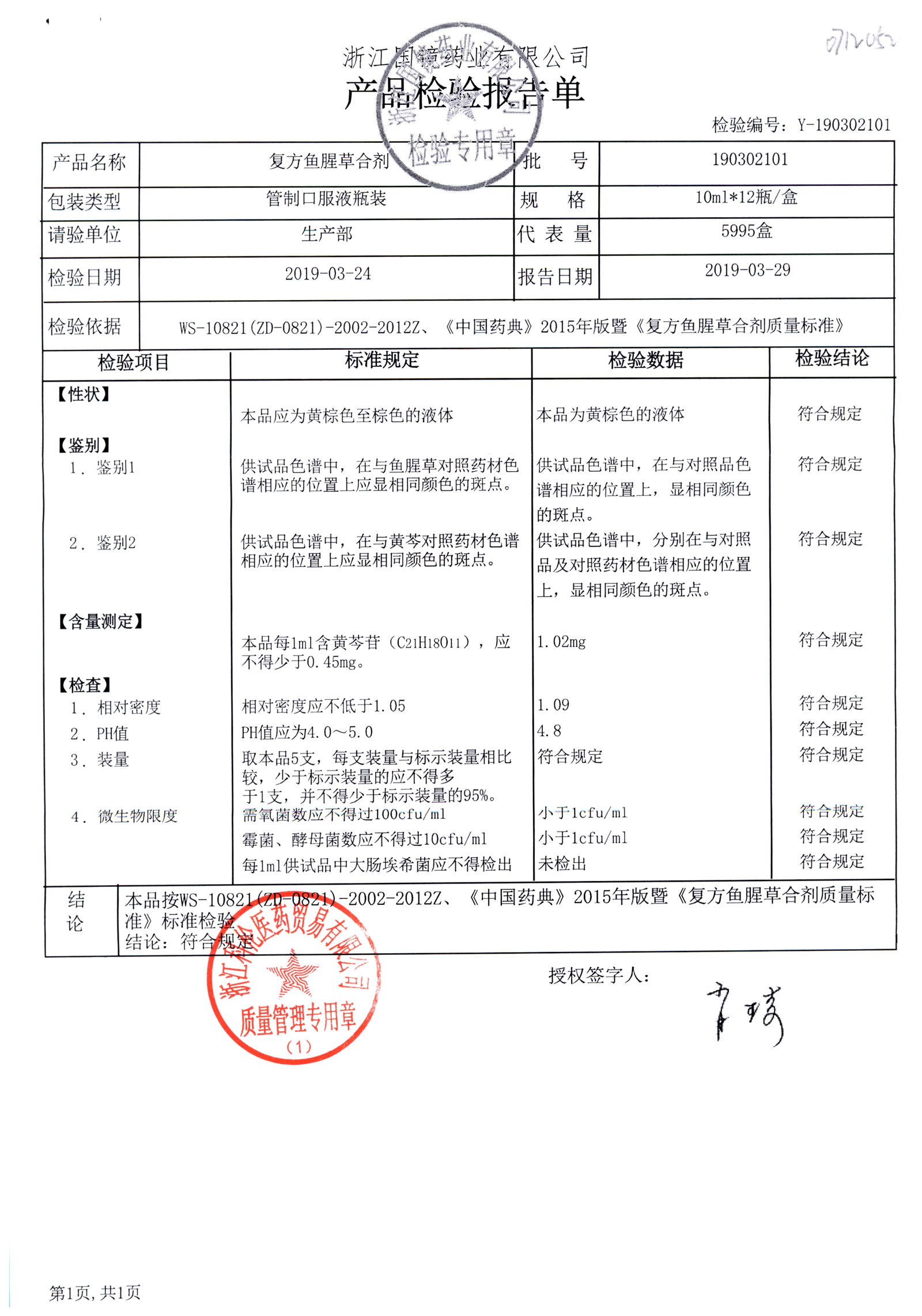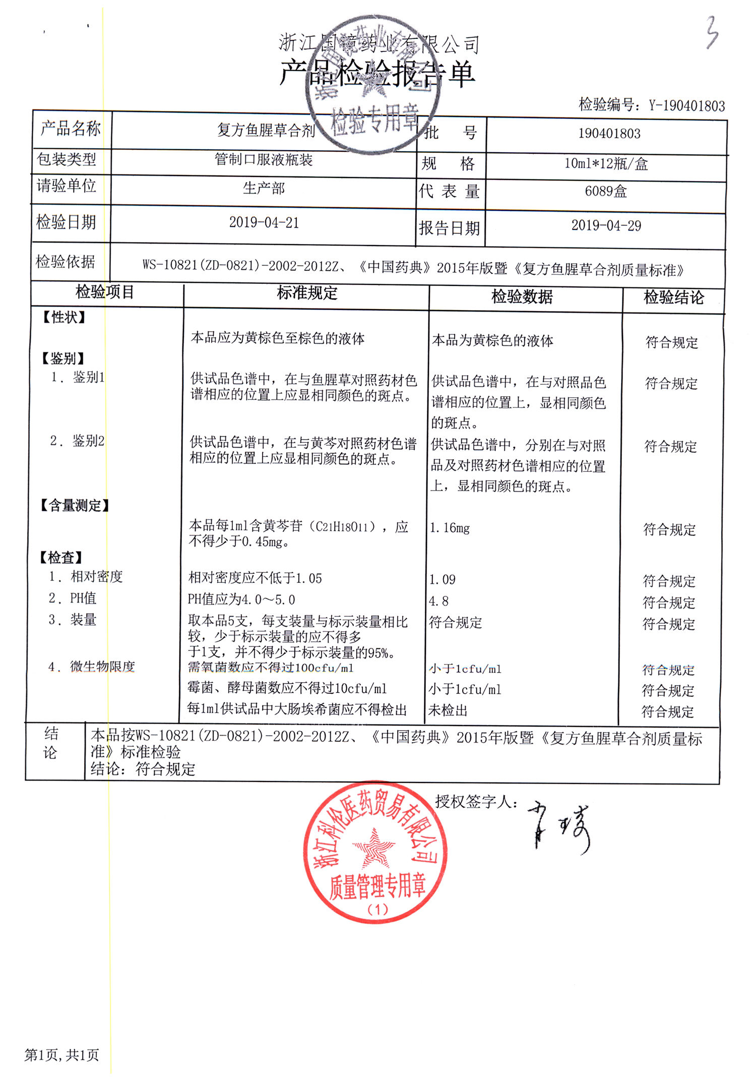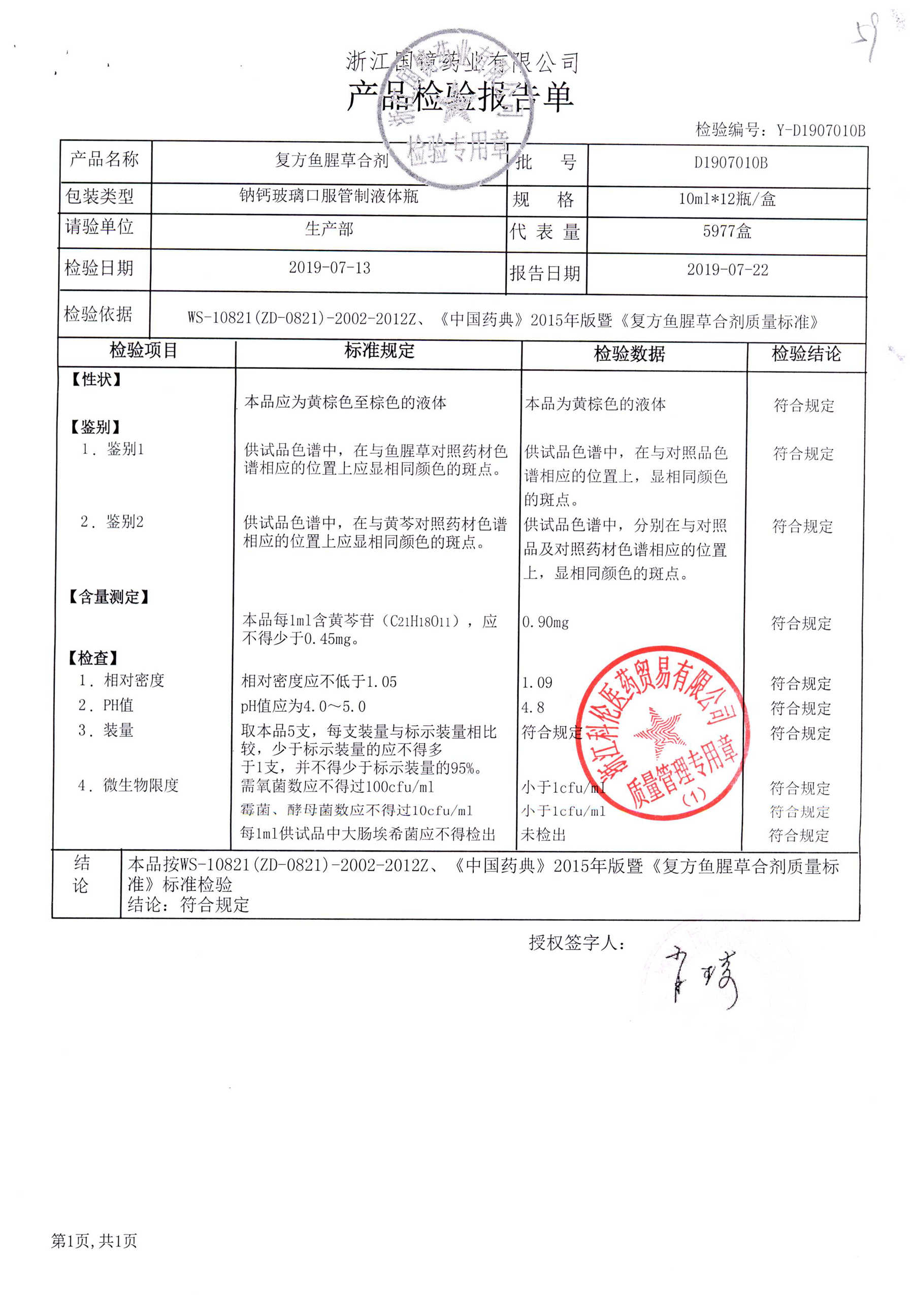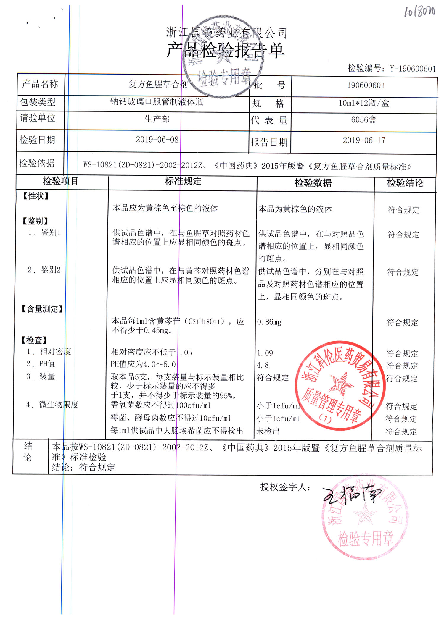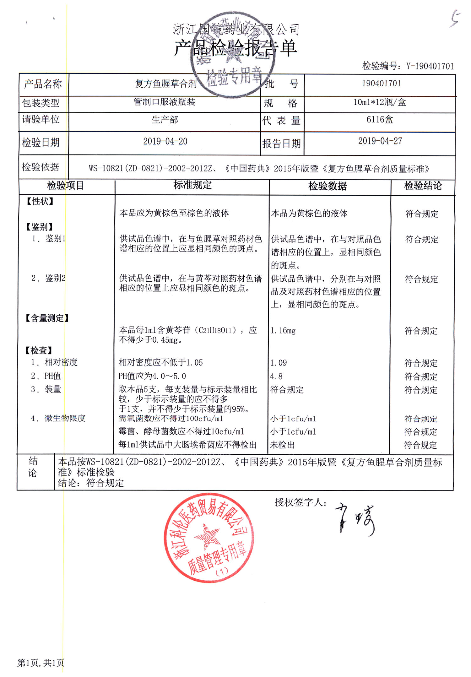 | 復方魚腥草合劑 | 10ml | 190602001 | 查看詳情 |