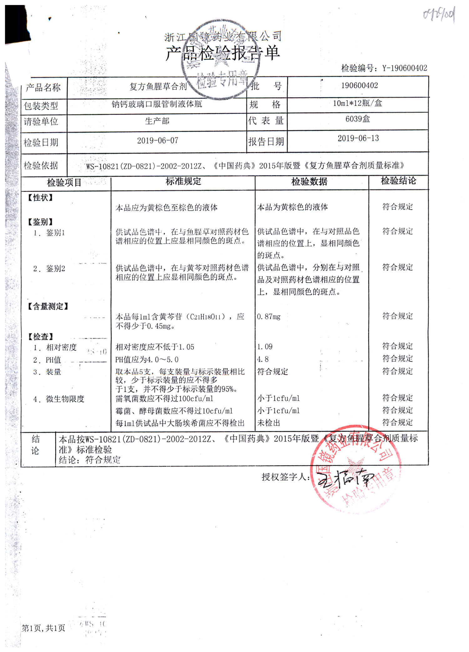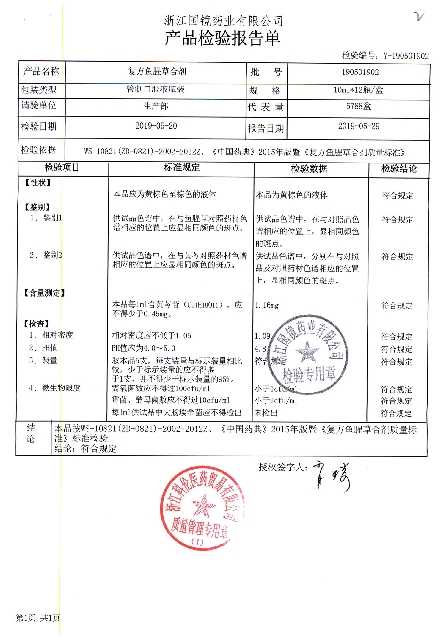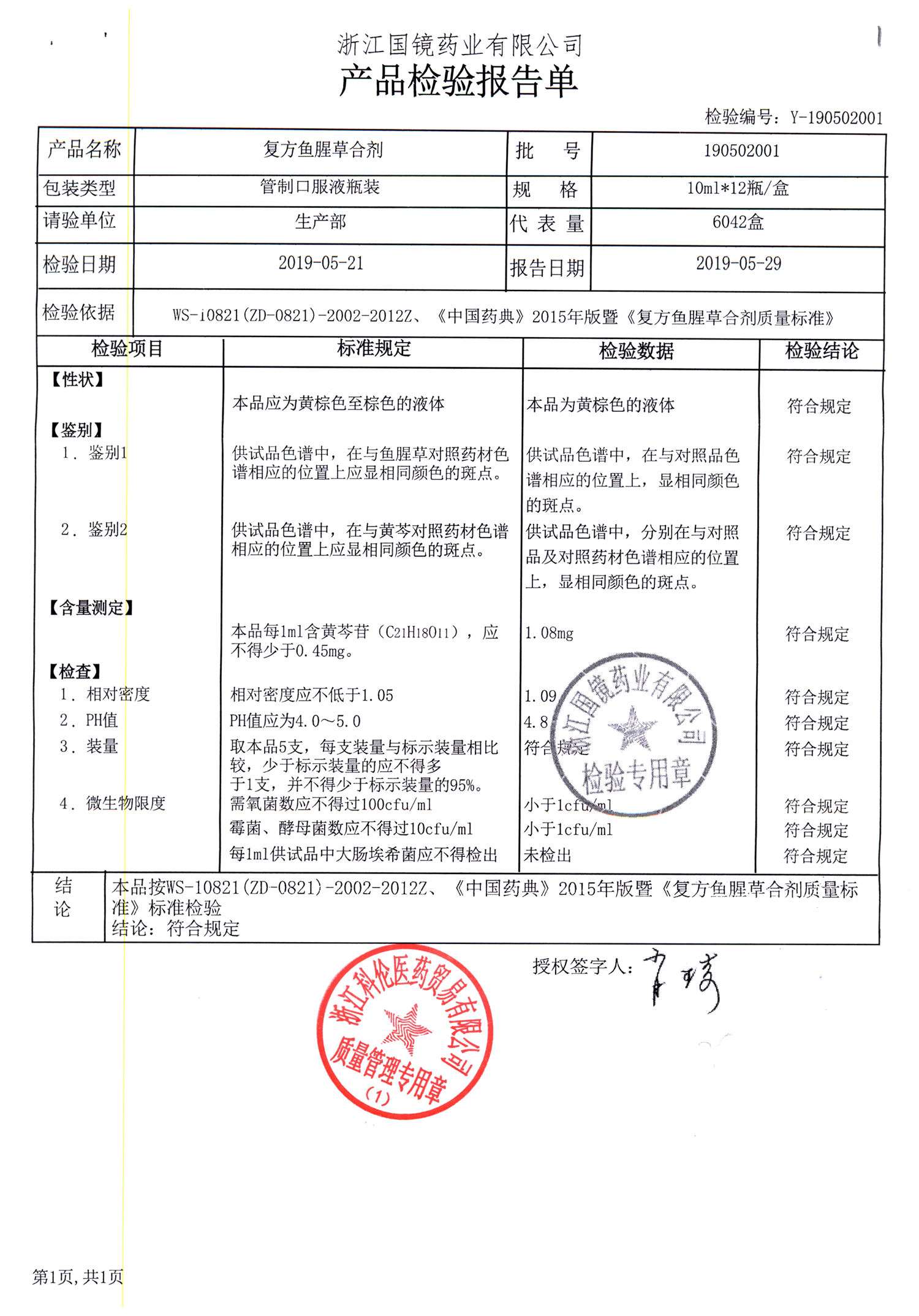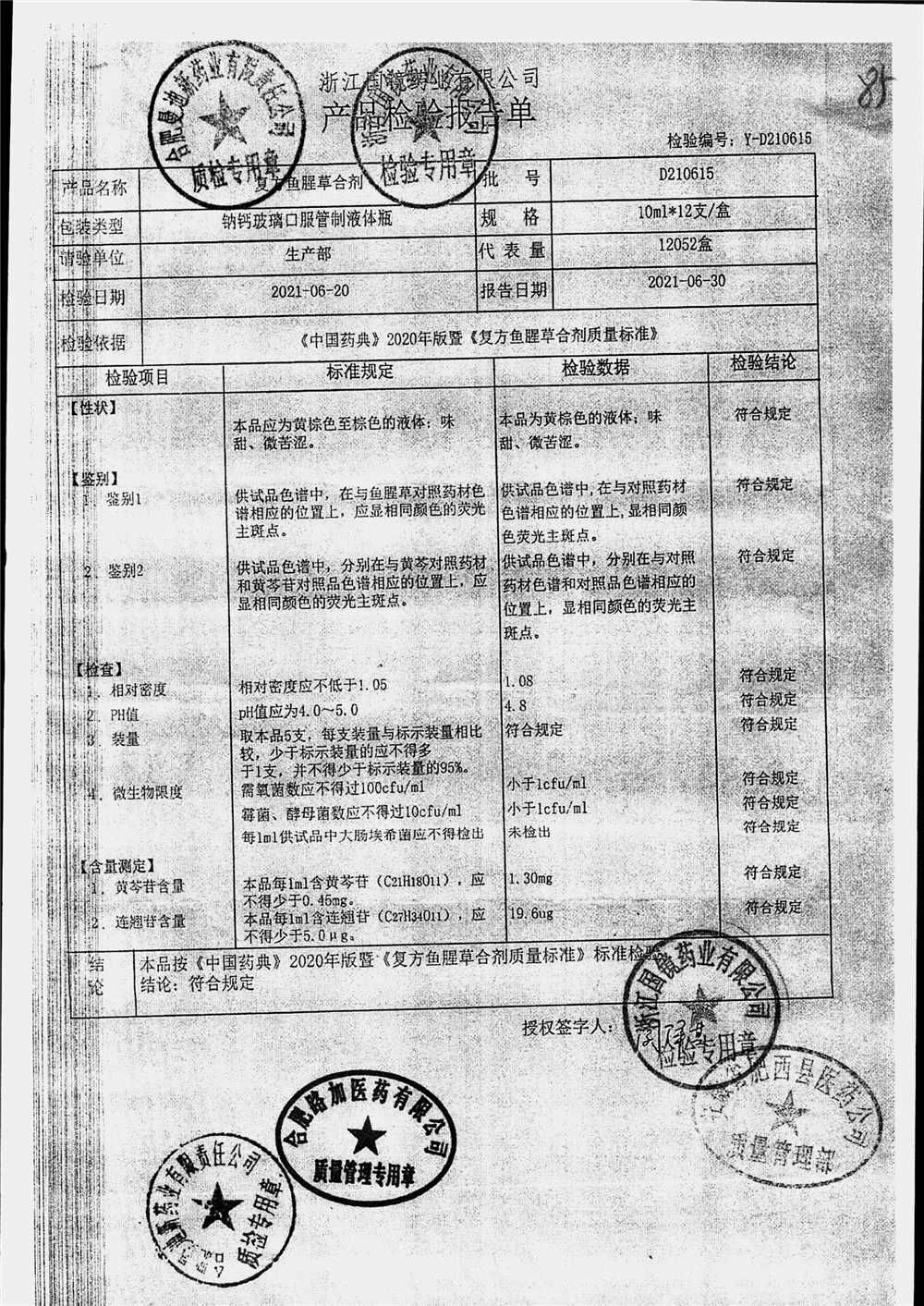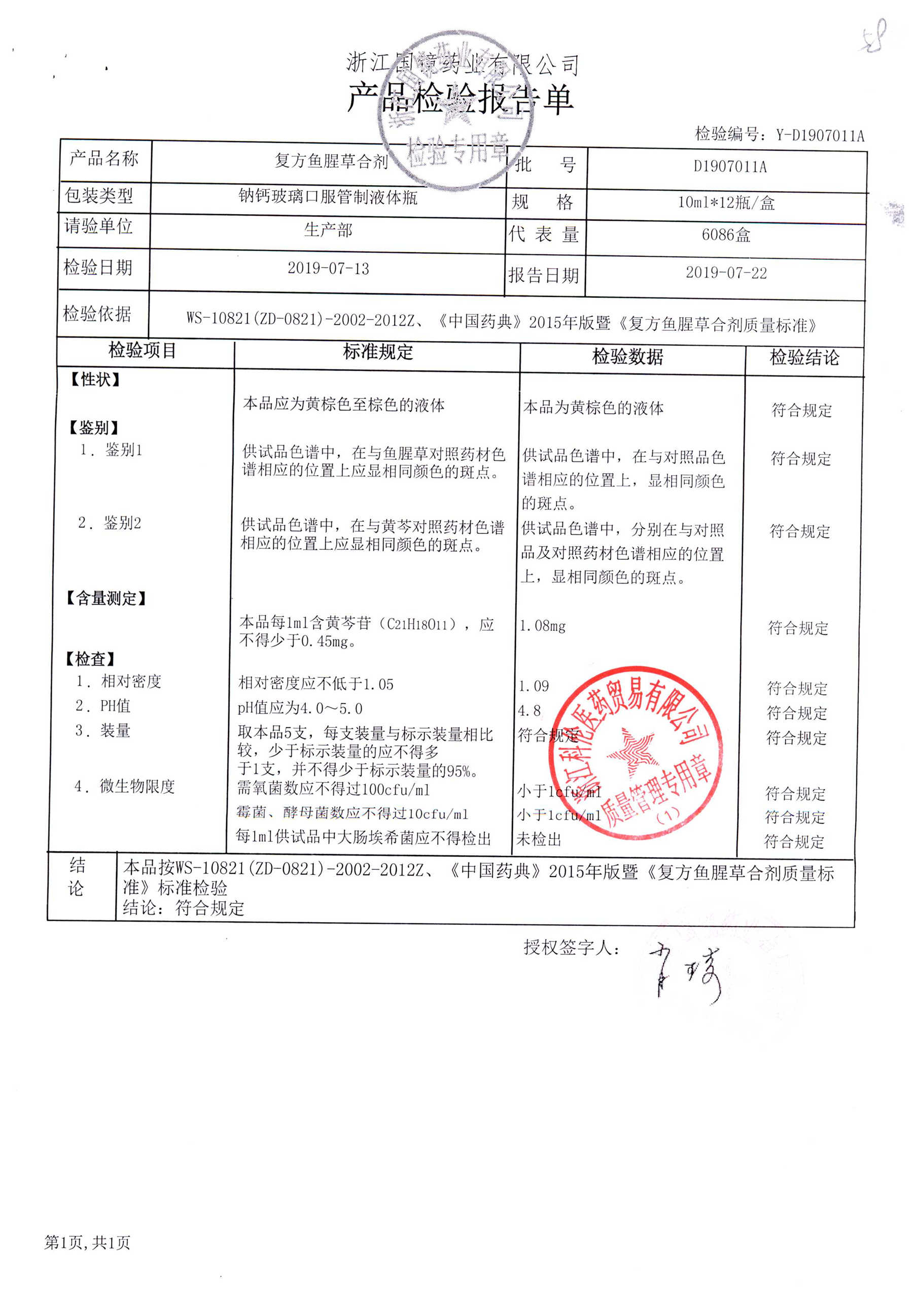 | 復方魚腥草合劑 | 10ml | 190602001 | 查看詳情 |