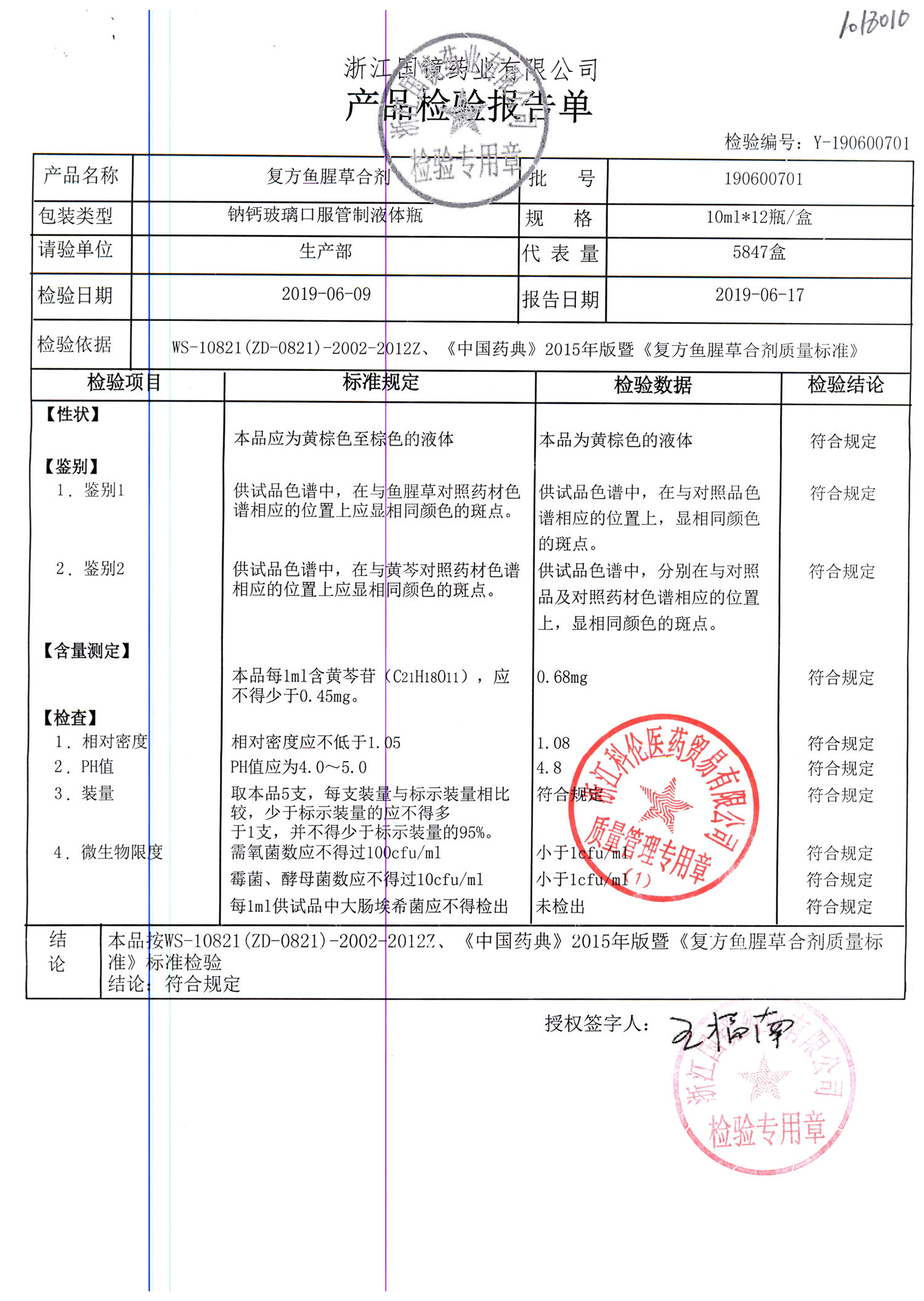 | 復方魚腥草合劑 | 10ml | 190601901 | 查看詳情 |