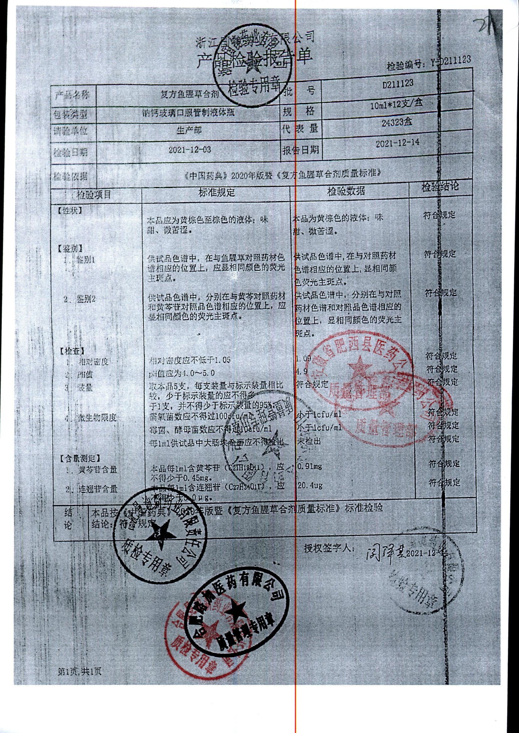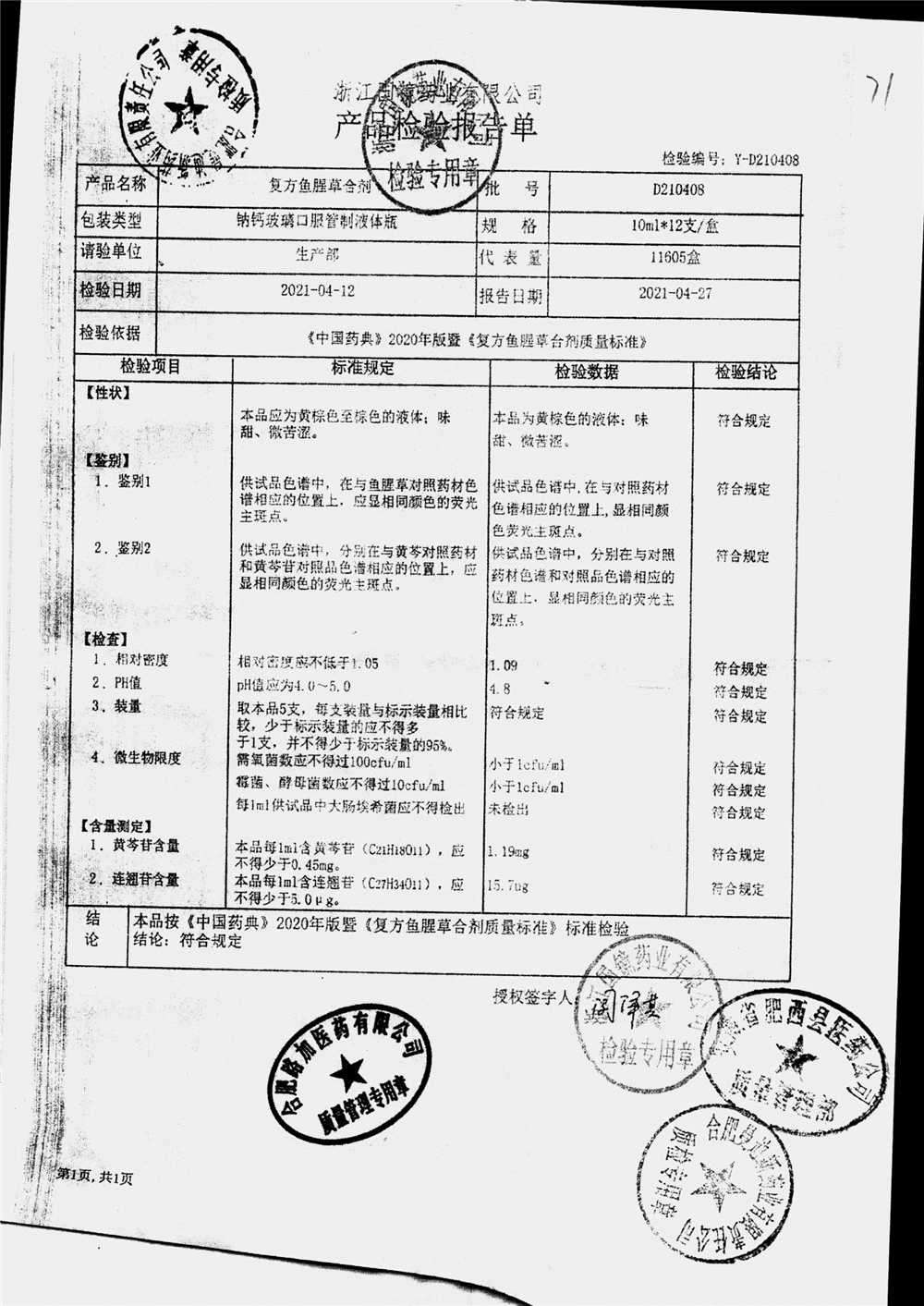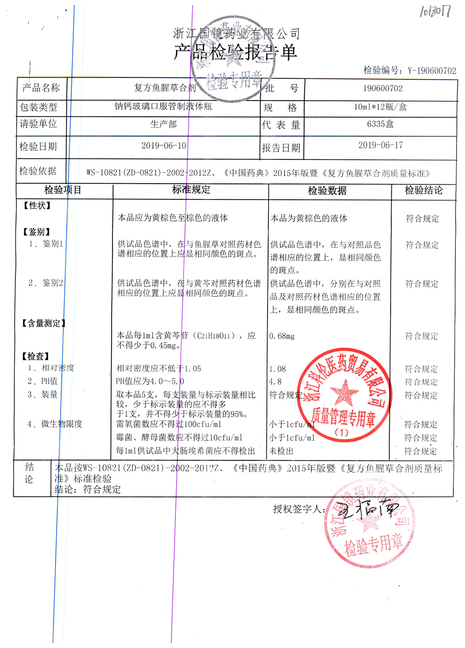 | 復方魚腥草合劑 | 10ml | 190600701 | 查看詳情 |