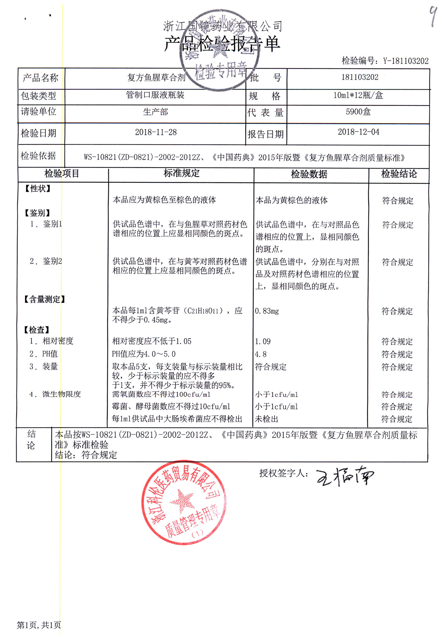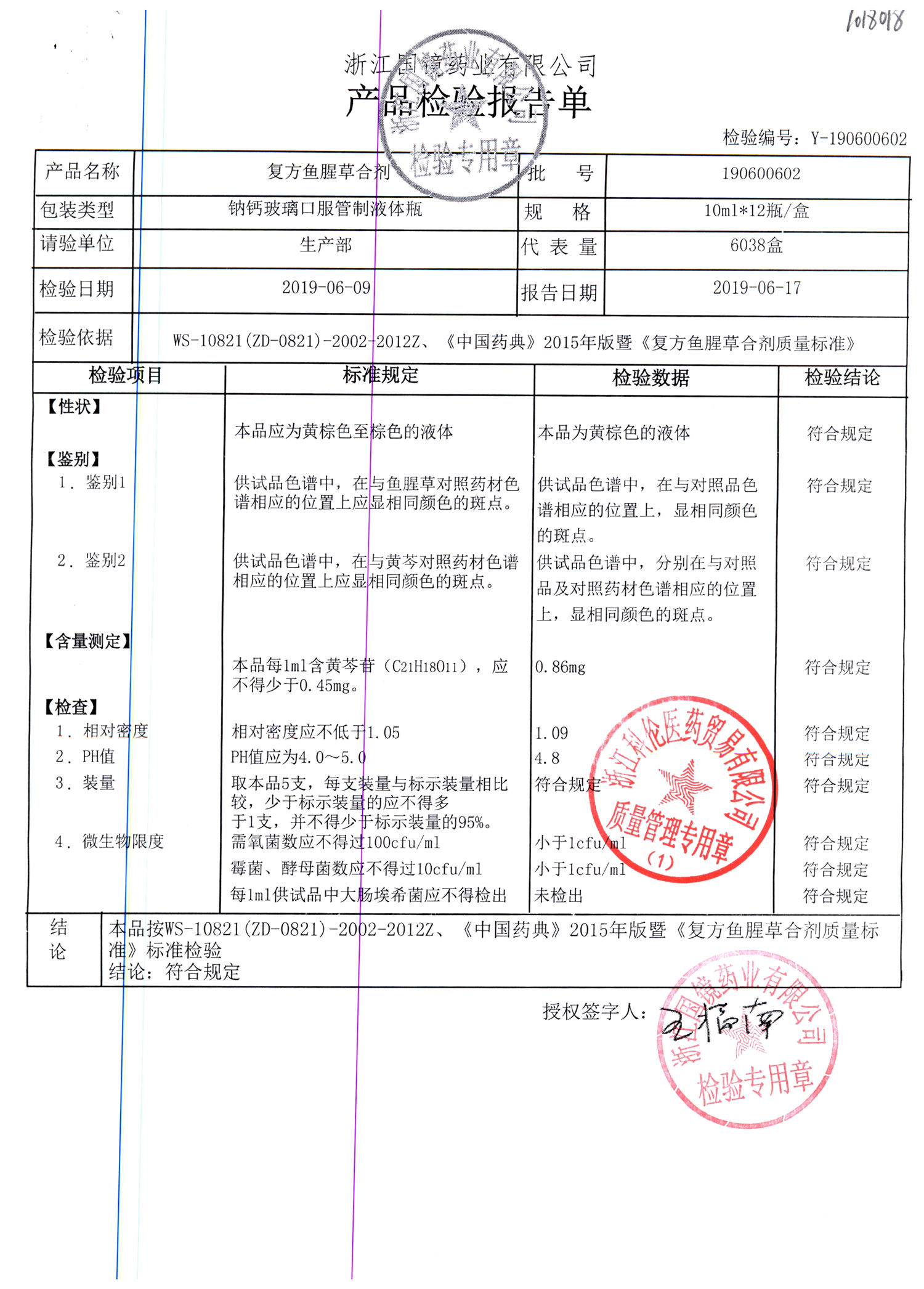 | 復方魚腥草合劑 | 10ml | 190200302 | 查看詳情 |