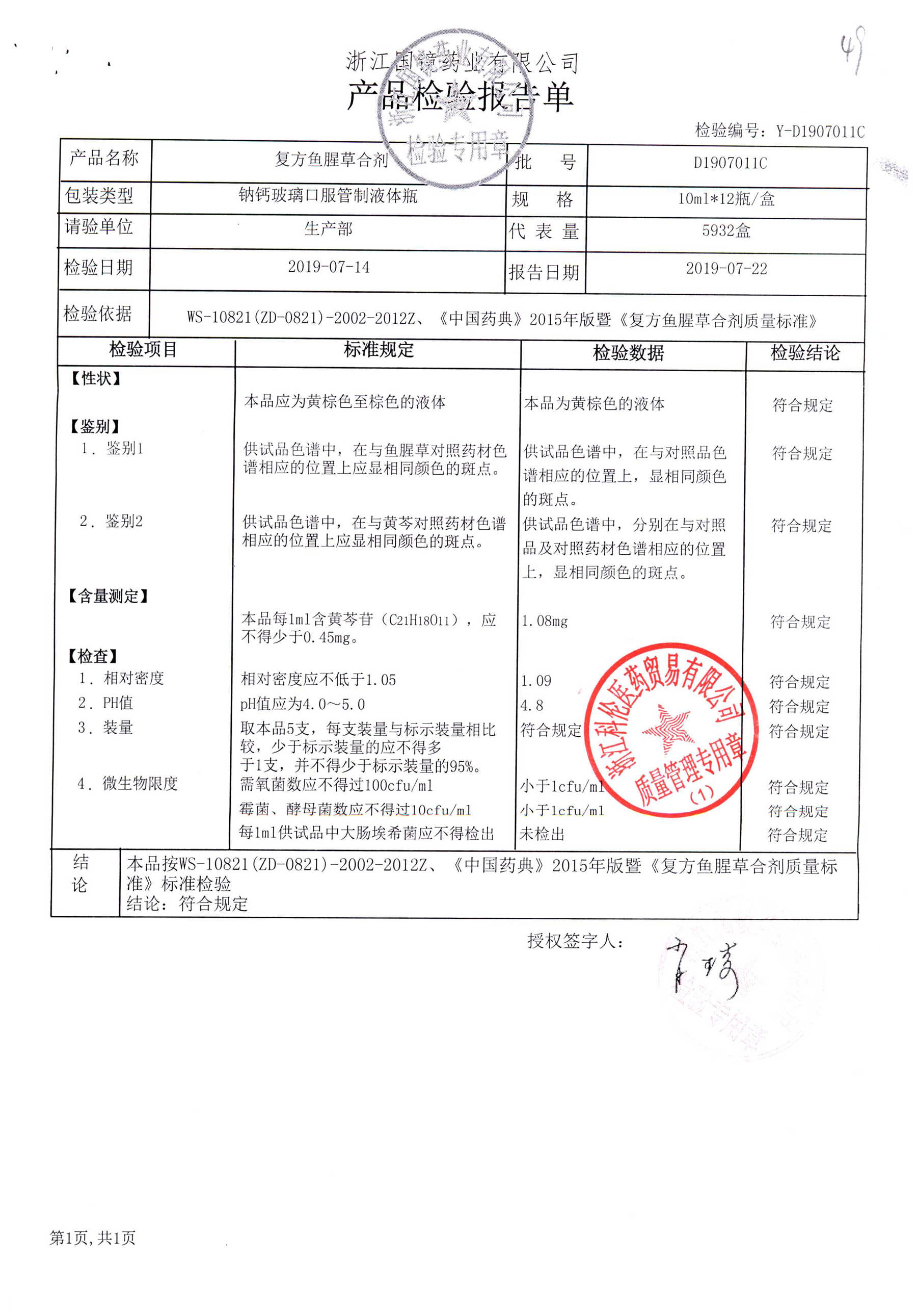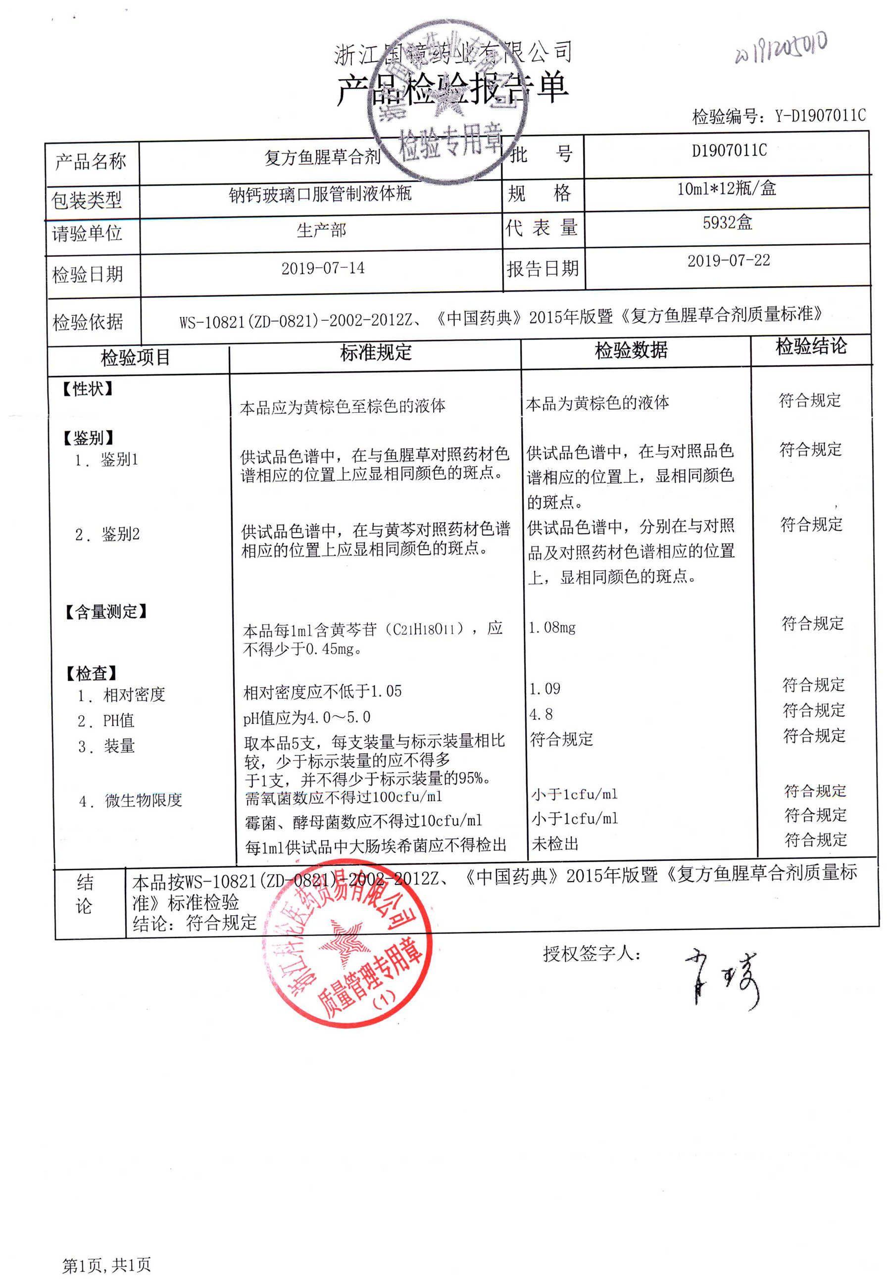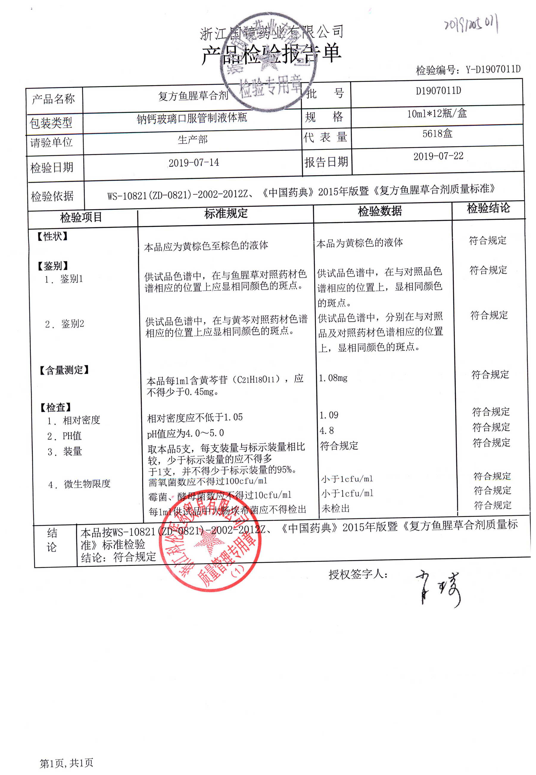 | 復方魚腥草合劑 | 10ml | D1907011C | 查看詳情 |