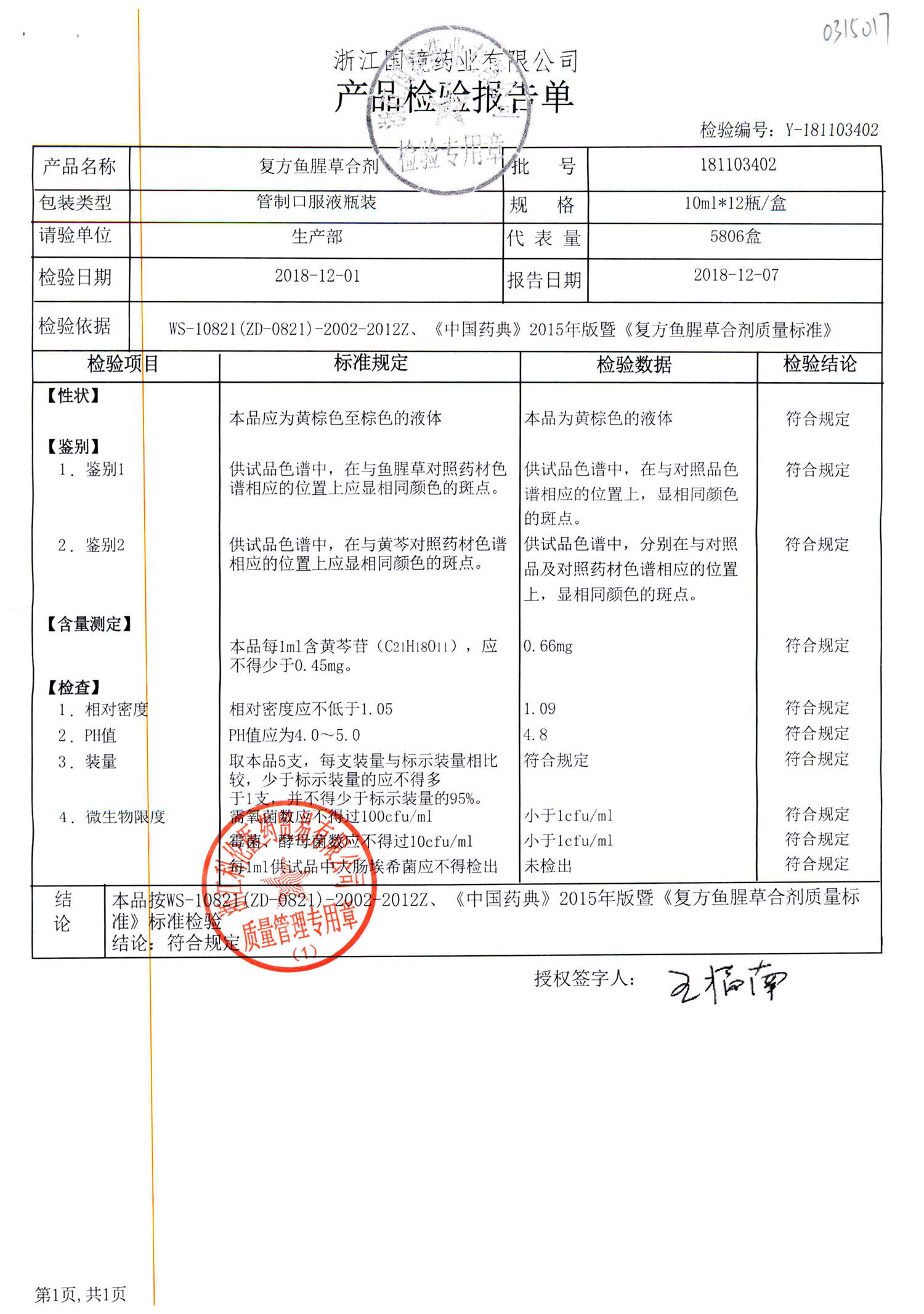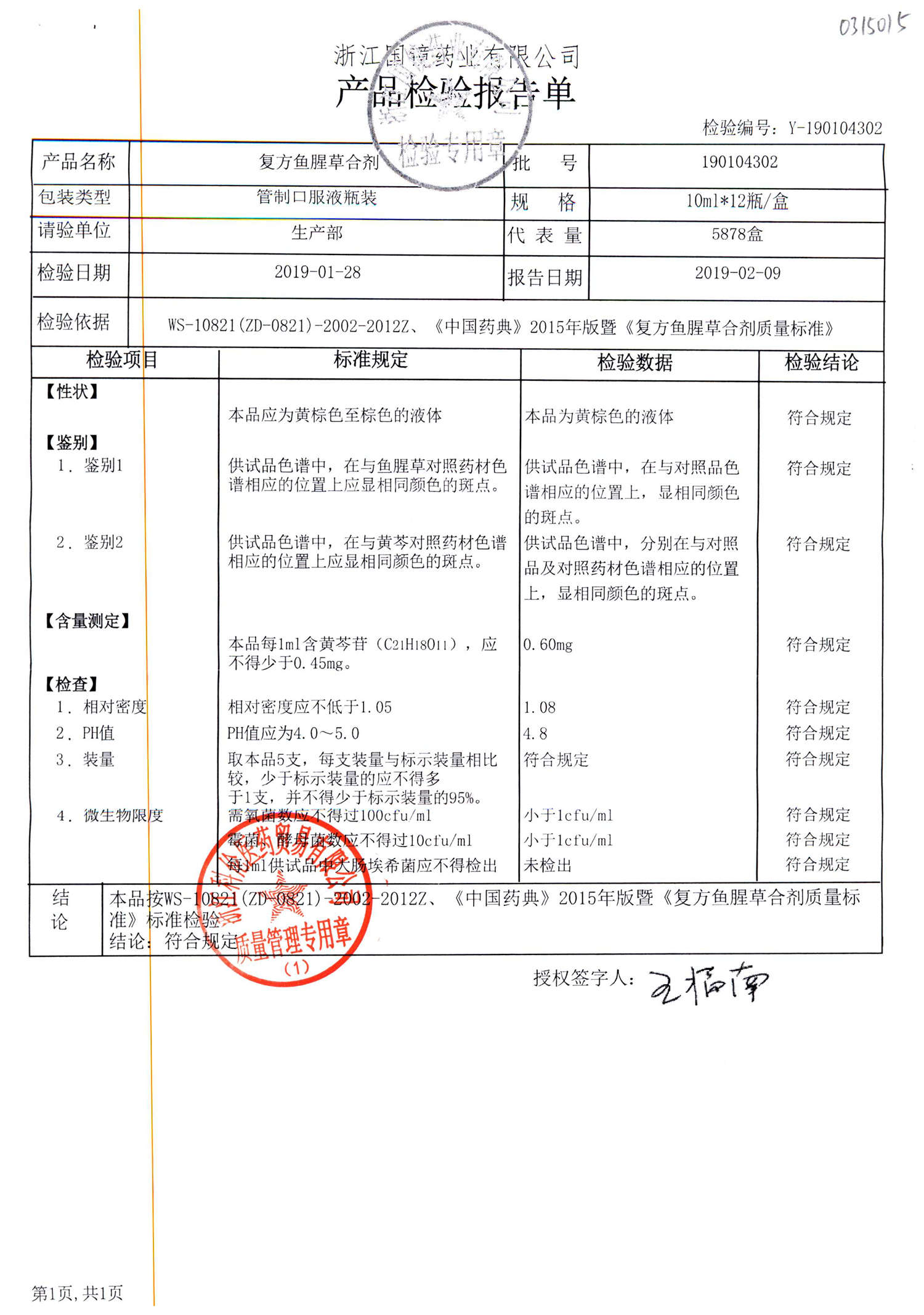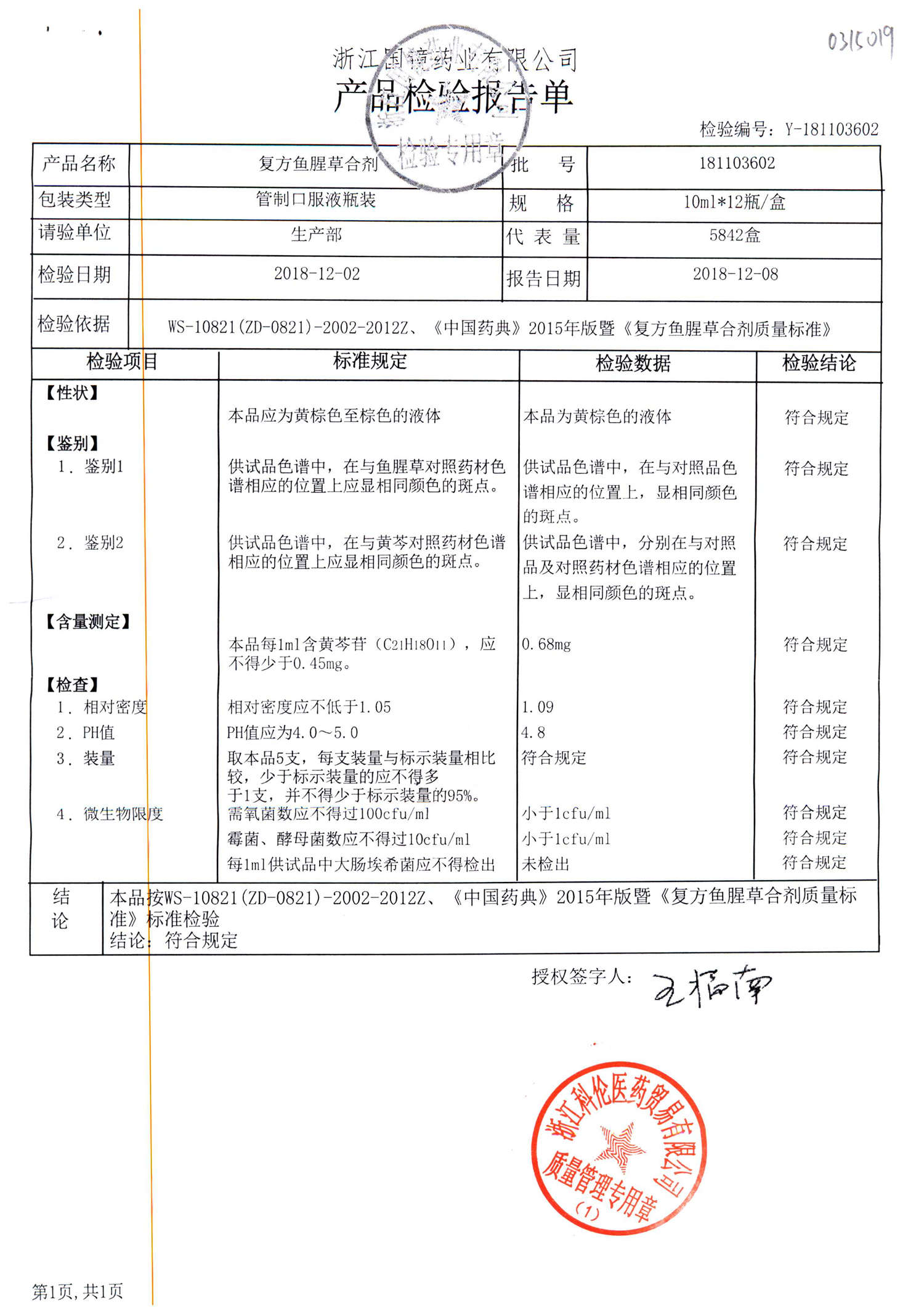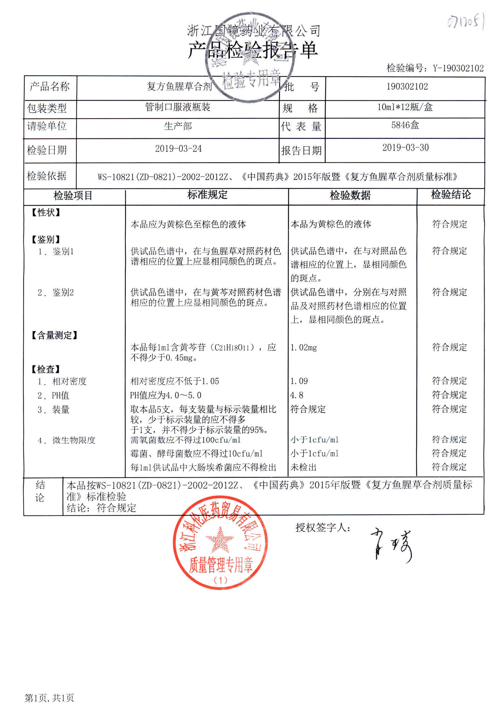 | 復方魚腥草合劑 | 10ml | 190302101 | 查看詳情 |