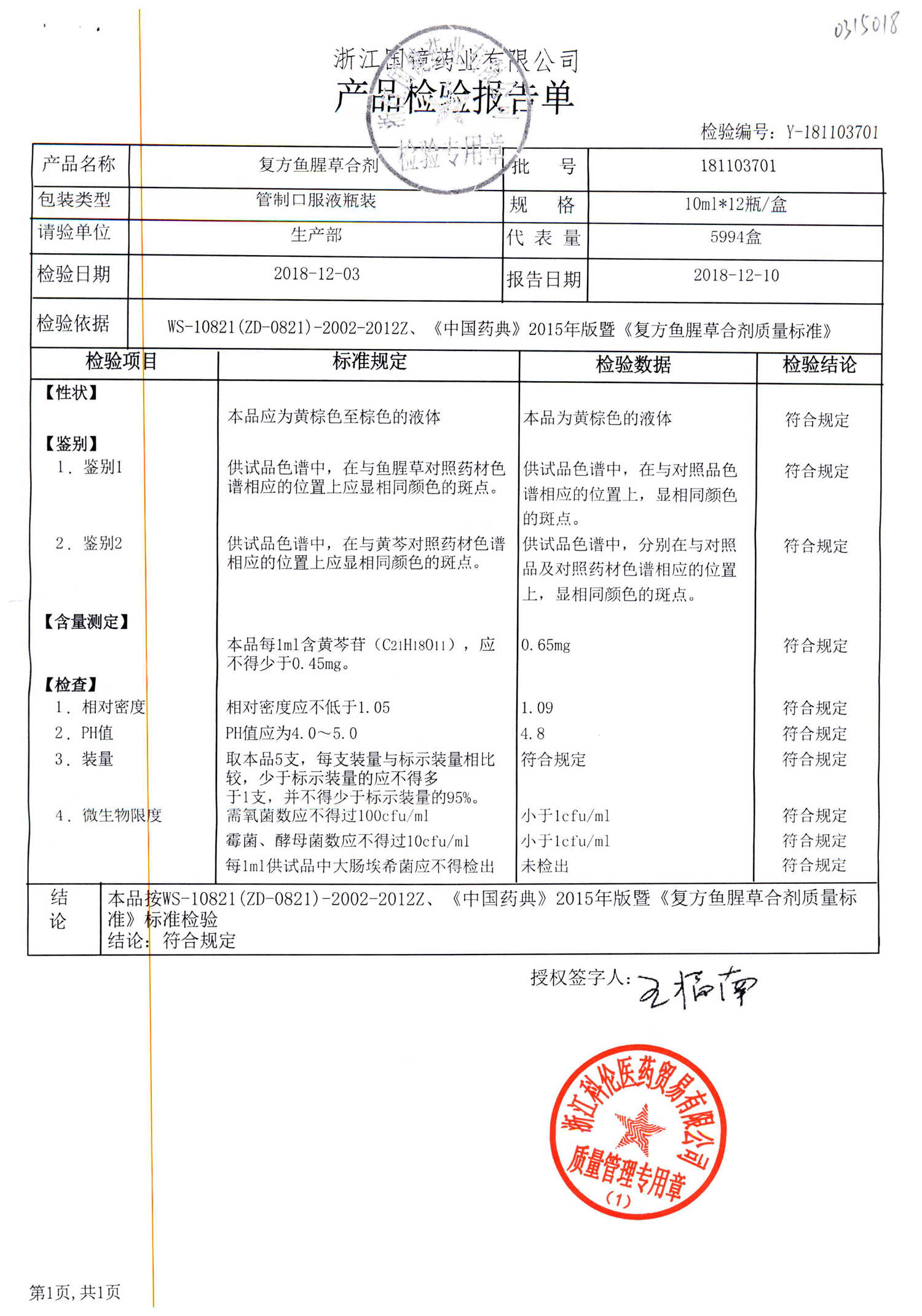 | 復方魚腥草合劑 | 10ml | 180200902 | 查看詳情 |
