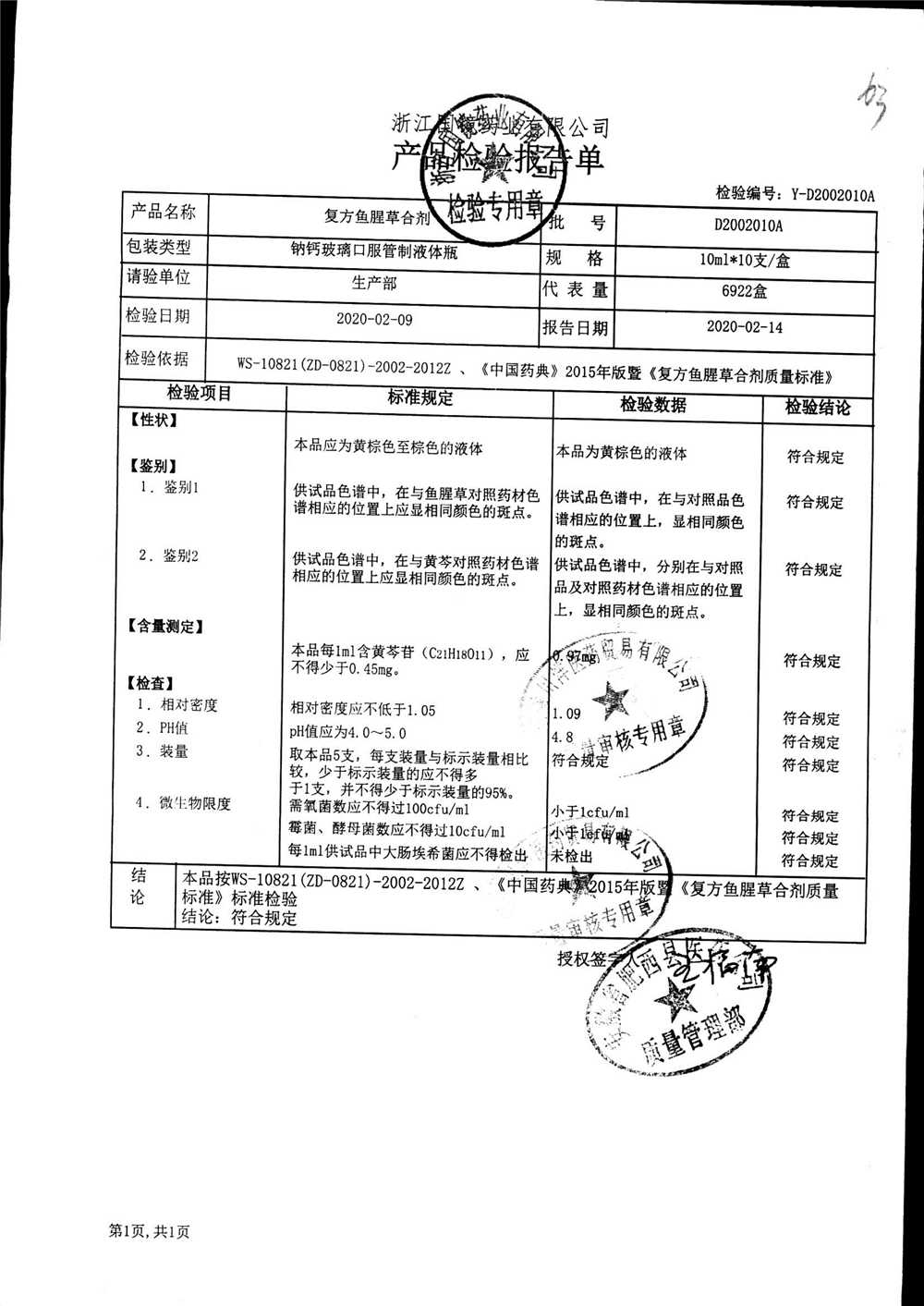 | 復方魚腥草合劑 | 10ml | D2002010A | 查看詳情 |