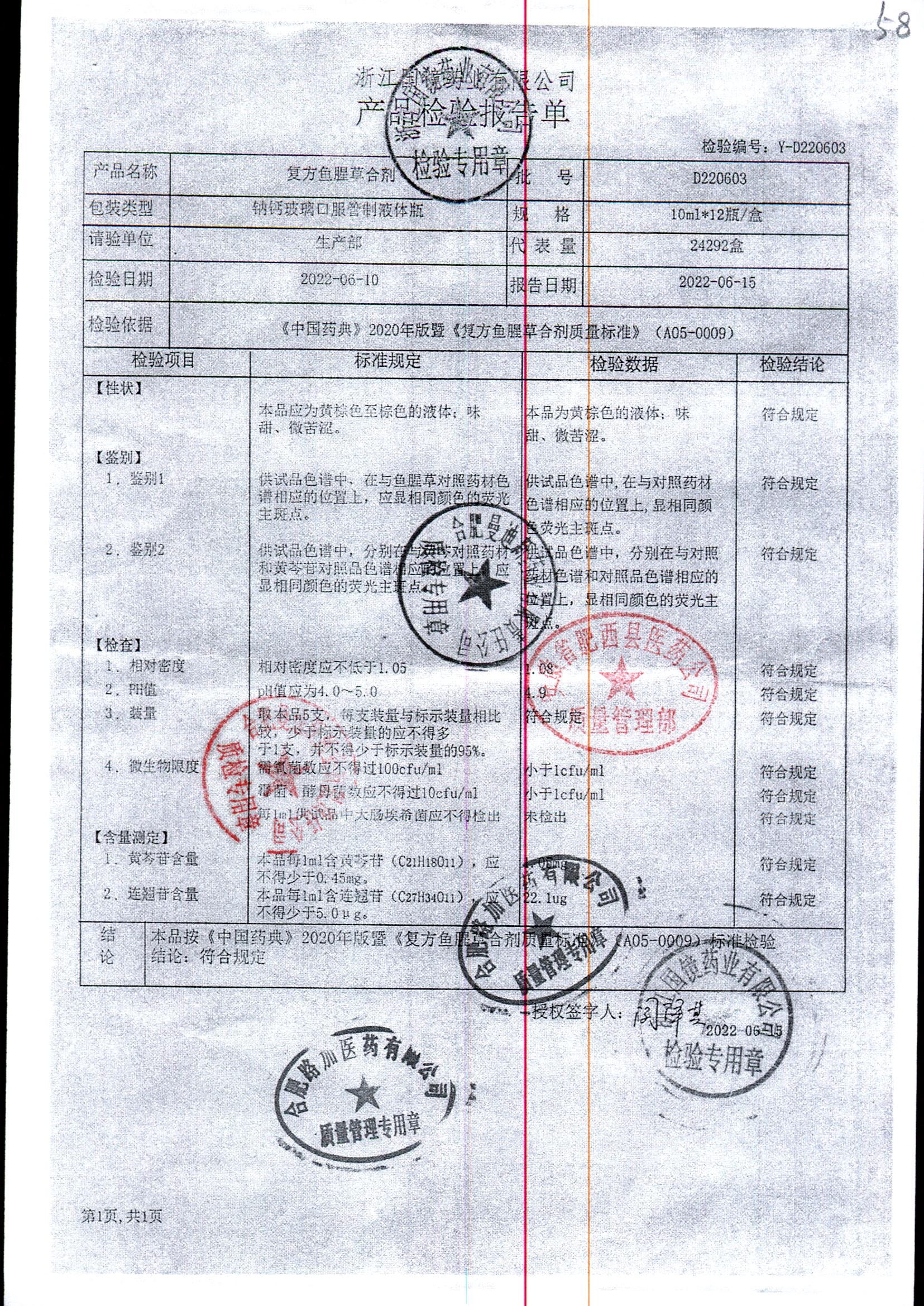 | 復方魚腥草合劑 | 10ml | D220603 | 查看詳情 |