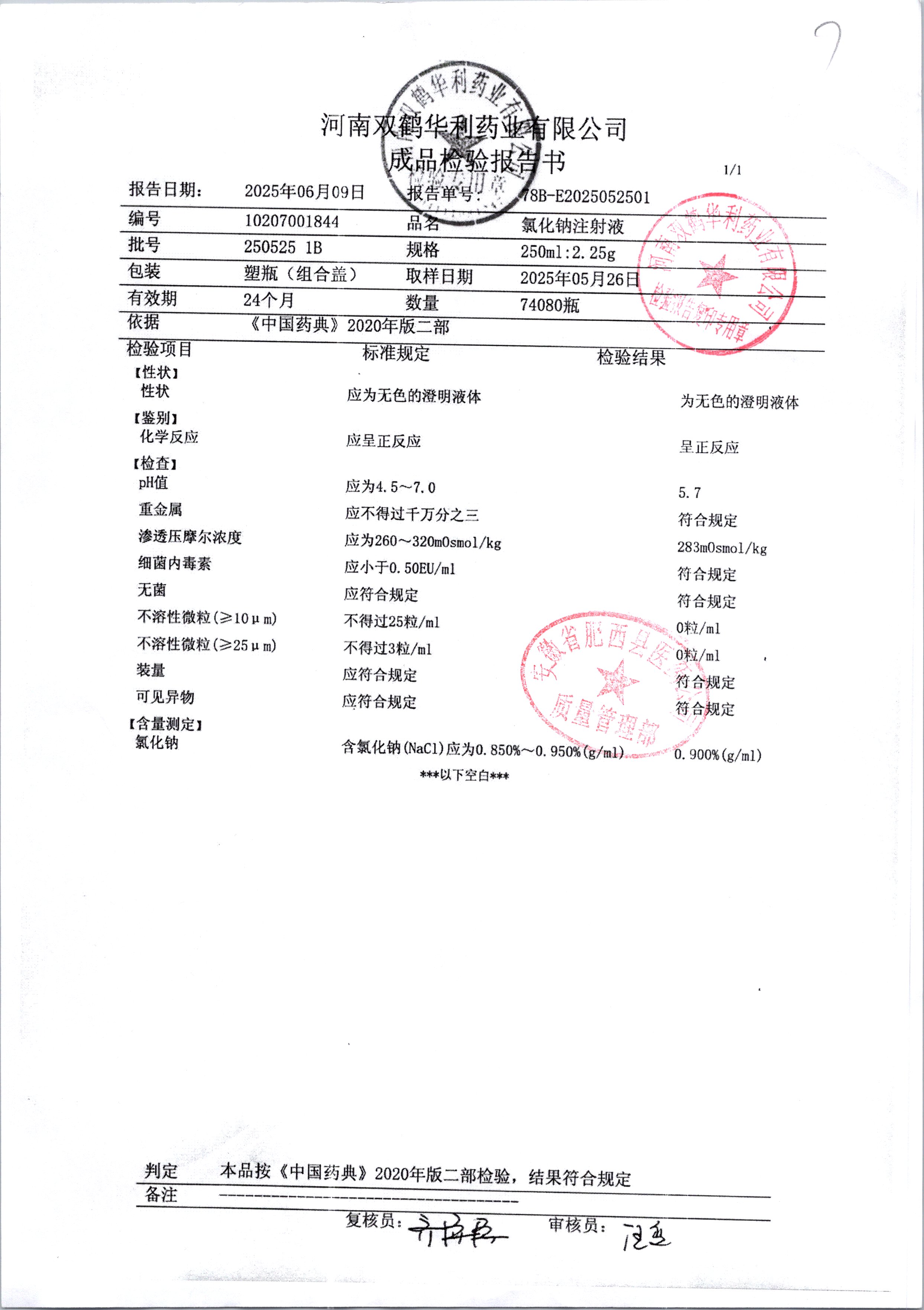 氯化鈉注射液 250ml 250525 1B 查看詳情