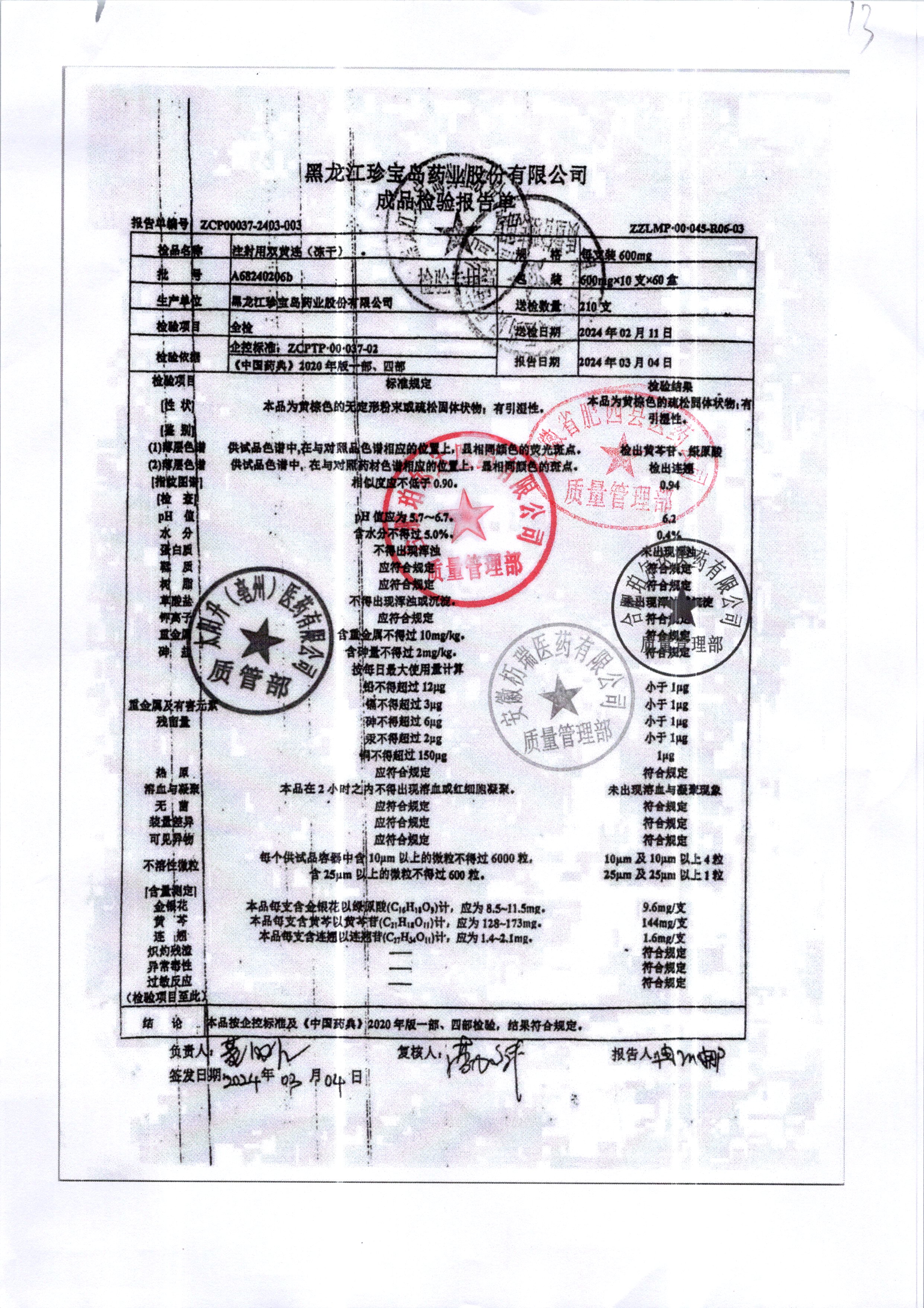 注射用雙黃連(凍干) 600ml*10支 A68240206b 查看詳情