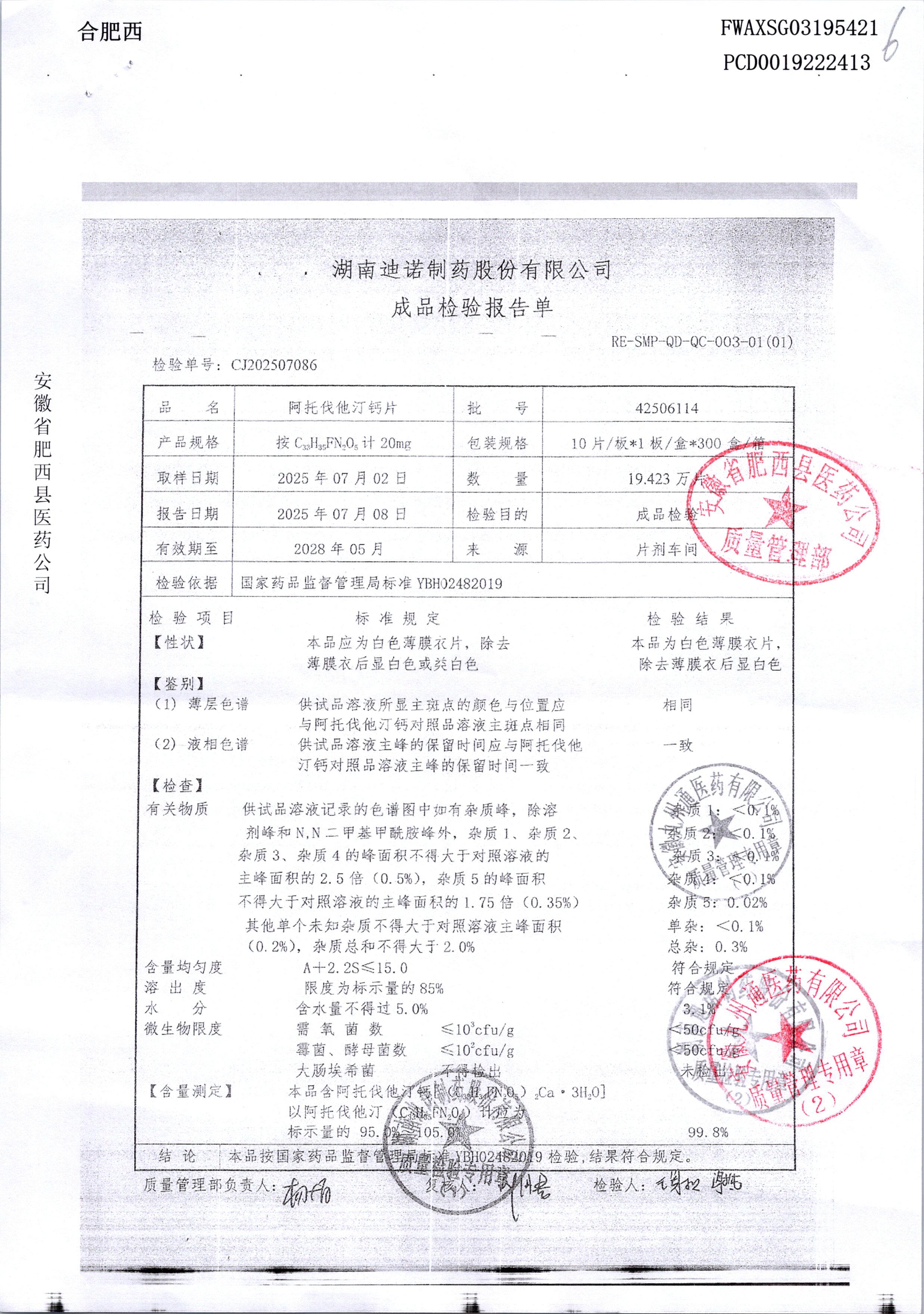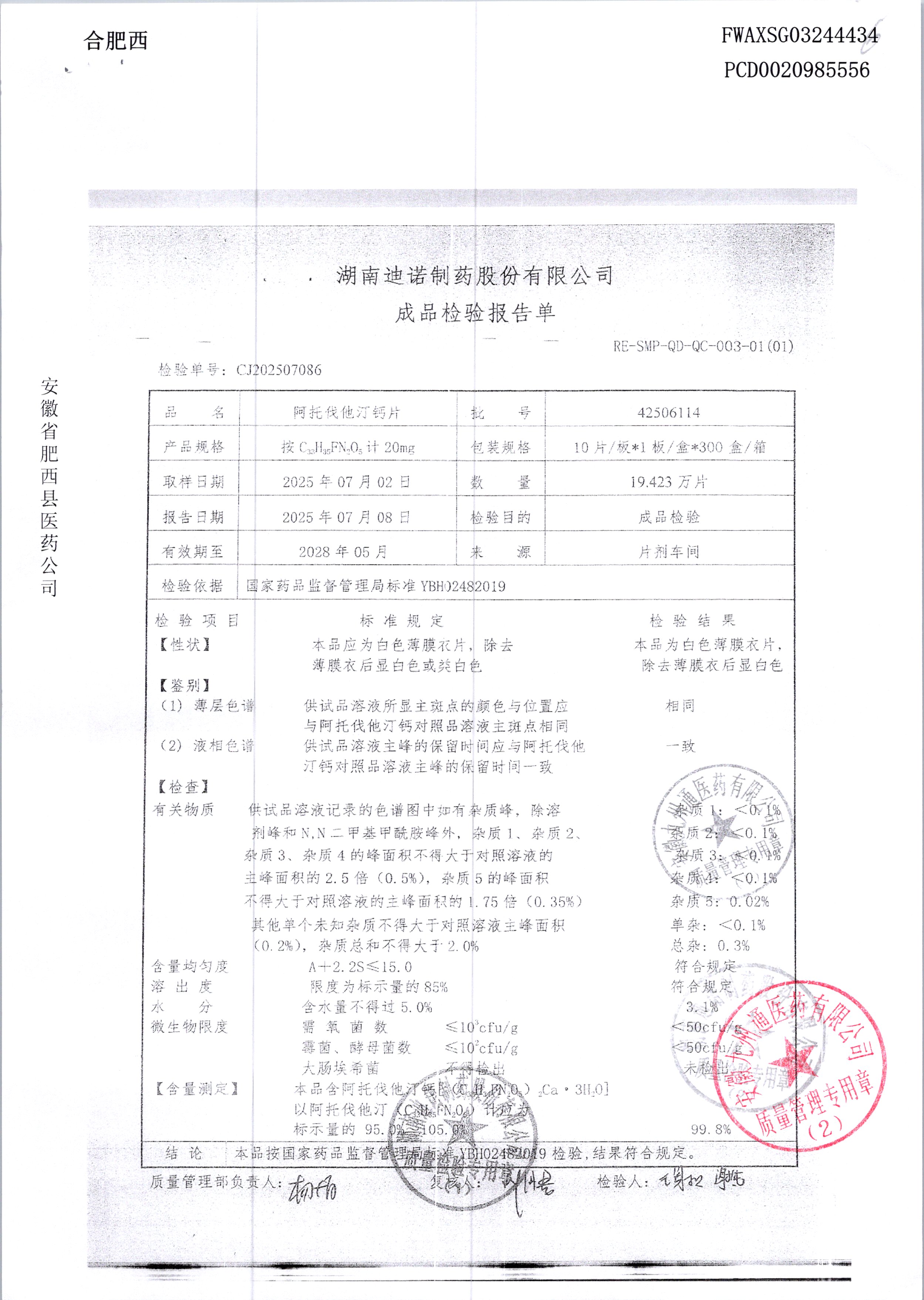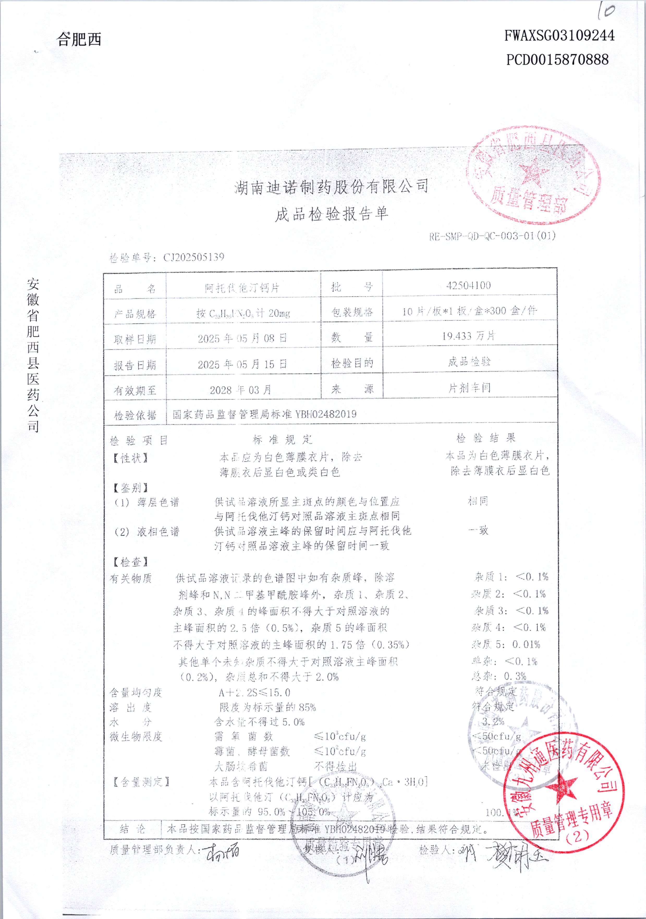 阿托伐他汀鈣片 10s 42506114 查看詳情