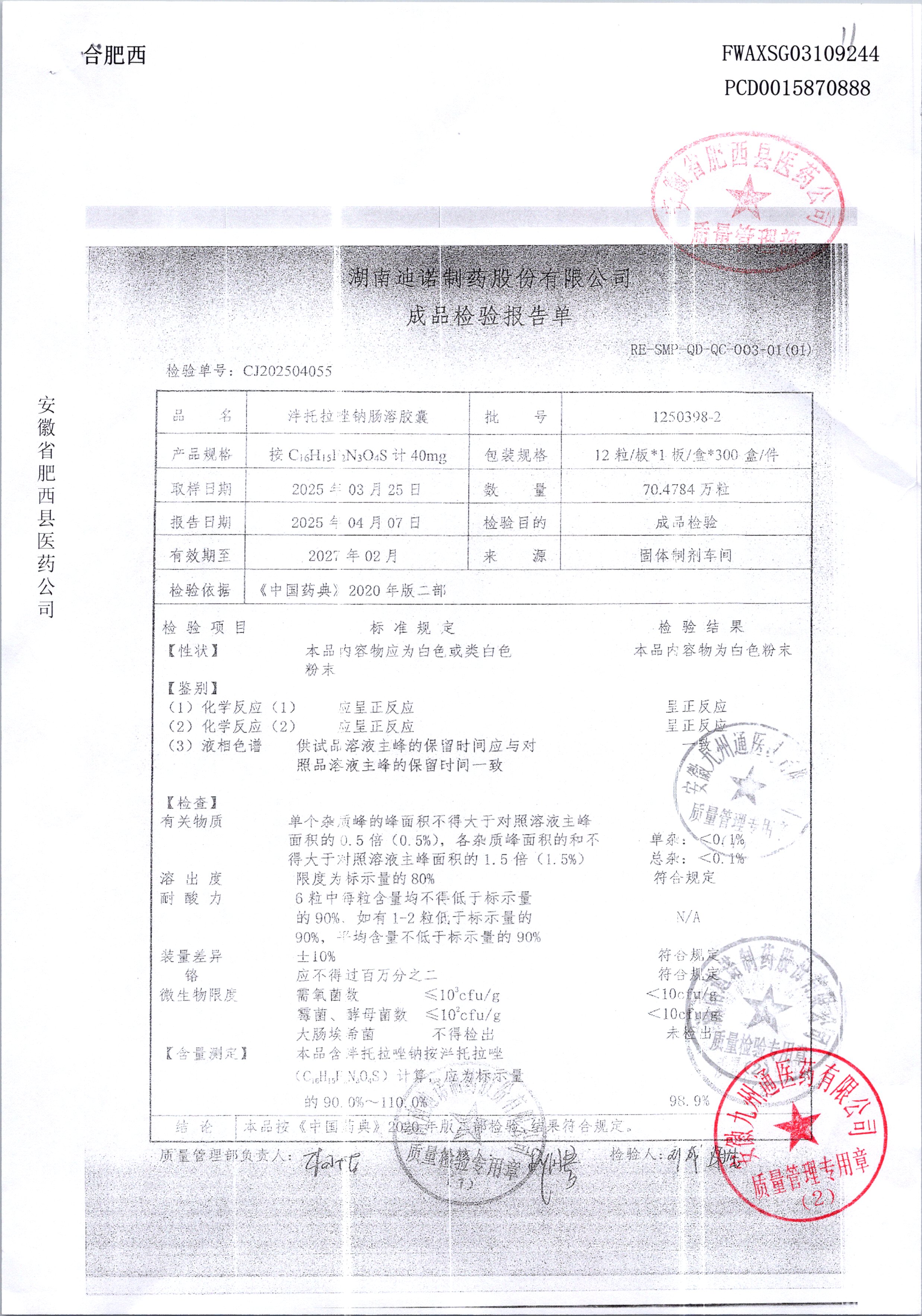 泮托拉唑鈉腸溶膠囊 12粒 1250437 查看詳情
