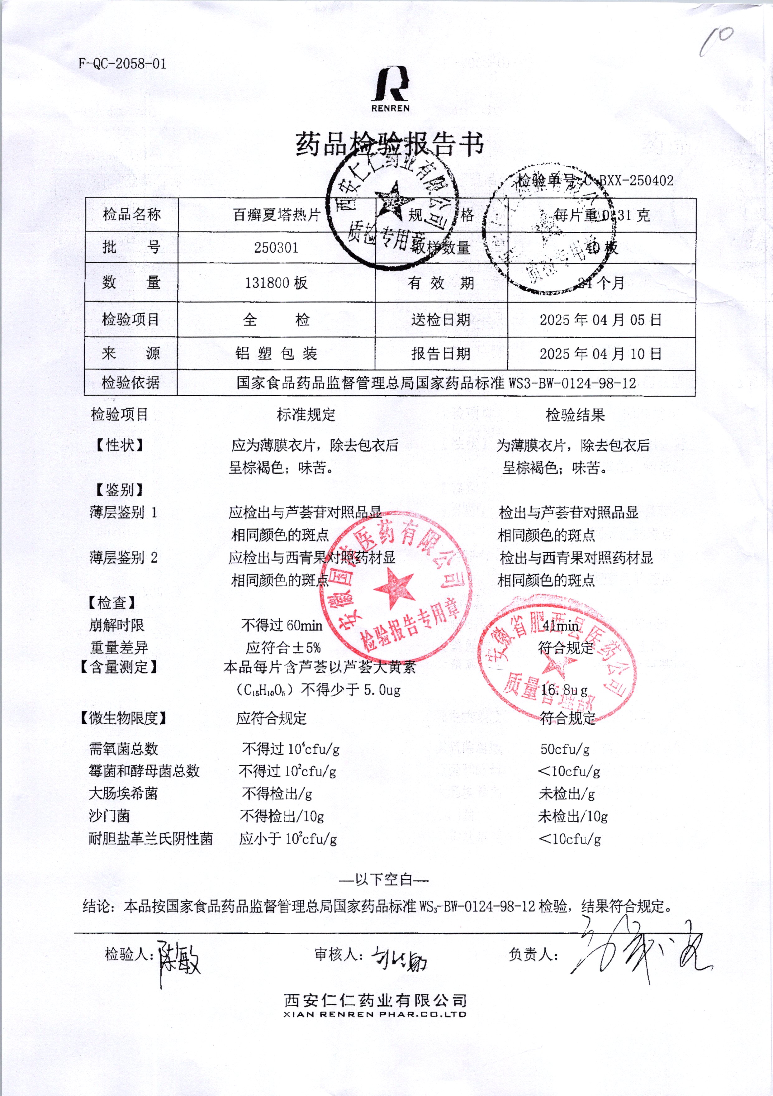 名稱 規(guī)格 批號 藥檢報告