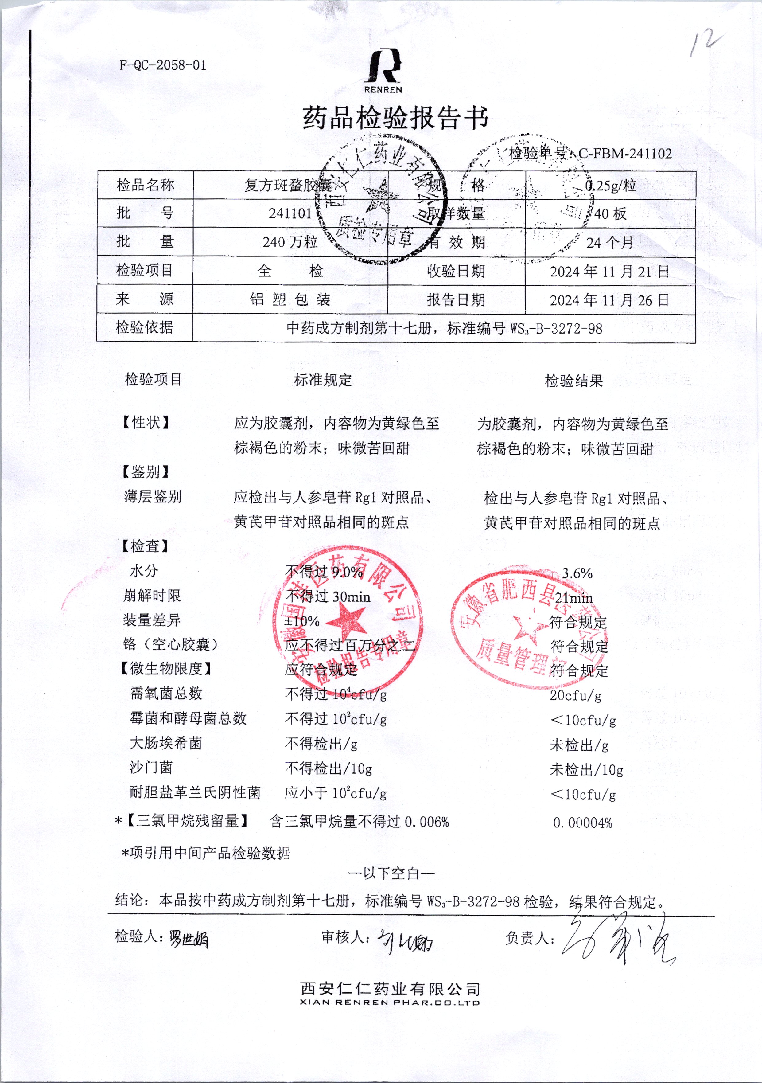 復方斑蝥膠囊 0.25g 241101 查看詳情