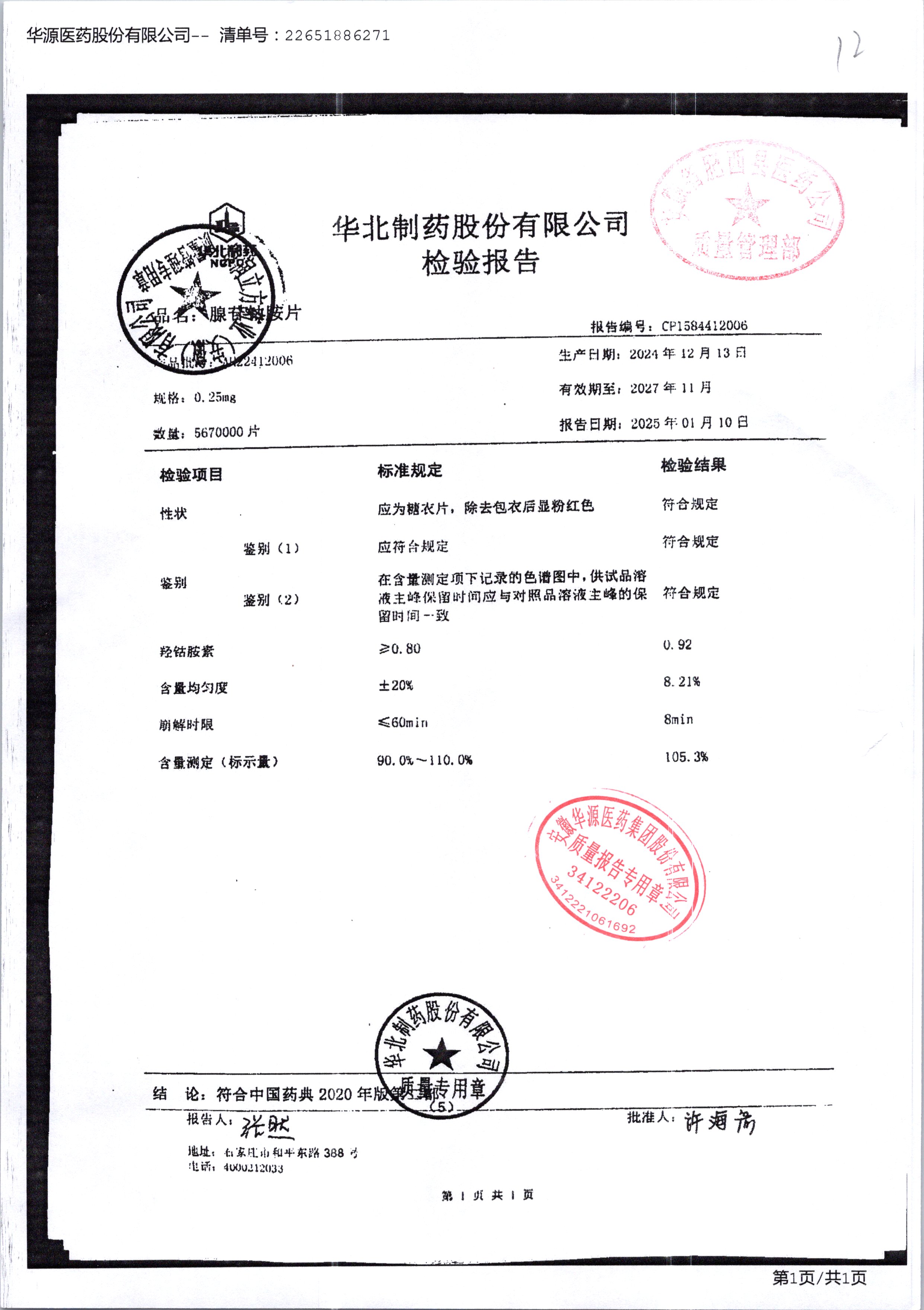 腺苷鈉胺片 0.25mg AH22412006 查看詳情