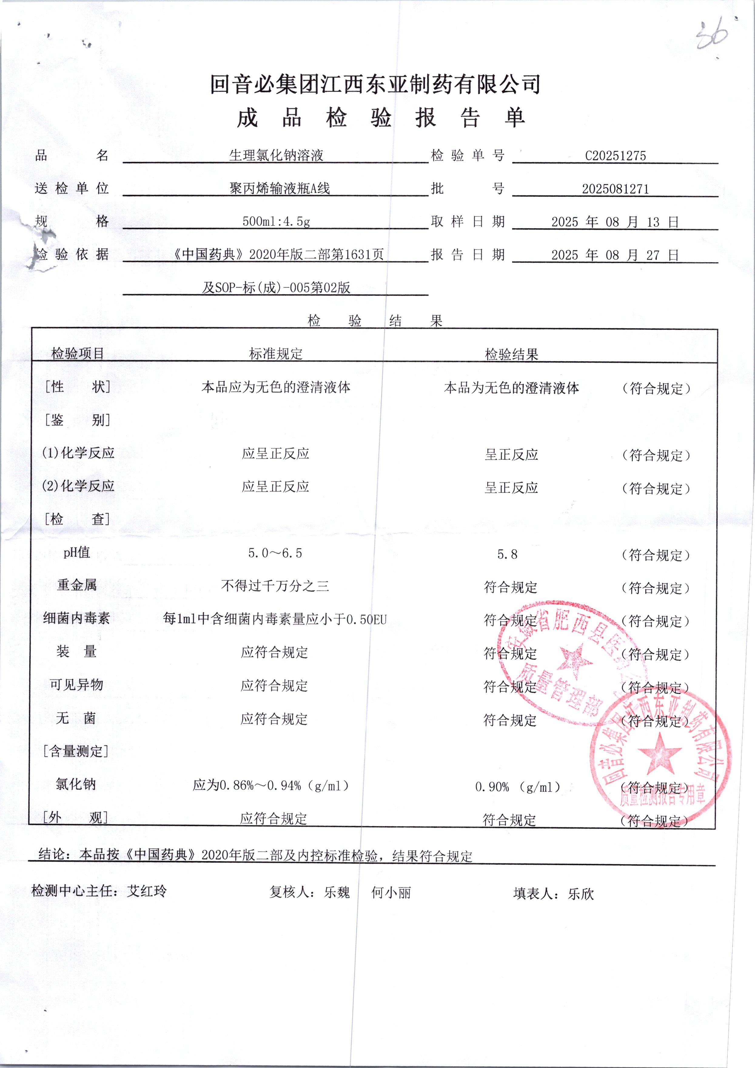 生理氯化鈉溶液 500ml:4.5g 2025081271 查看詳情