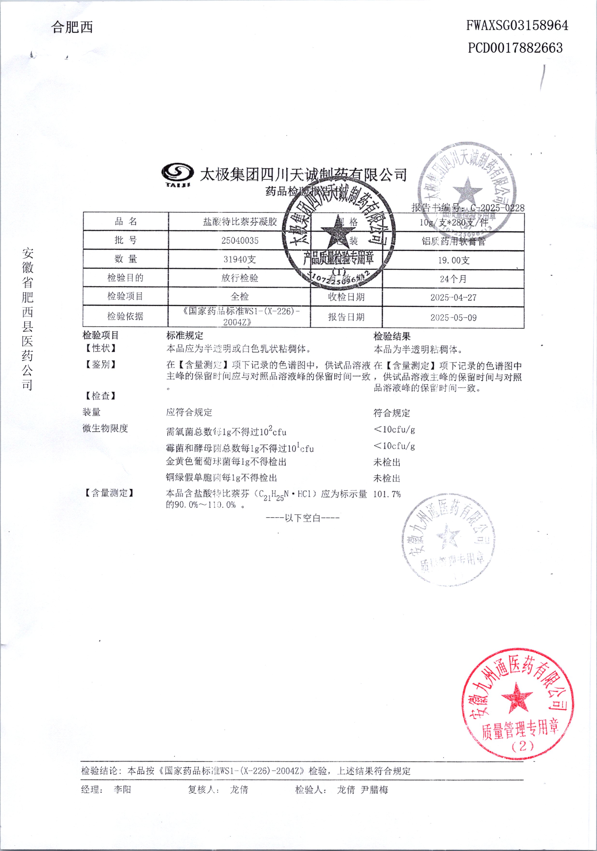 鹽酸特比萘芬凝膠 10g 25040035 查看詳情
