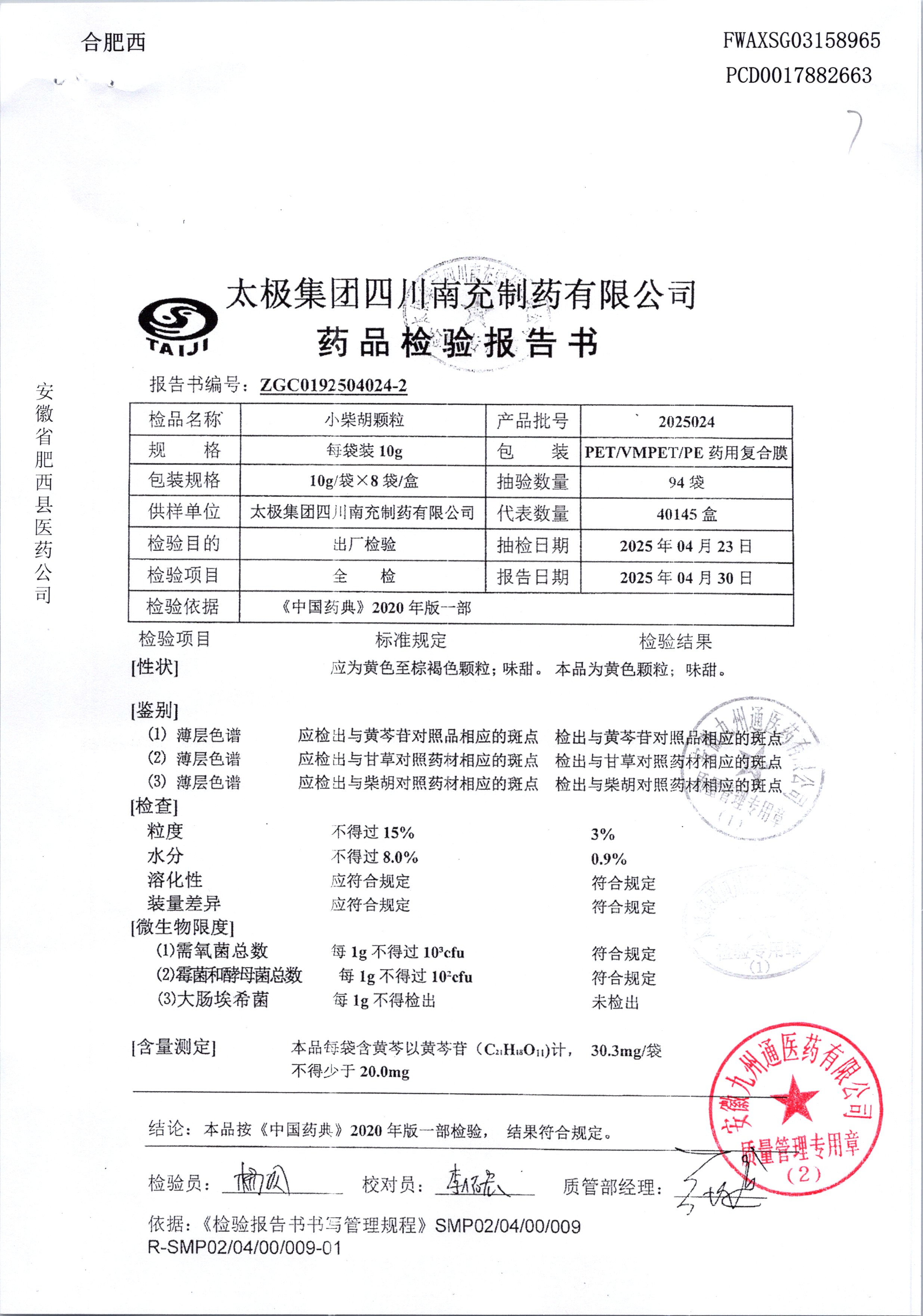 小柴胡顆粒 10g*8袋 2025024 查看詳情