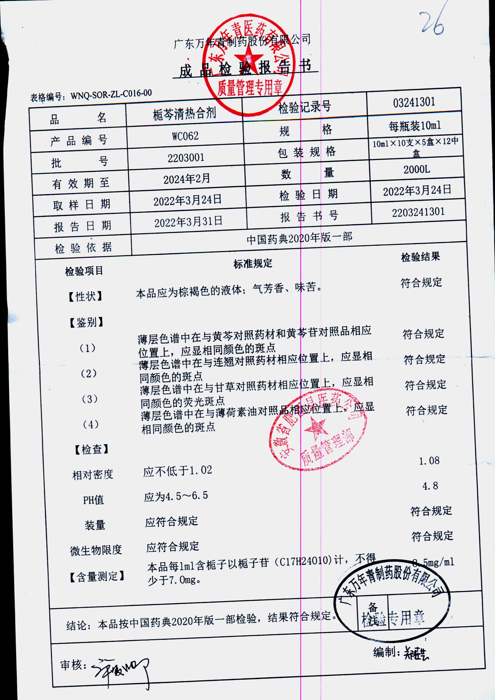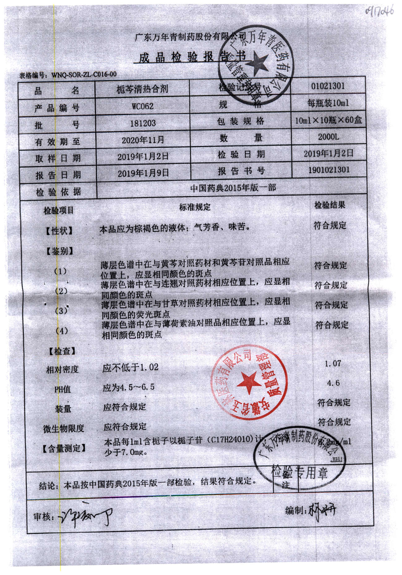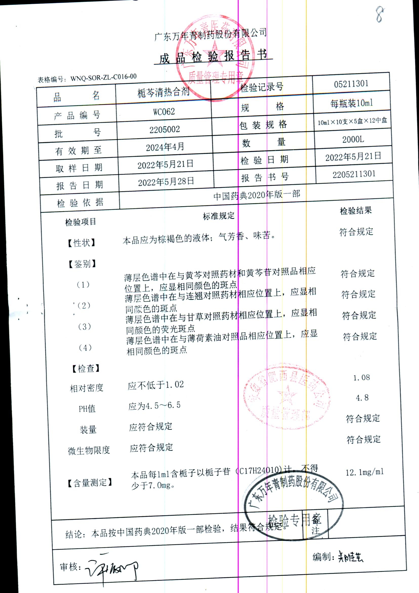 梔芩清熱合劑 10ml*10瓶 2212007 查看詳情