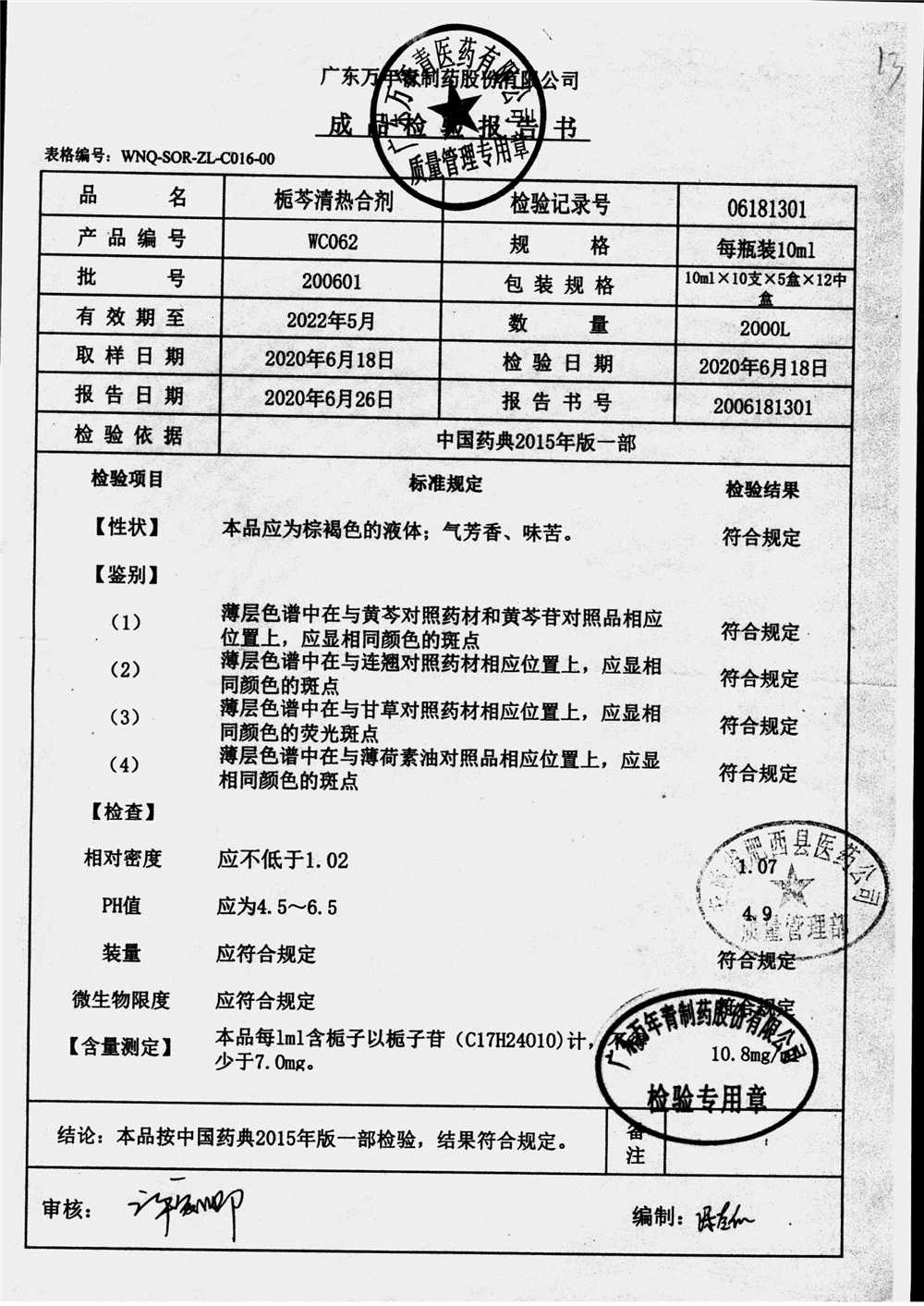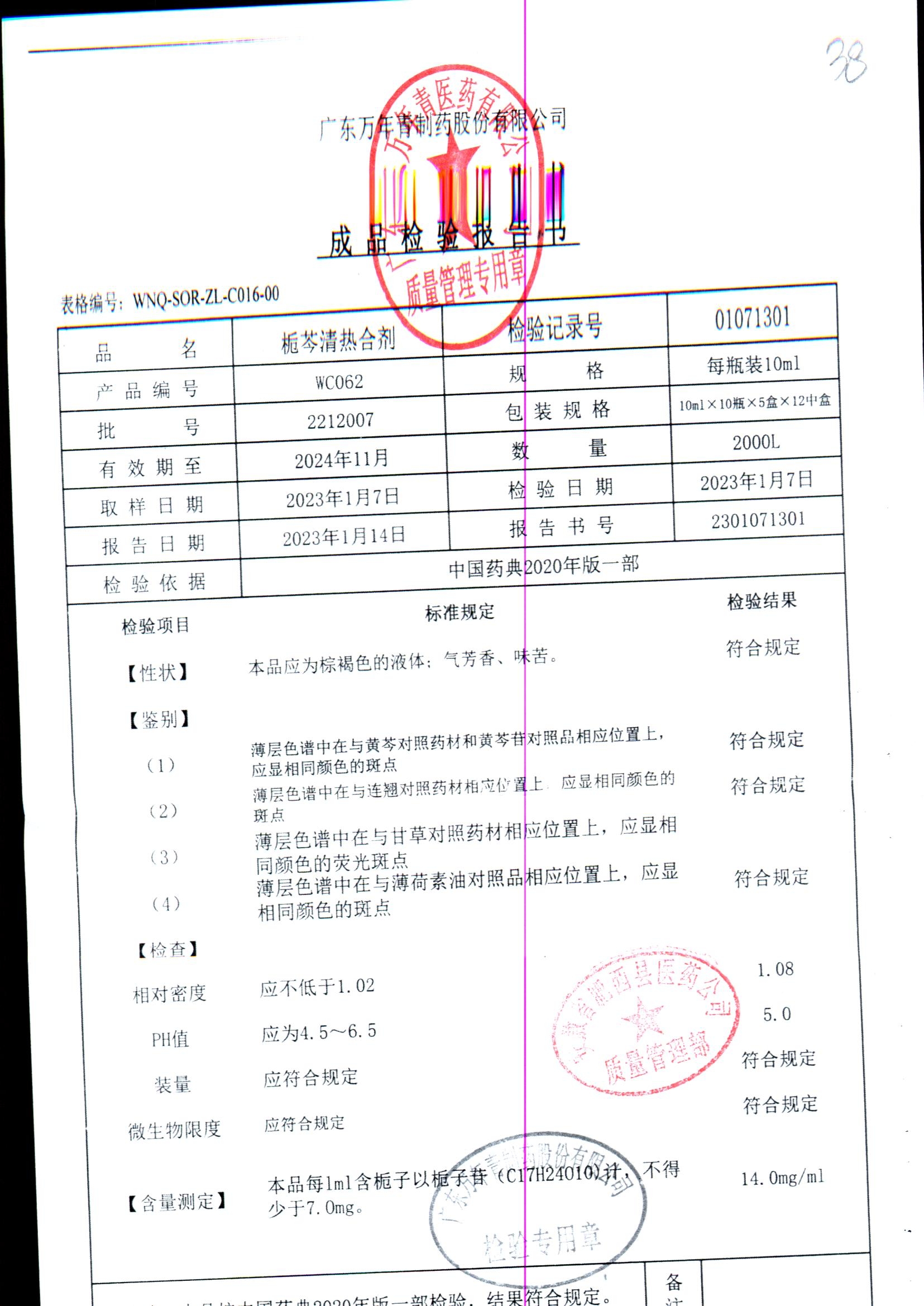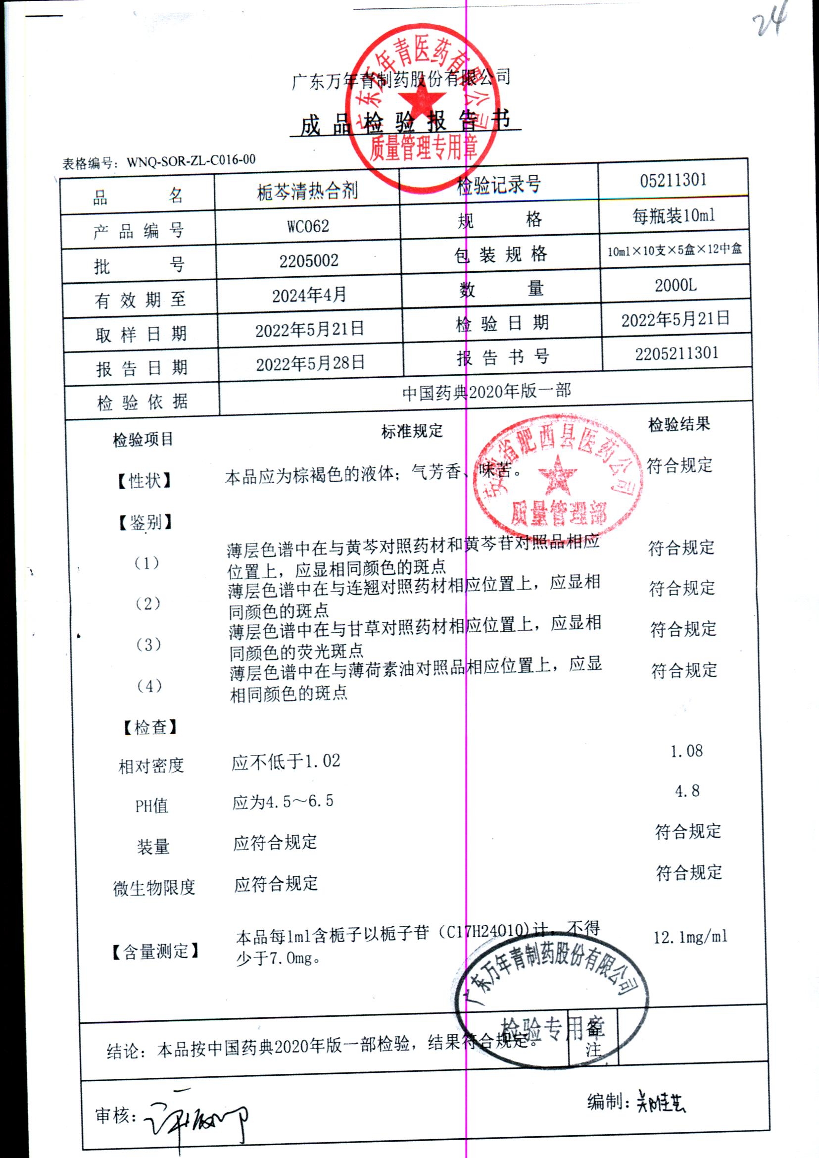 梔芩清熱合劑 10ml*10瓶 2212007 查看詳情