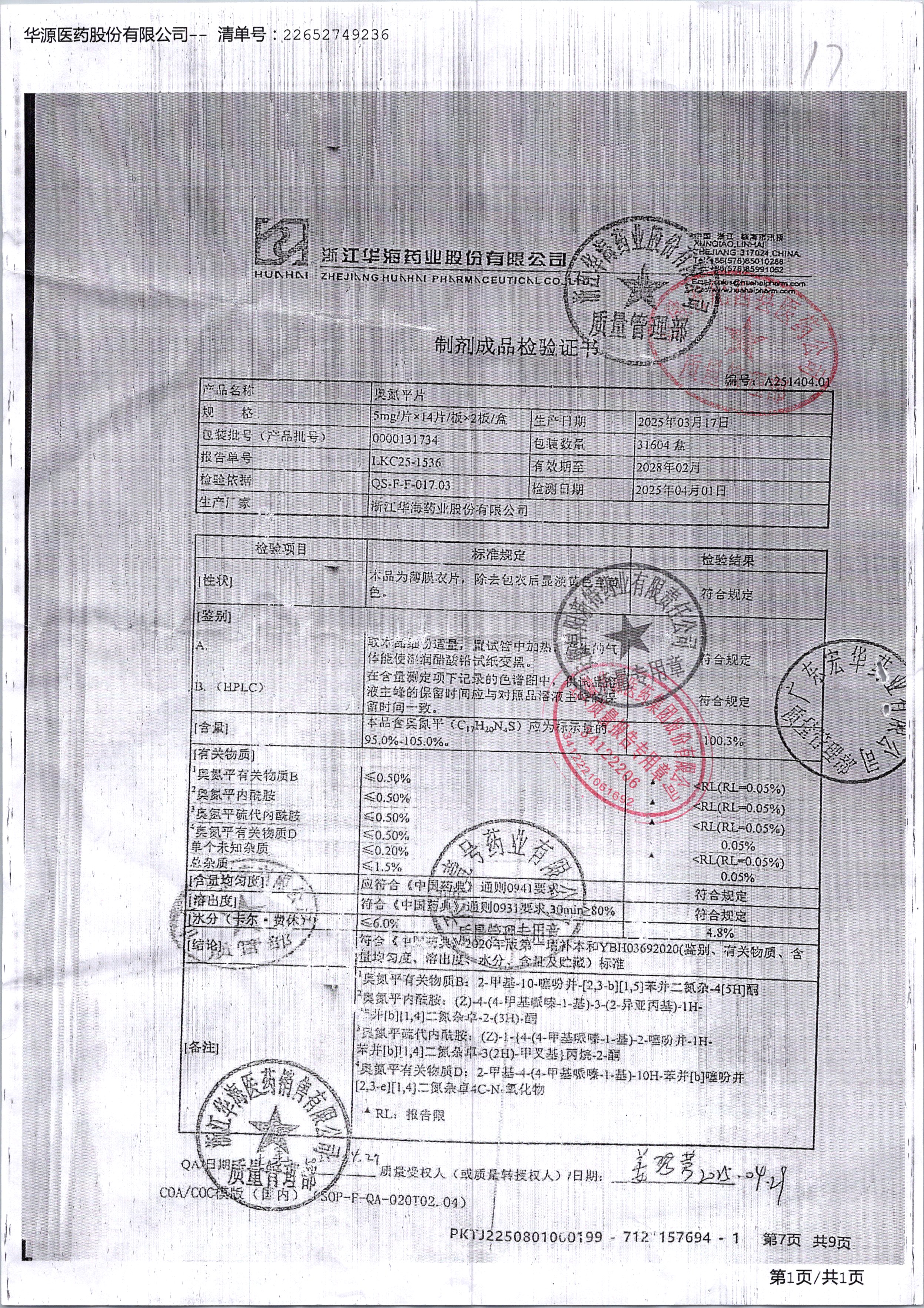 奧氮平片 5mg*28片 0000131734 查看詳情
