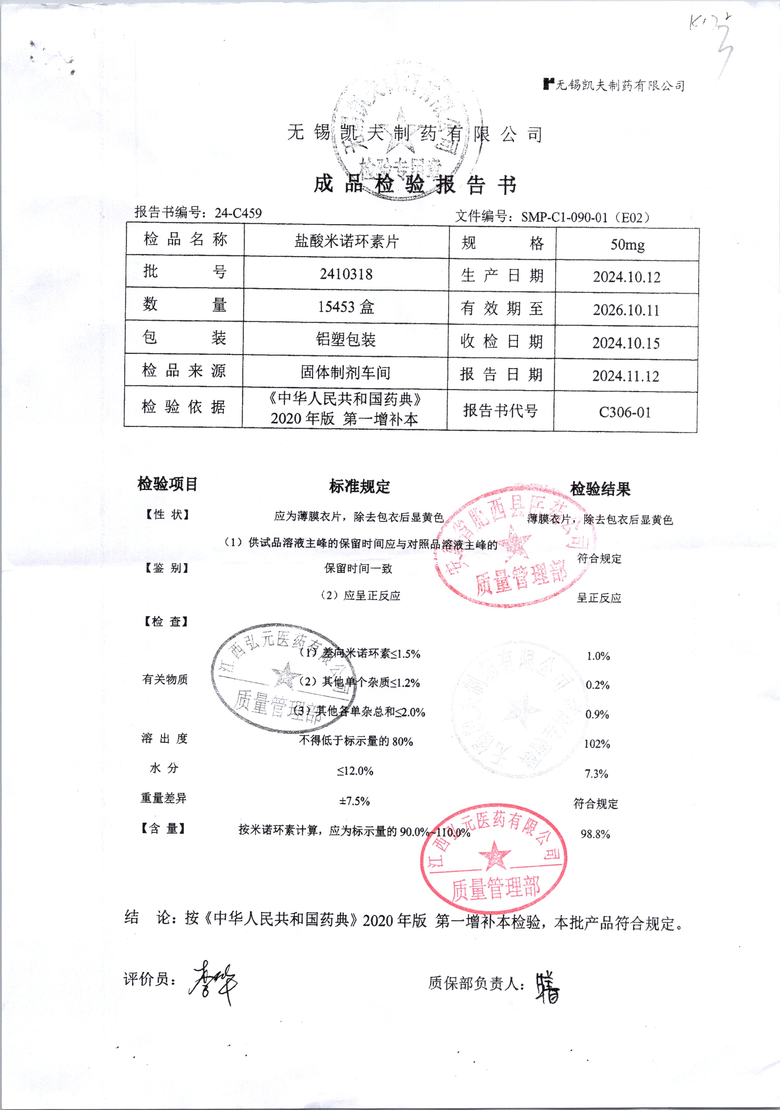 鹽酸米諾環素片 50mg 2410318 查看詳情