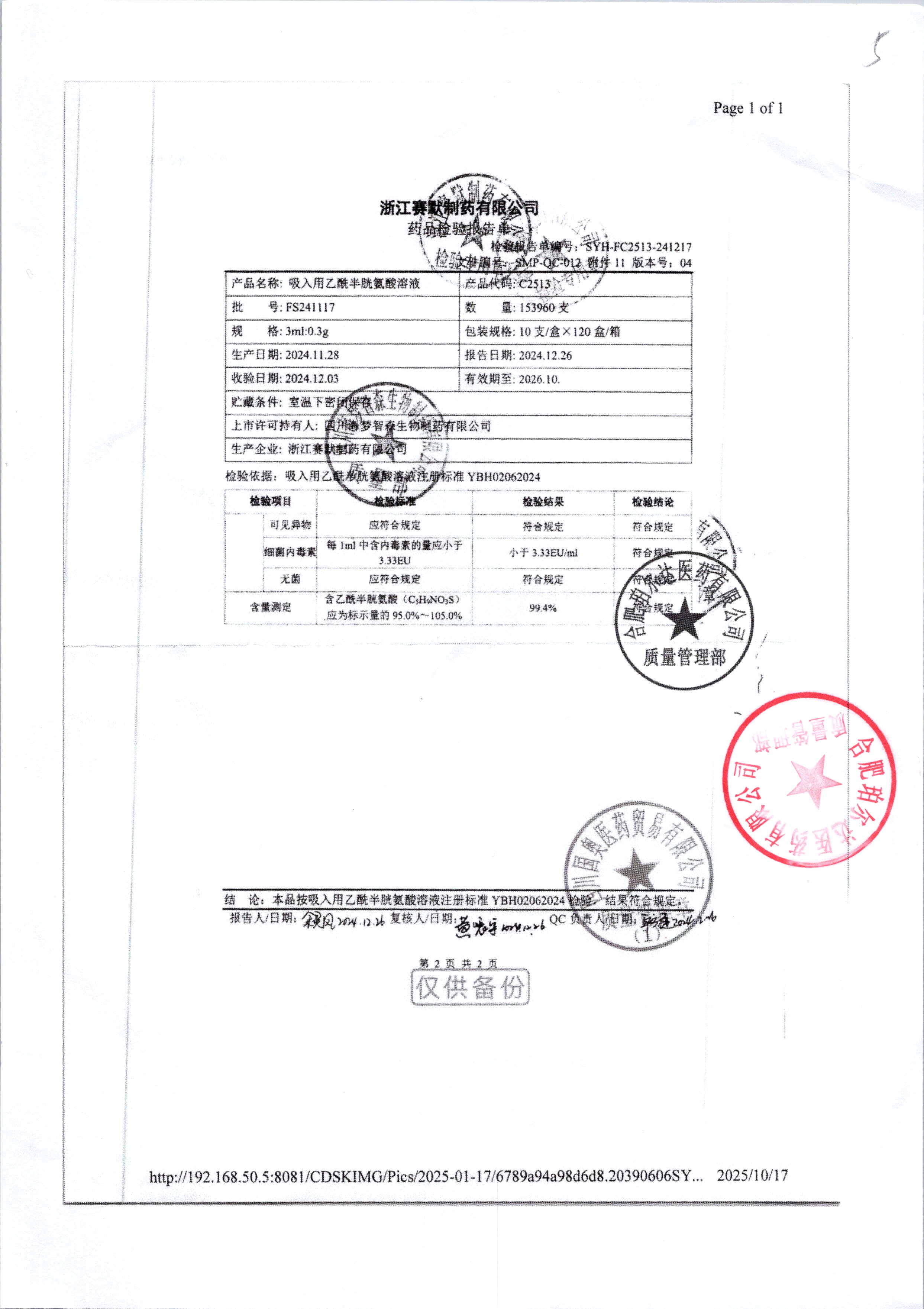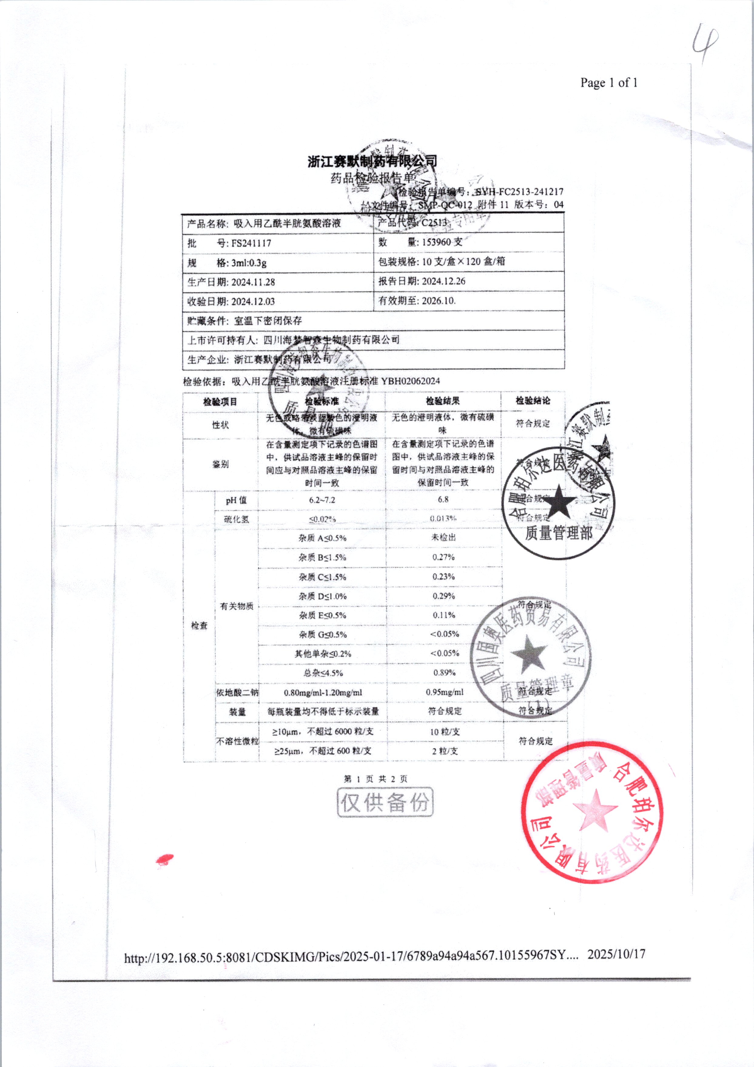 吸入用乙酰半胱氨酸溶液 3ml:0.3g*10支 FS241117/2 查看詳情