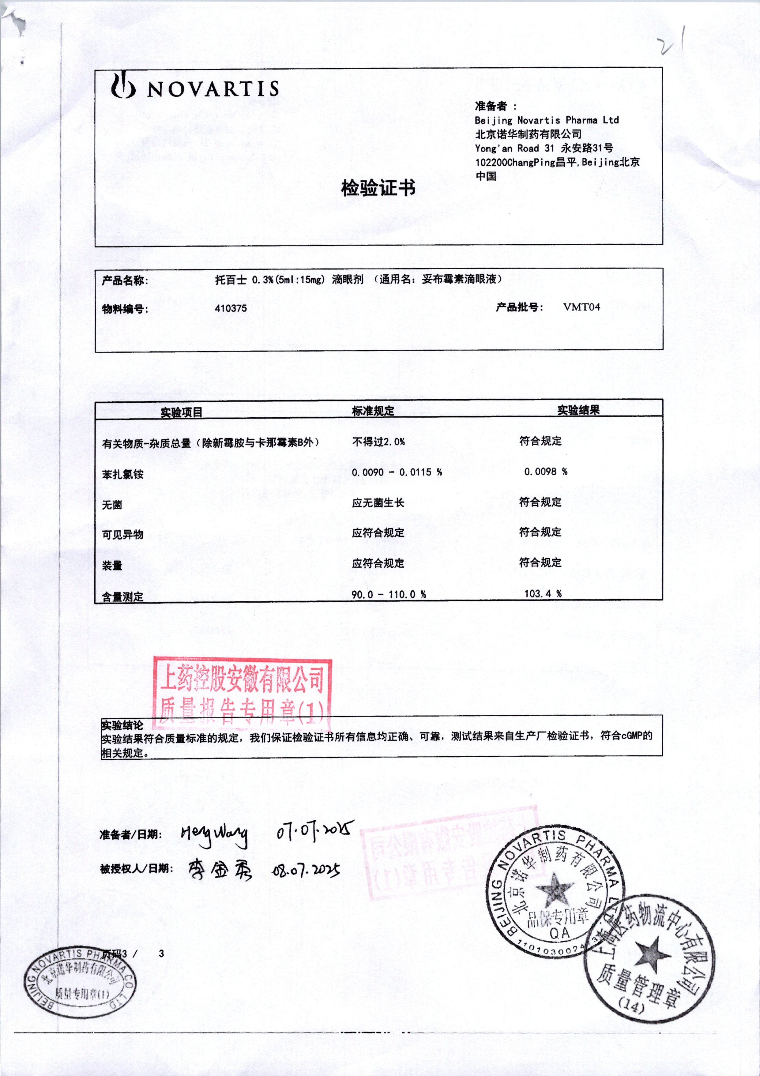名稱 規(guī)格 批號 藥檢報告