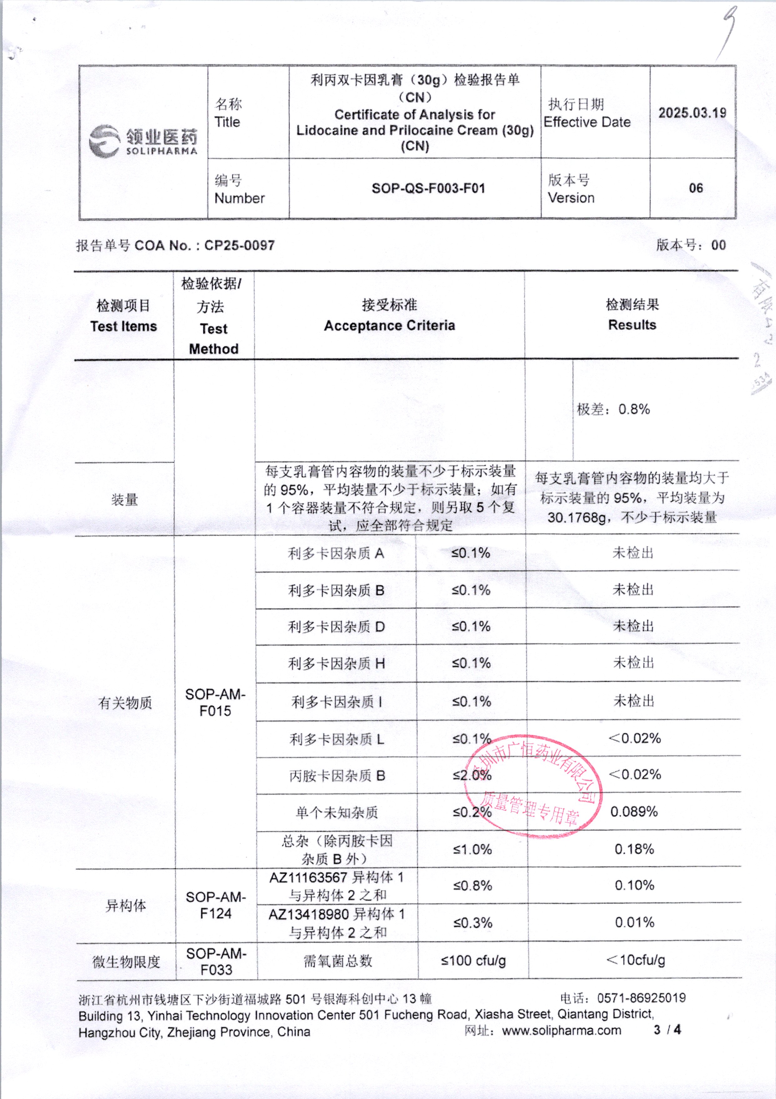 利丙雙卡因乳膏 30g 4250808/2 查看詳情