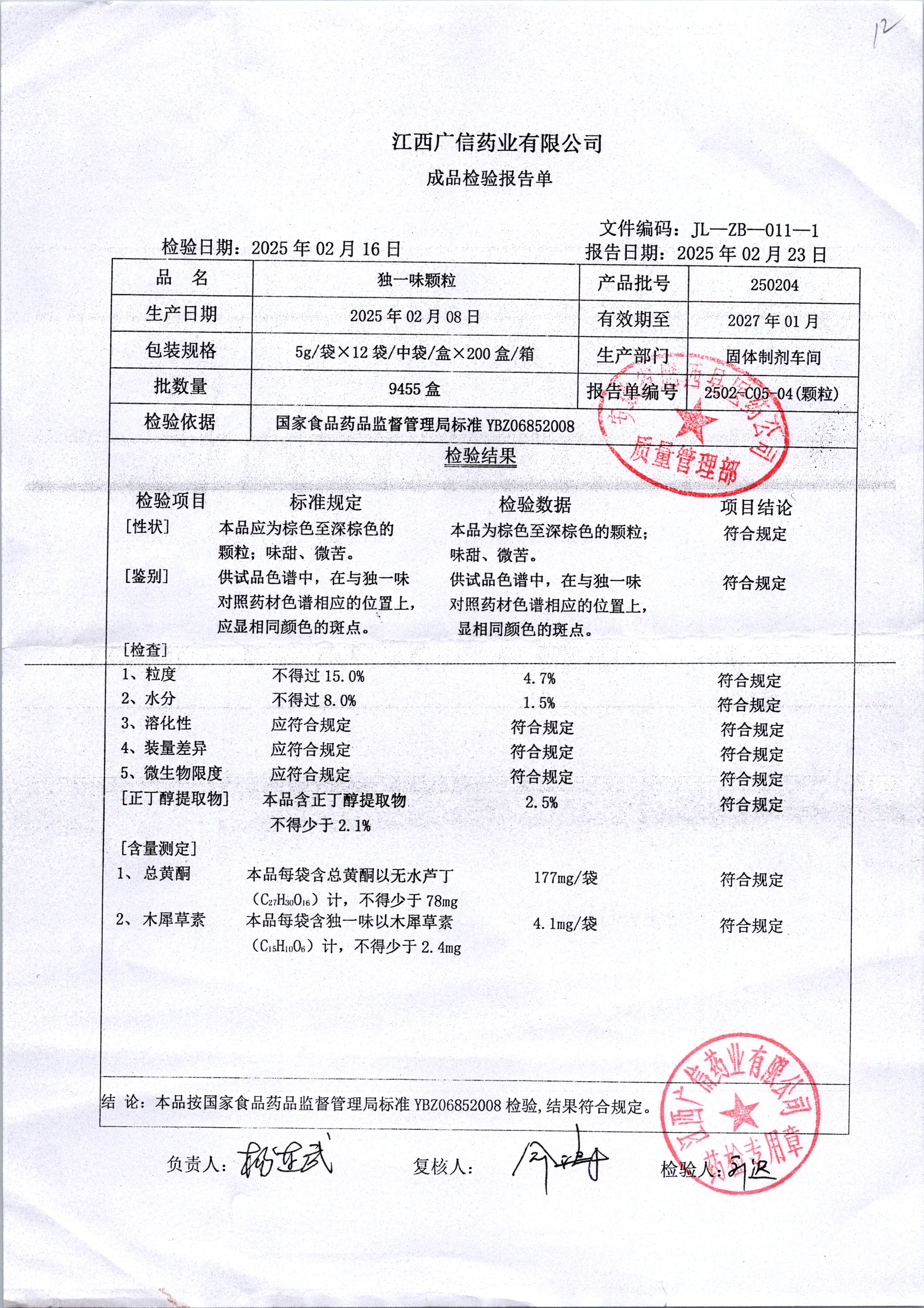 獨(dú)一味顆粒 5g*12袋 250204 查看詳情
