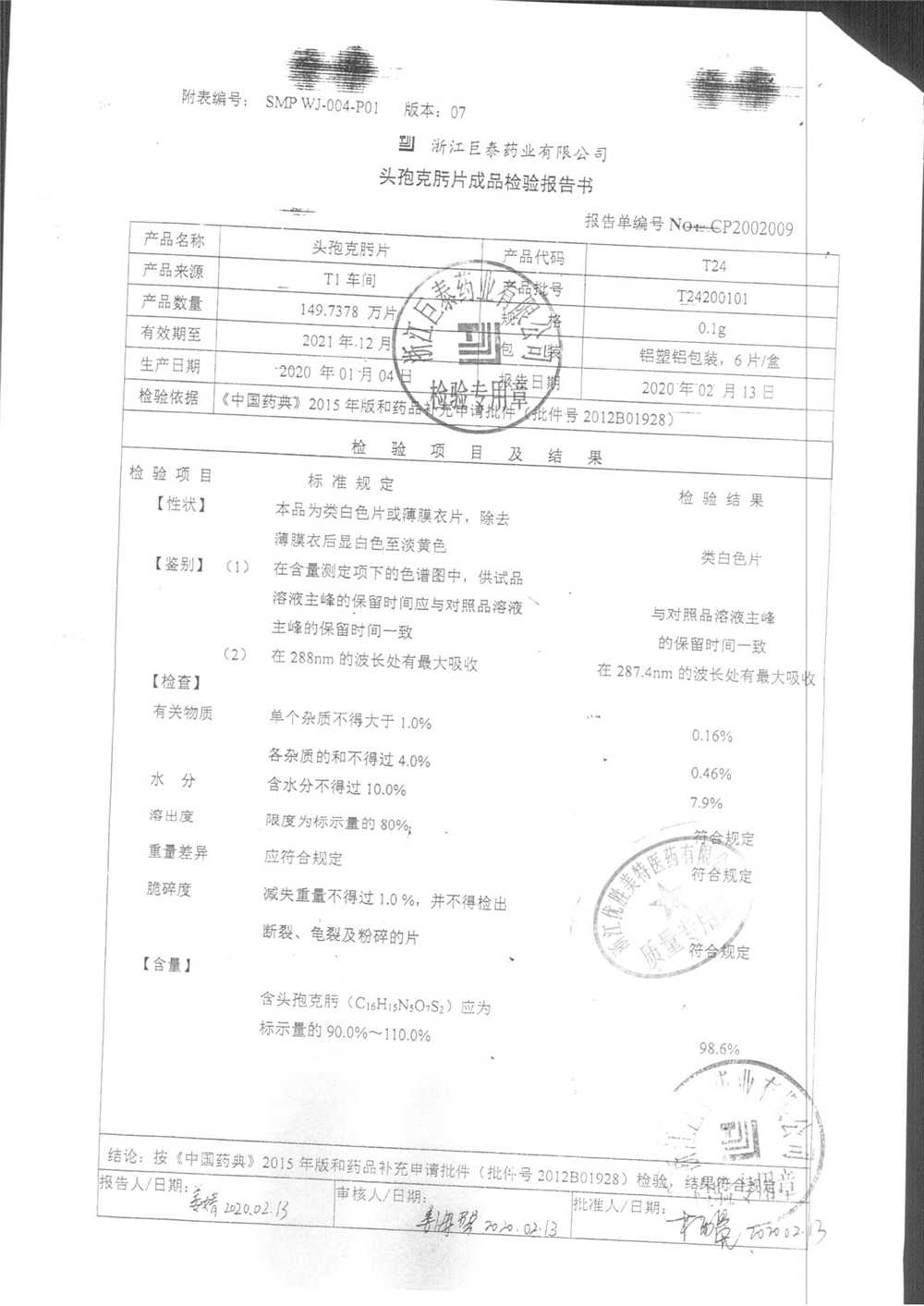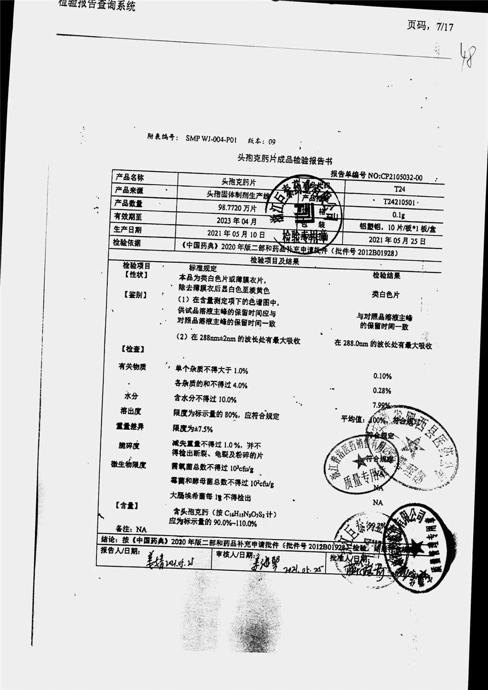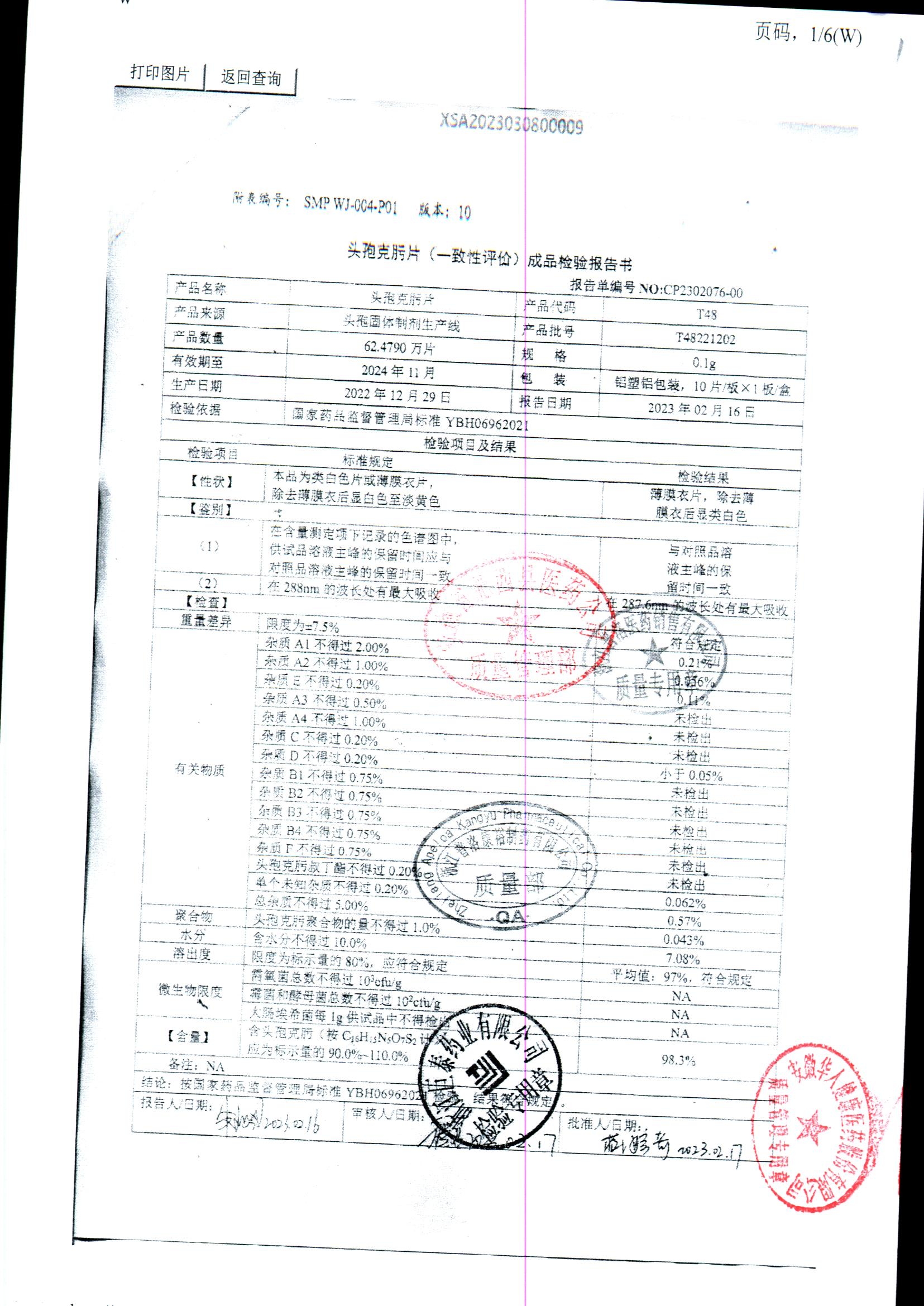 | 頭孢克肟片 | 0.1g*10s | T24210501 | 查看詳情 |
