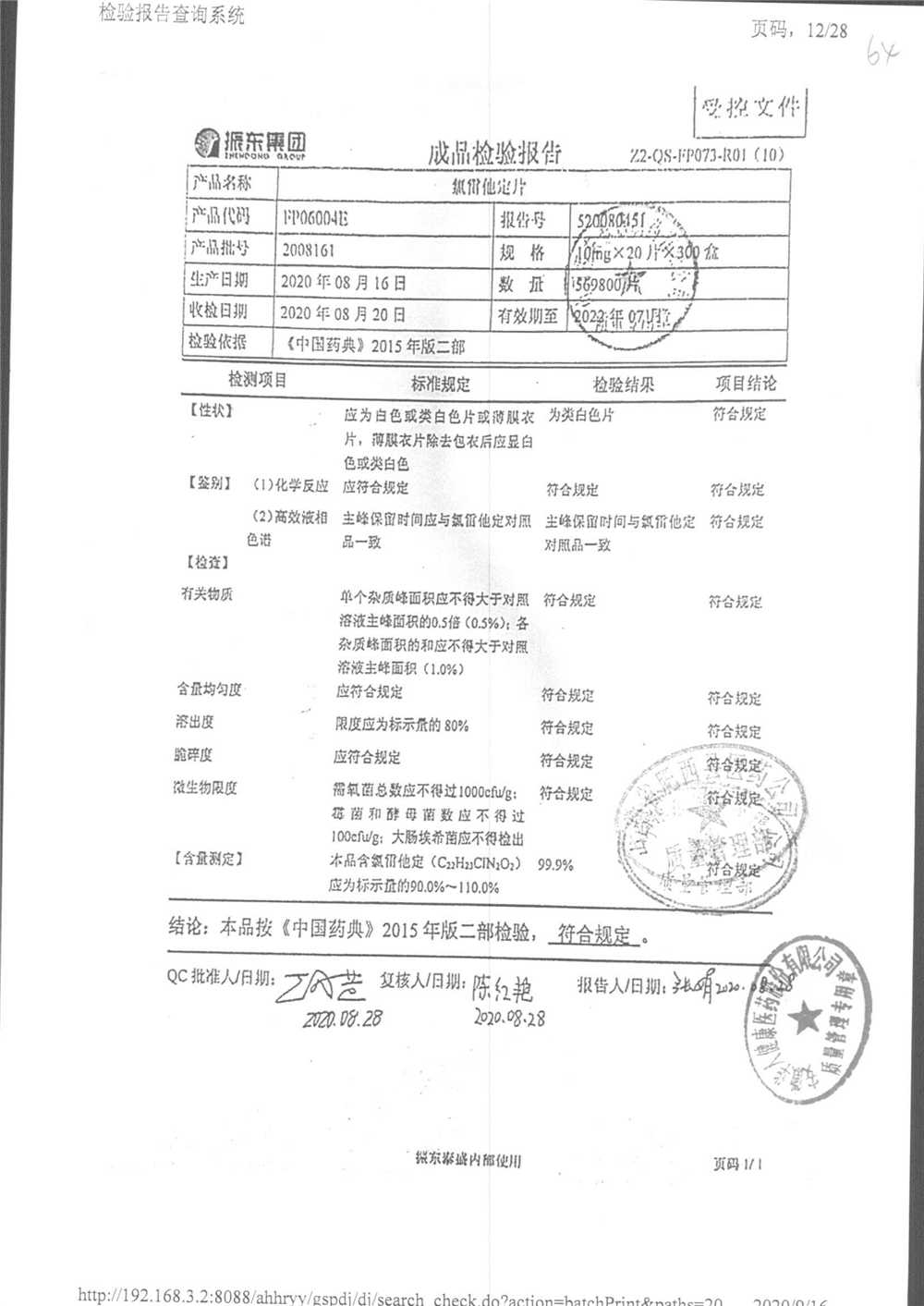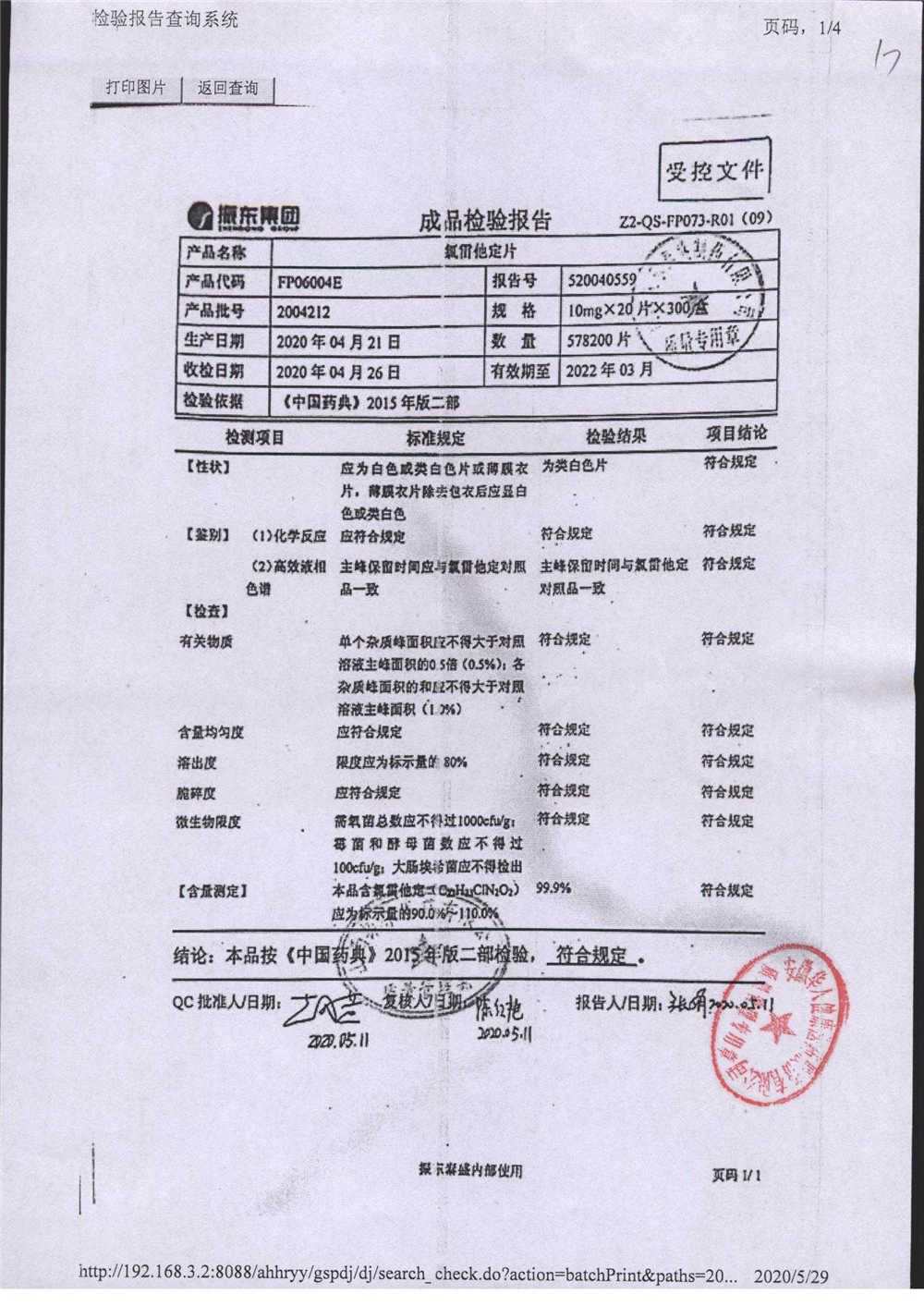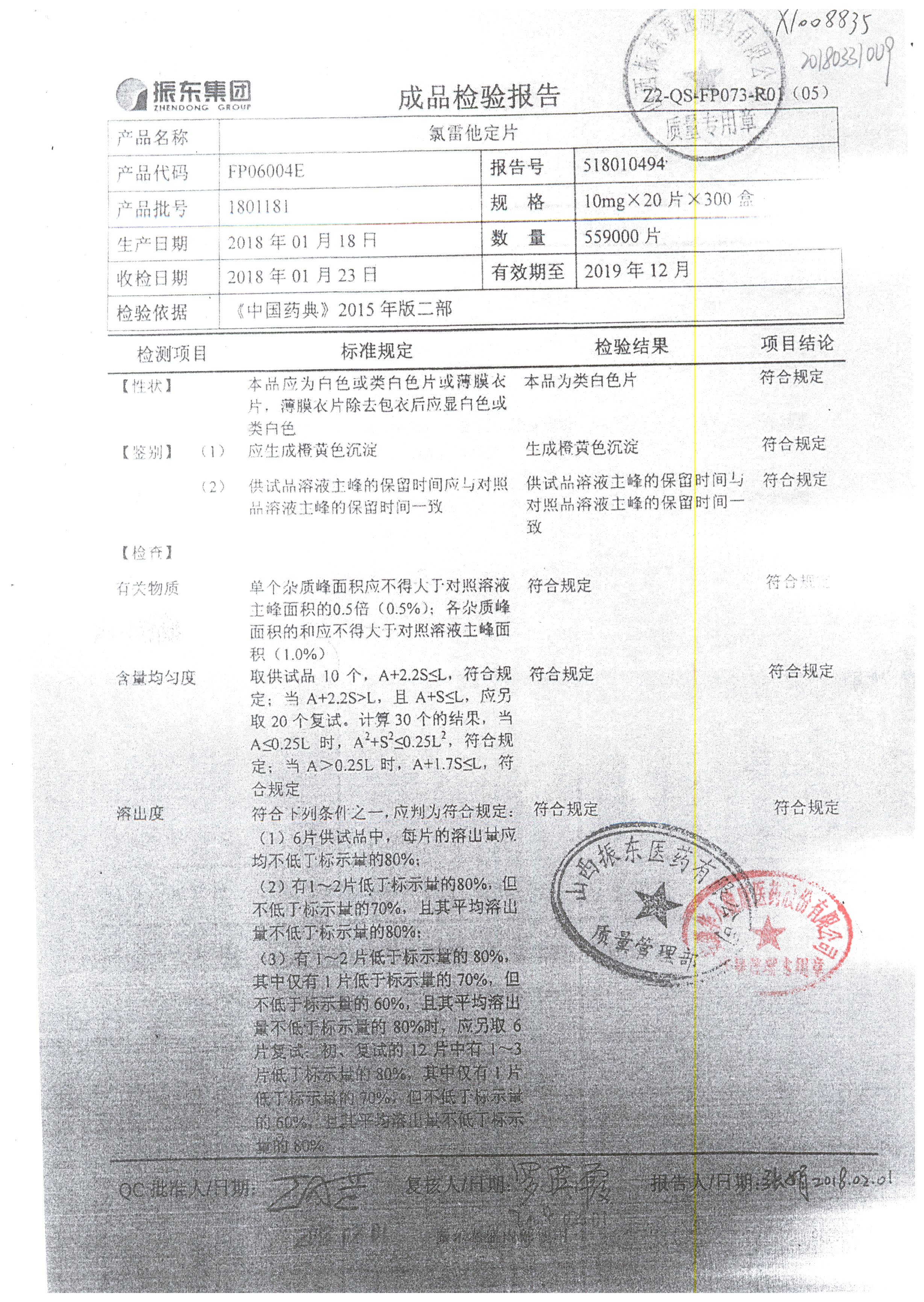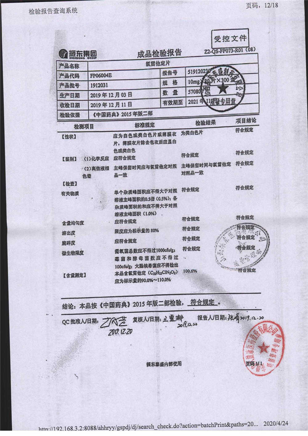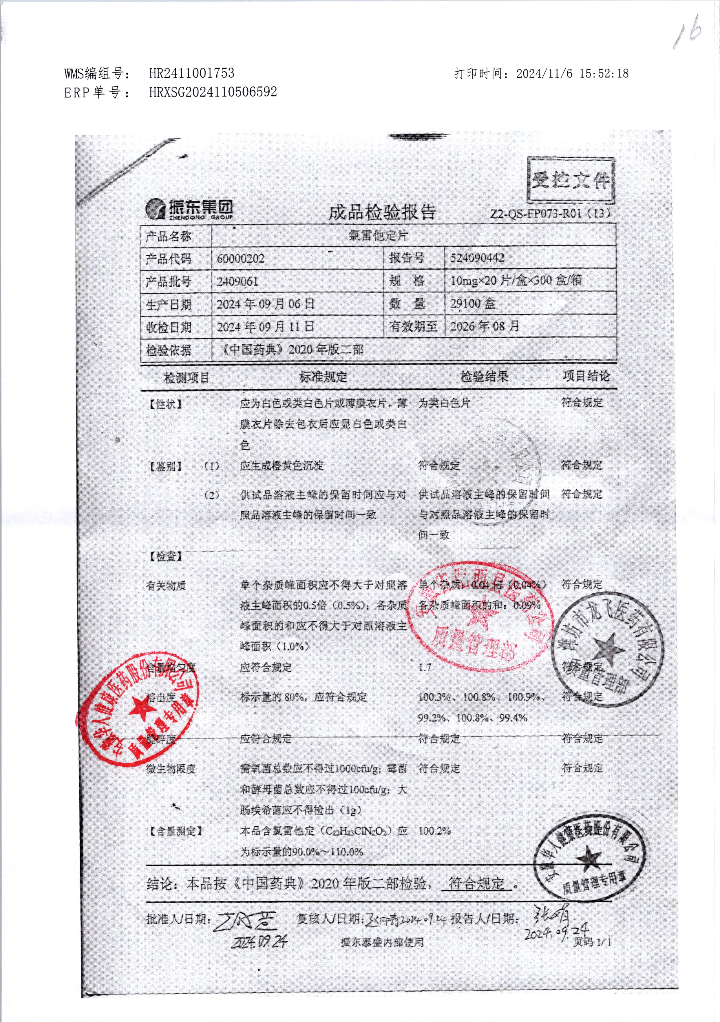 | 氯雷他定片 | 10mg*20s | 1809111(2/2) | 查看詳情 |