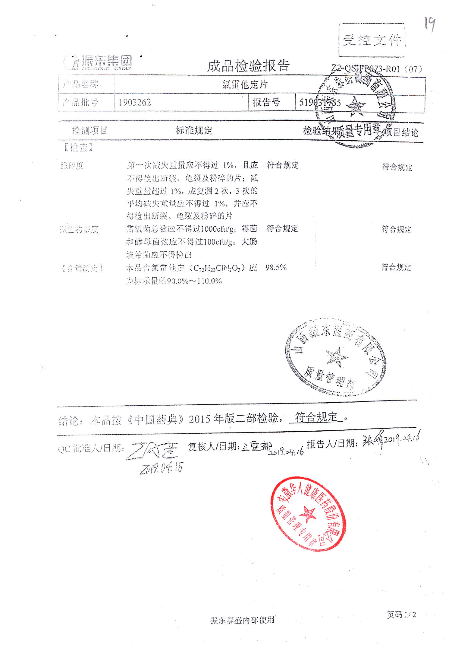 | 氯雷他定片 | 10mg*20s | 1906101(2/2) | 查看詳情 |