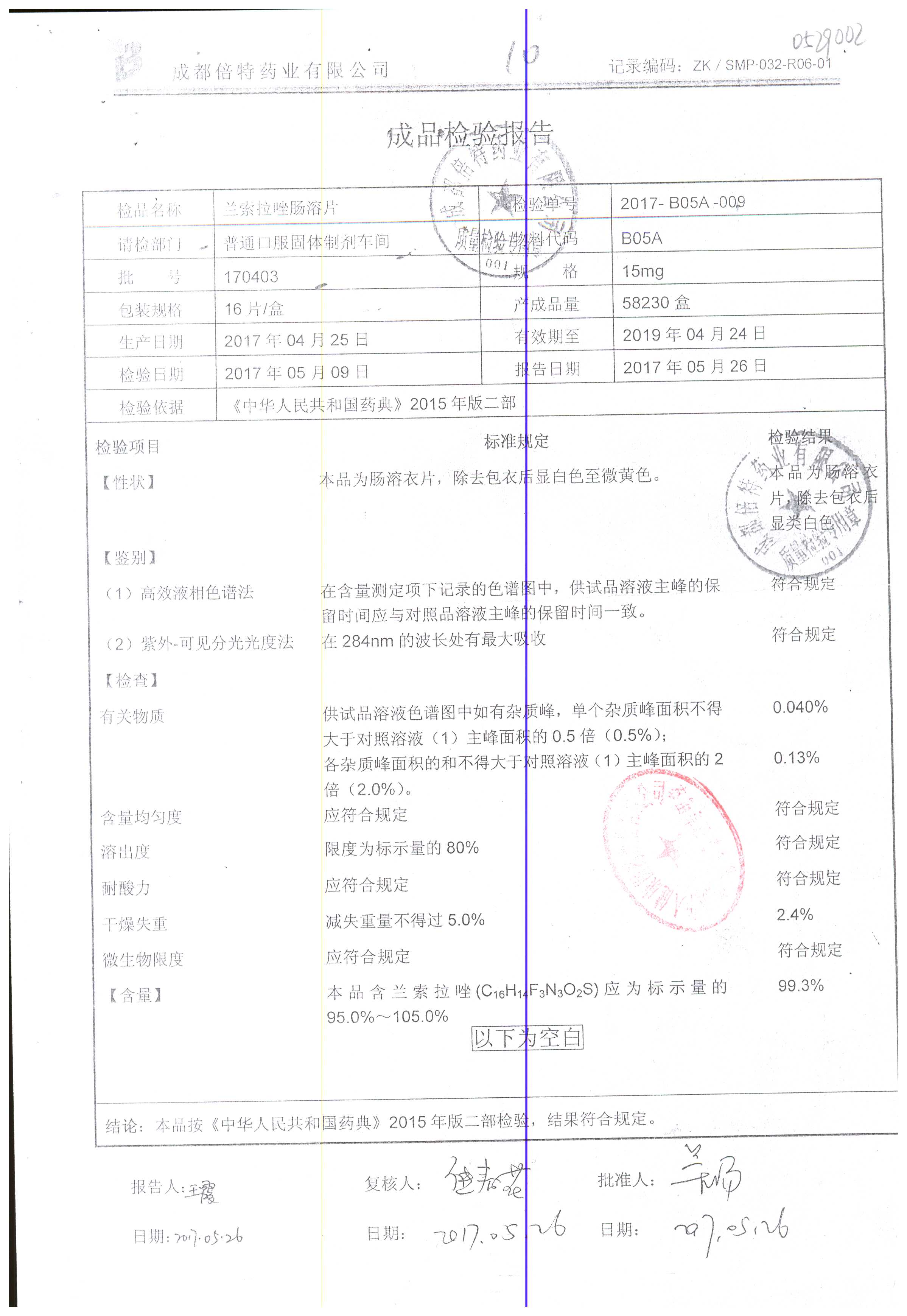 蘭索拉唑腸溶片 15mg*16s 170403 查看詳情