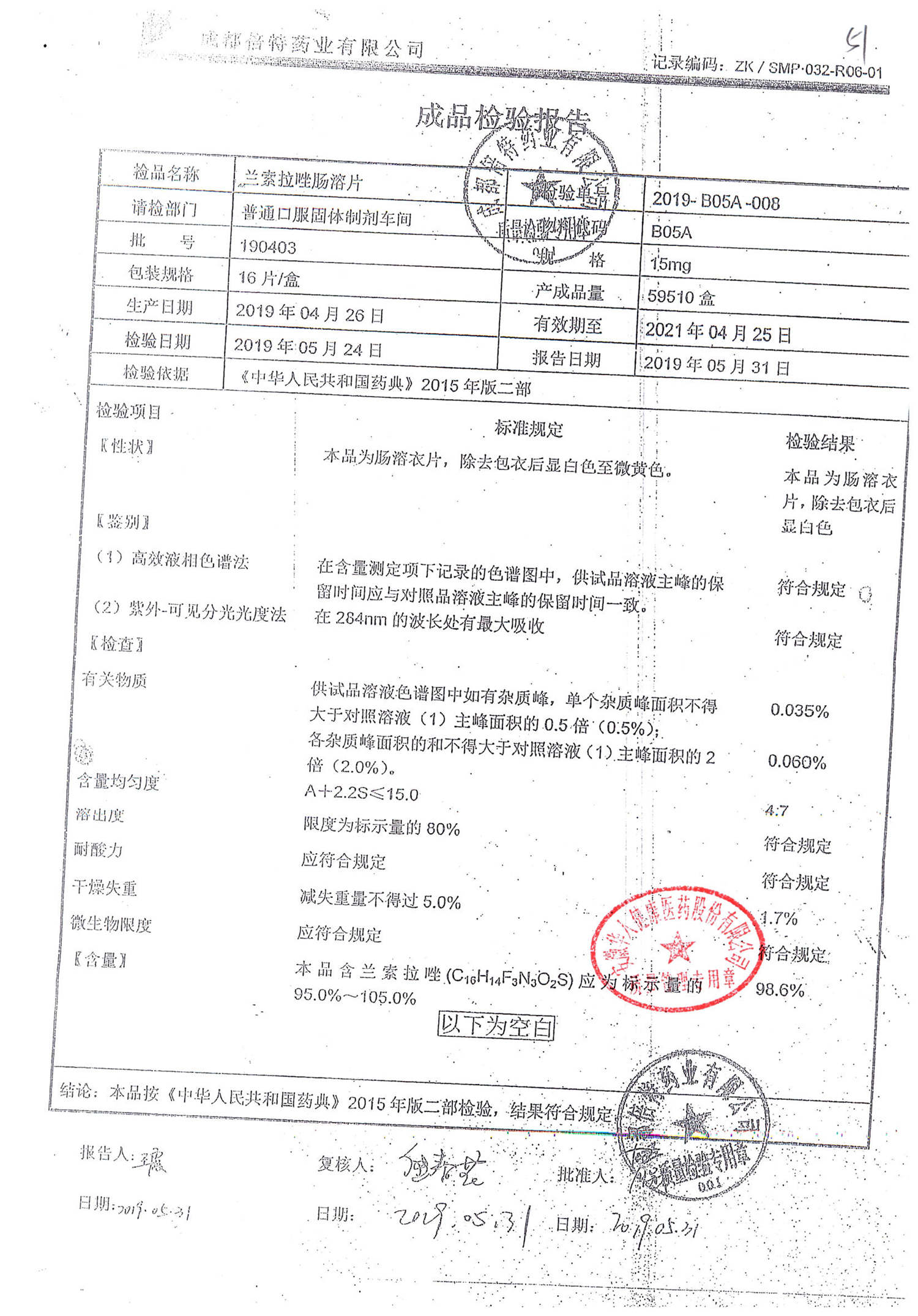 蘭索拉唑腸溶片 15mg*16s 190403 查看詳情