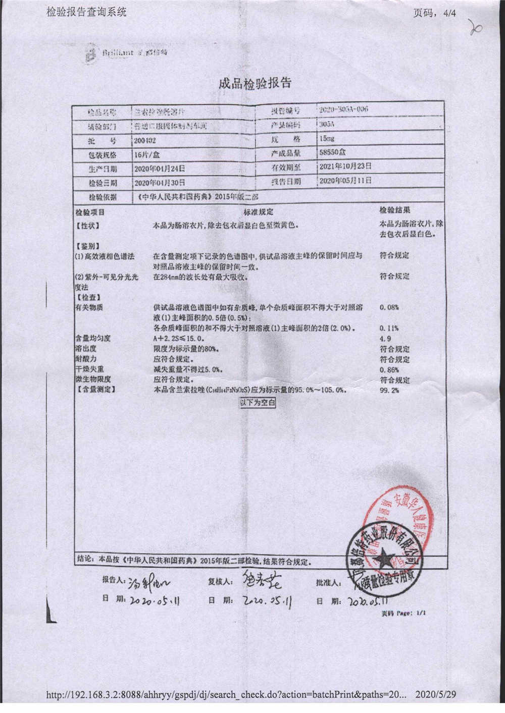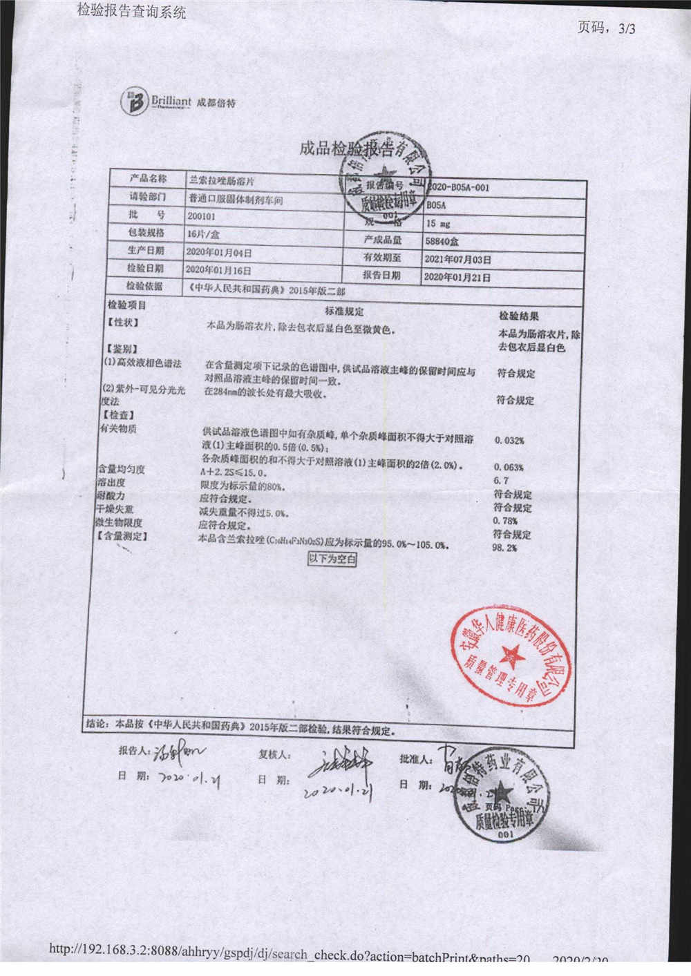 蘭索拉唑腸溶片 15mg*16s 200102 查看詳情