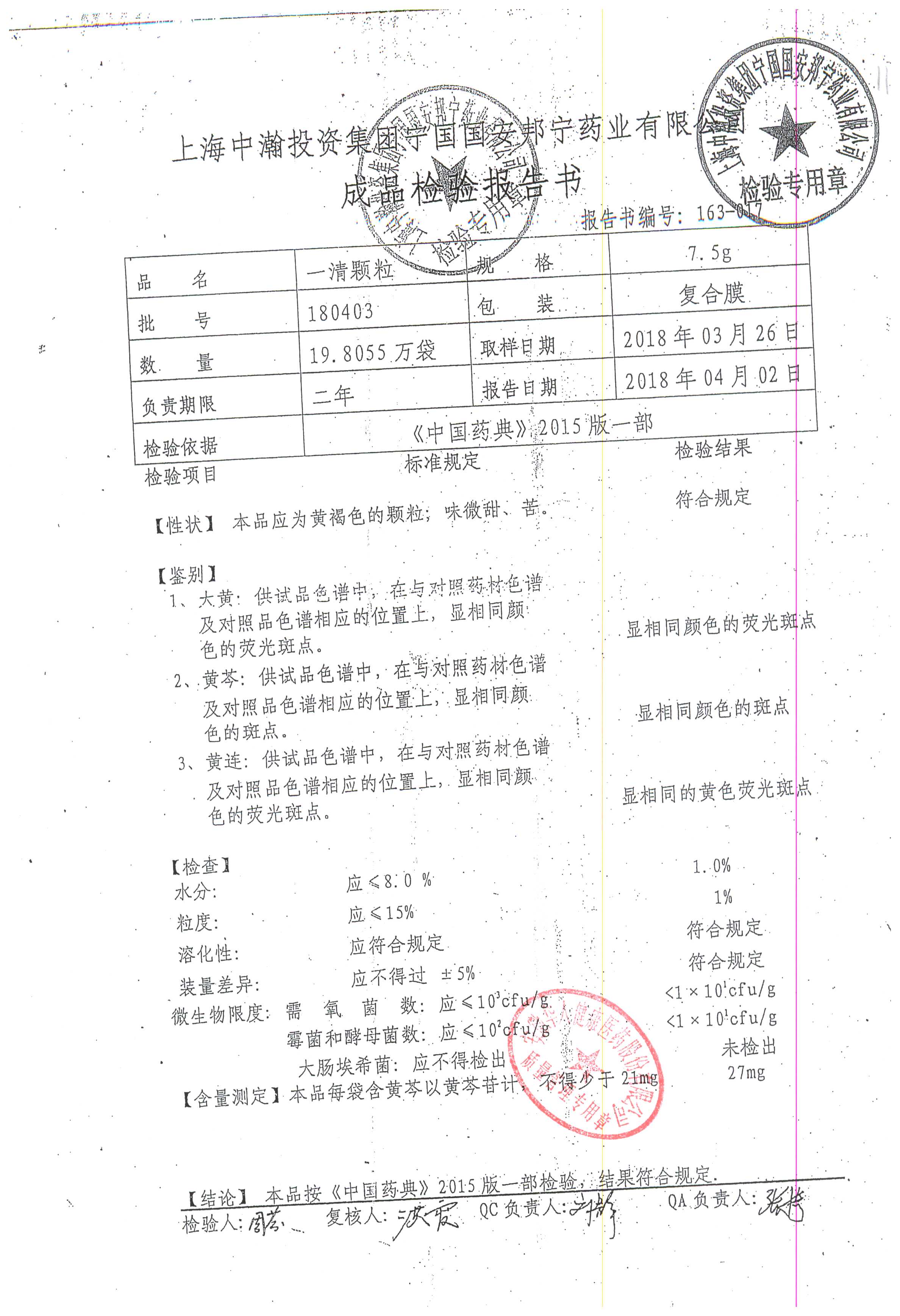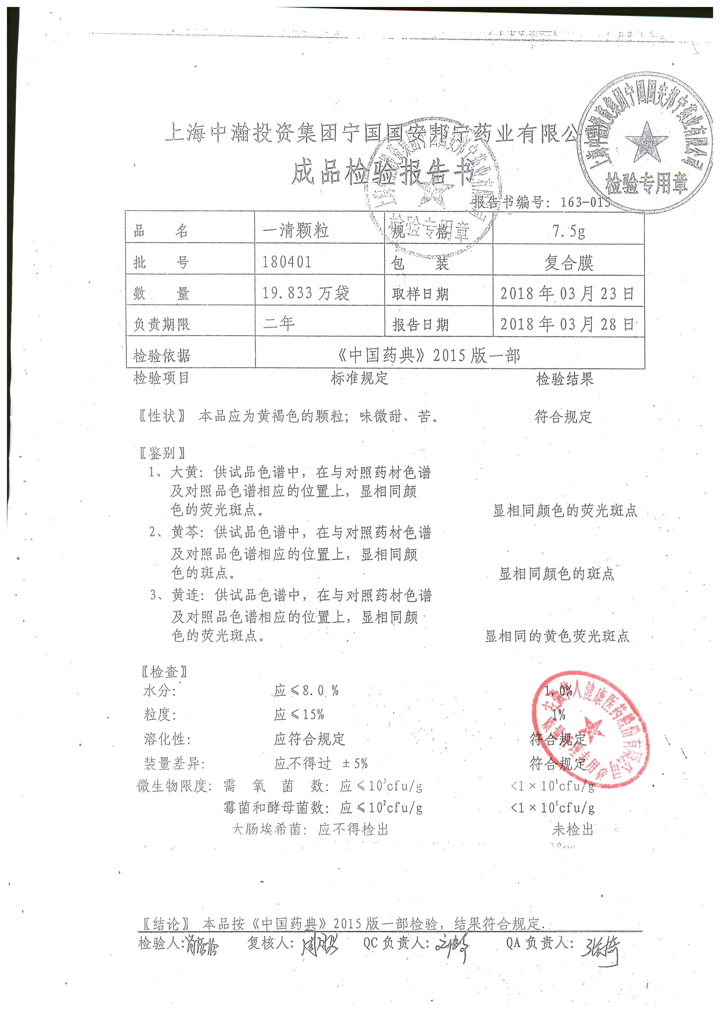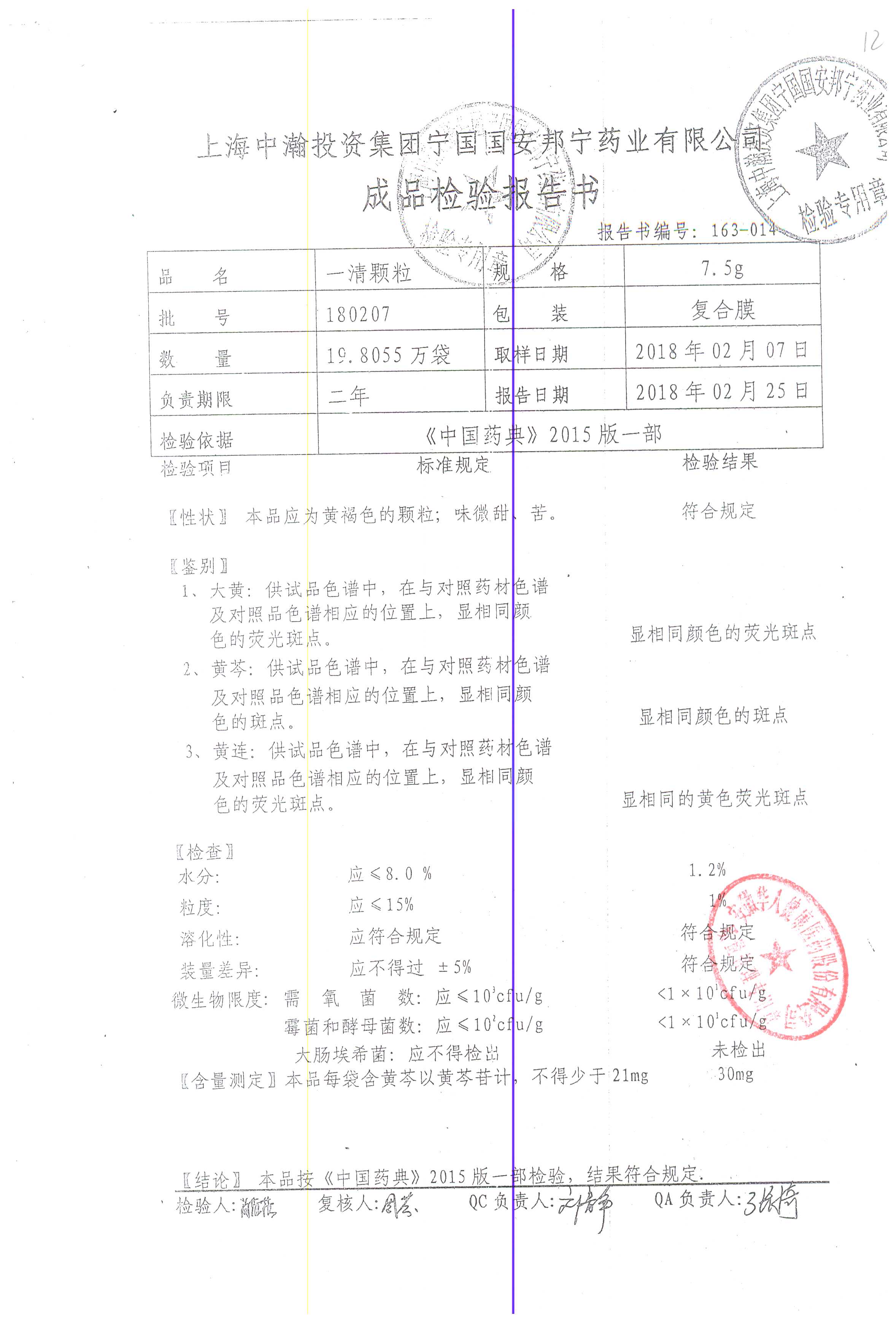 名稱 規格 批號 藥檢報告