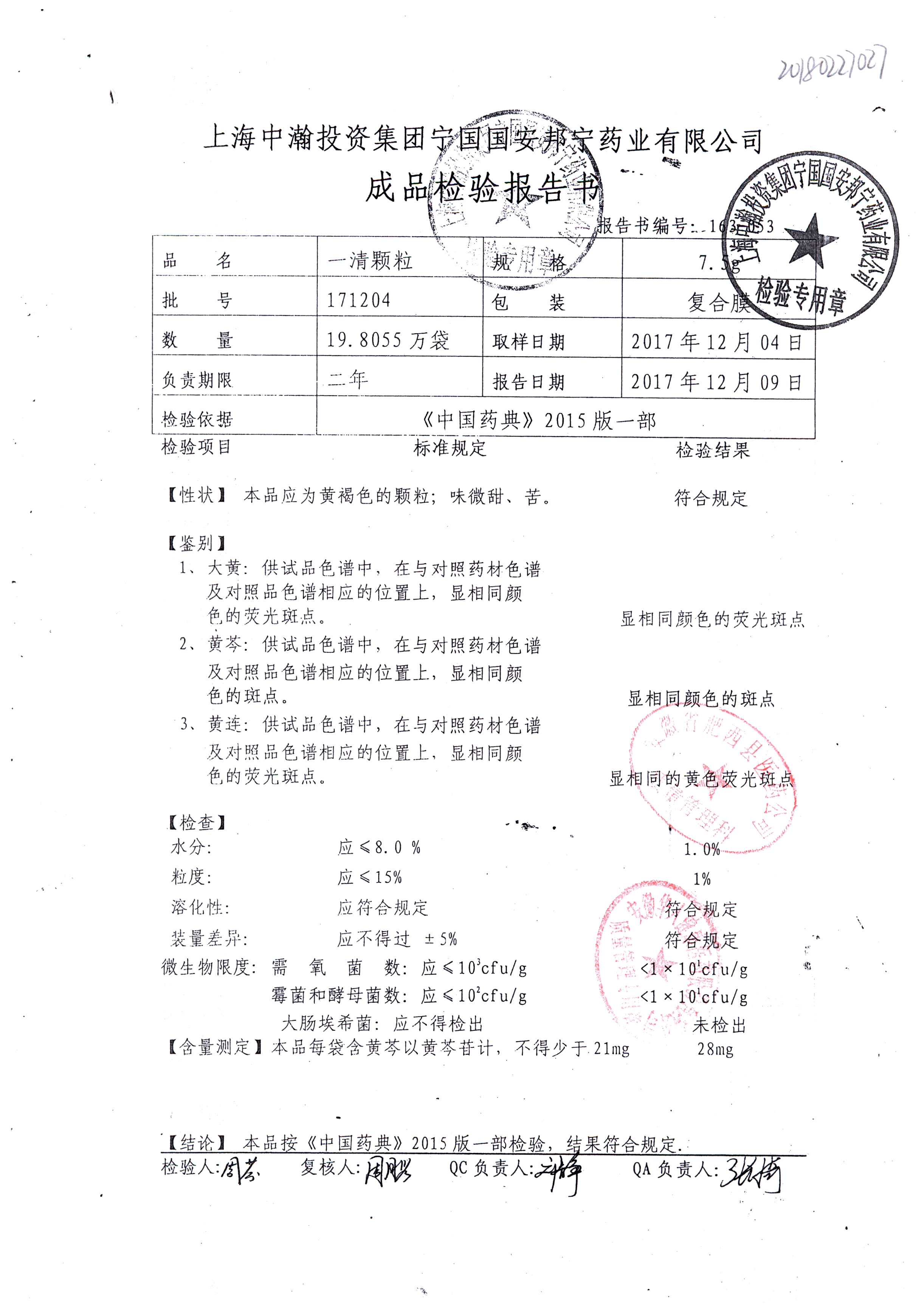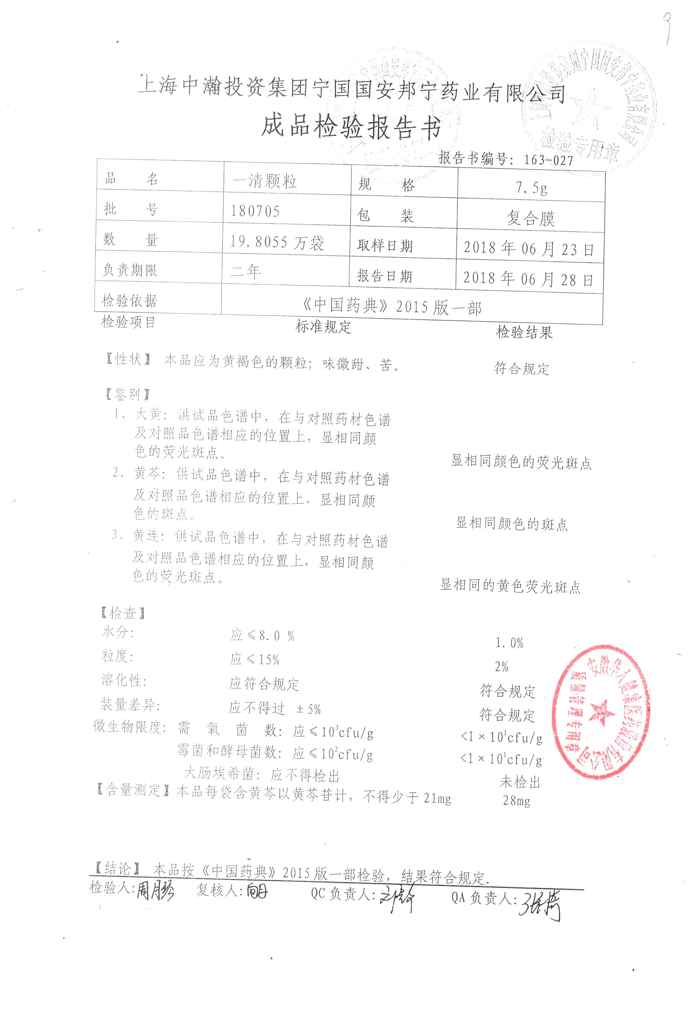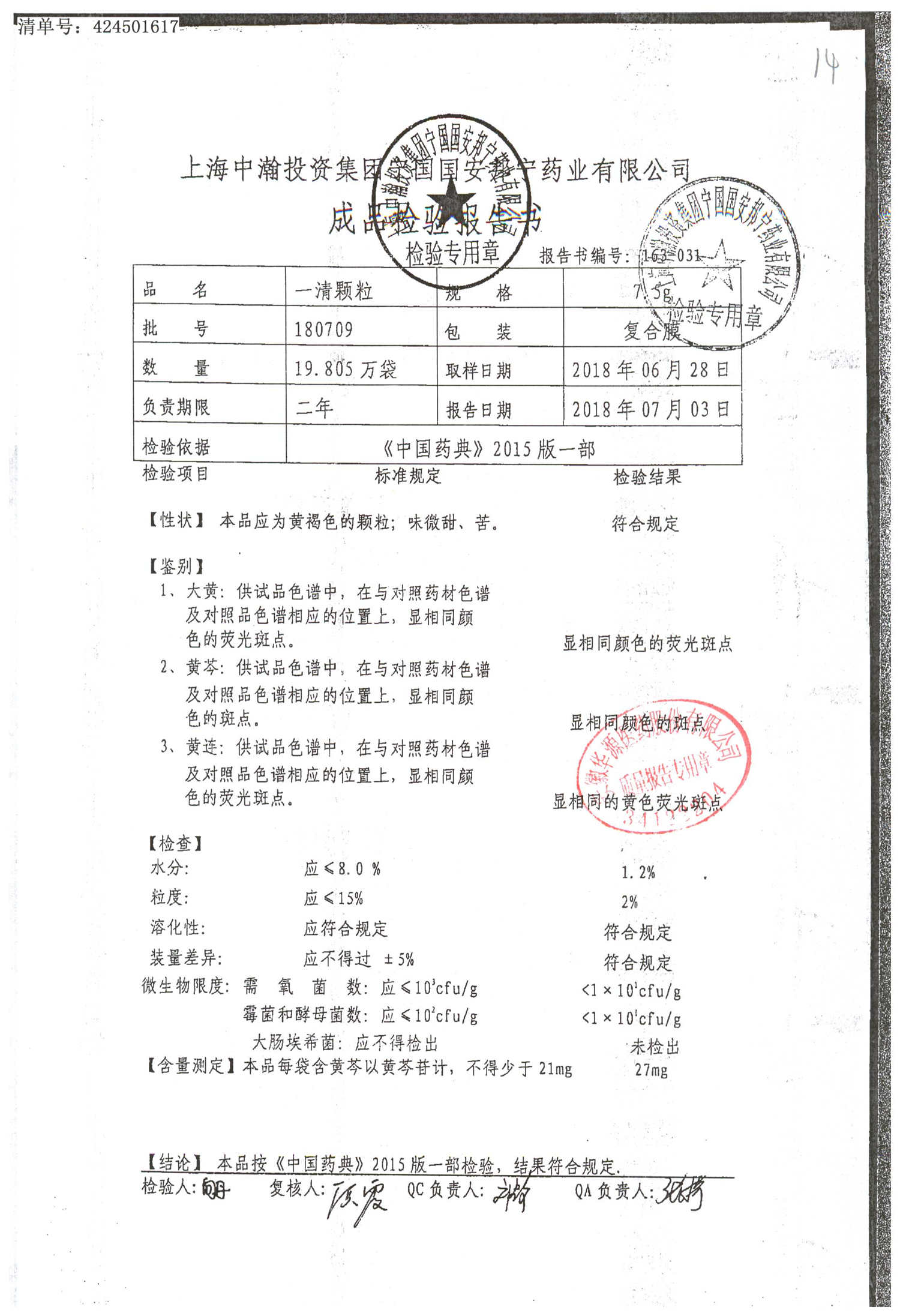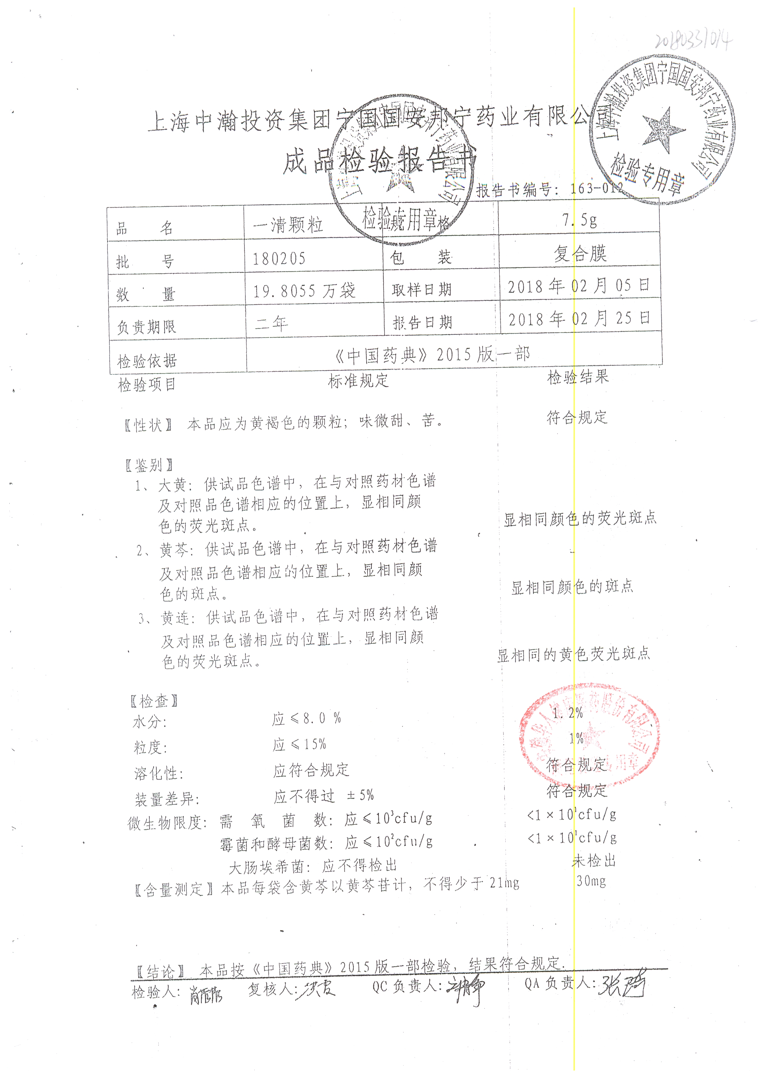 名稱 規格 批號 藥檢報告