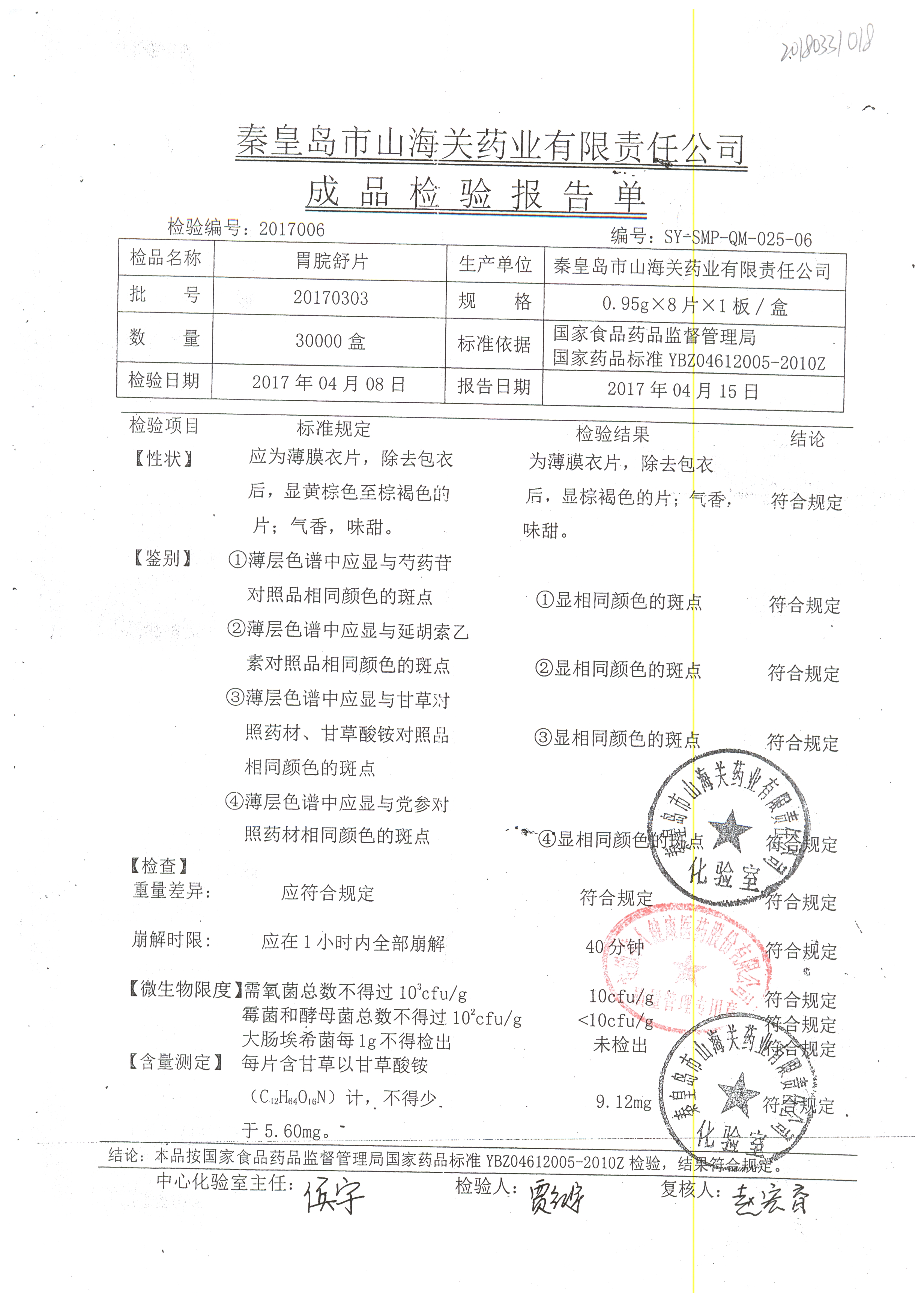 胃脘舒片 0.95g*8s 20170303 查看詳情