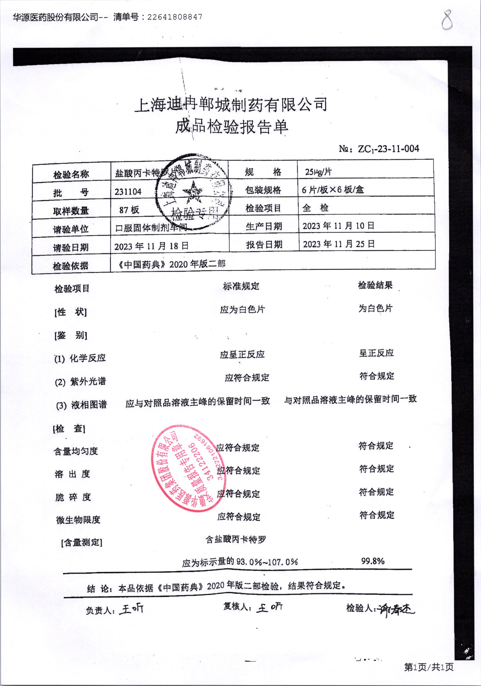 | 鹽酸丙卡特羅片 | 25mg*6s | 231104 | 查看詳情 |