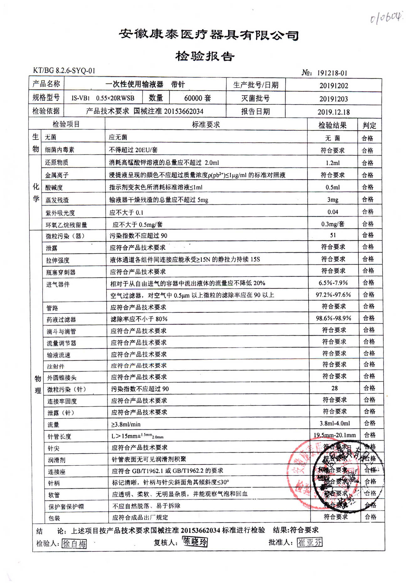 | 一次性使用輸液器 帶針 | 0.55*20RWSB | 20191218 | 查看詳情 |