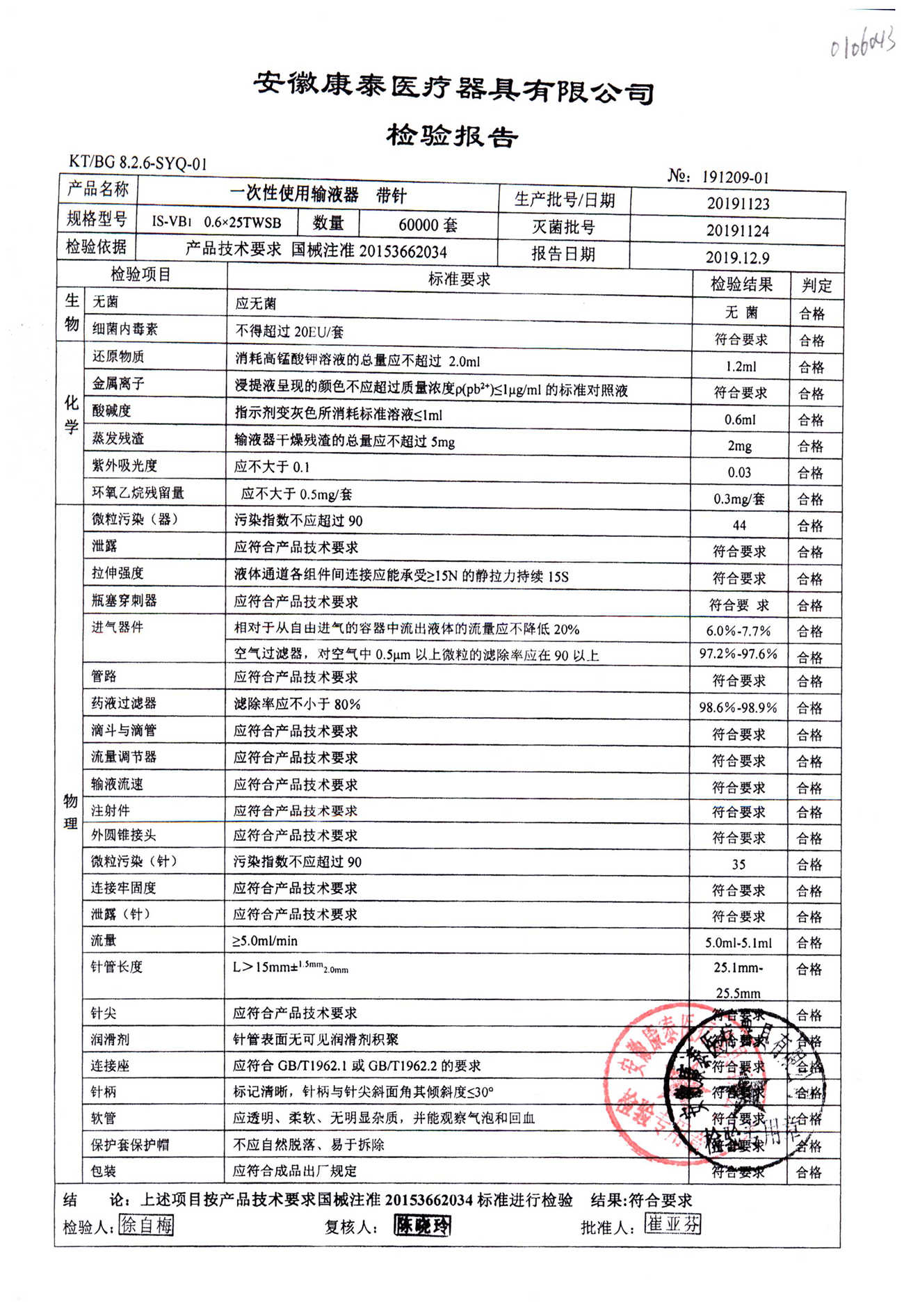 | 一次性使用輸液器 帶針 | 0.6*25TWSB | 20191017 | 查看詳情 |