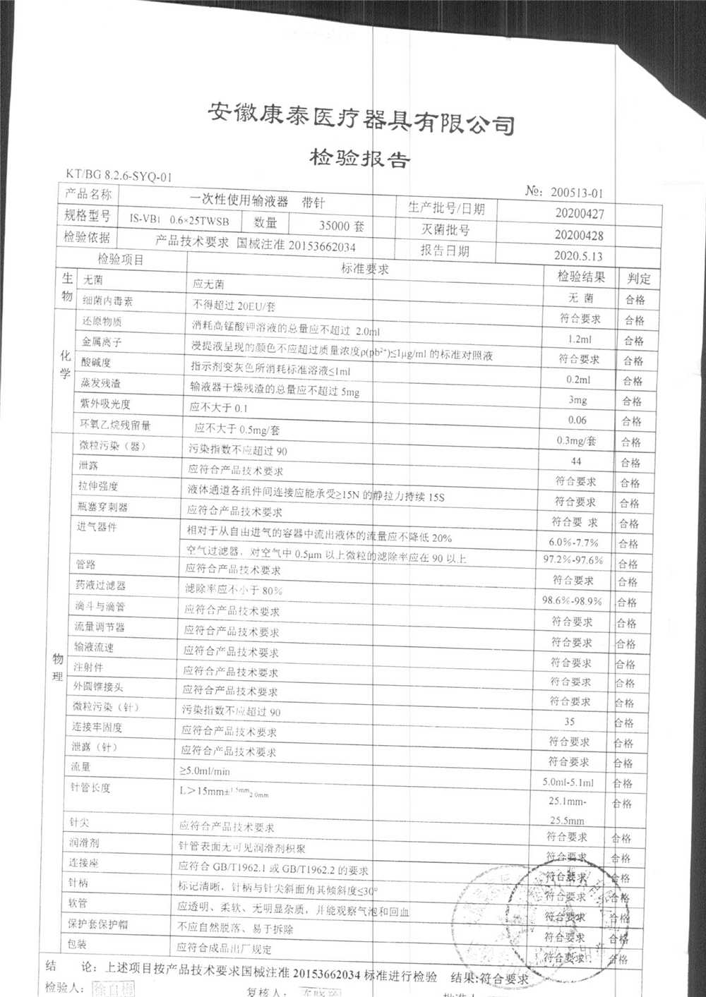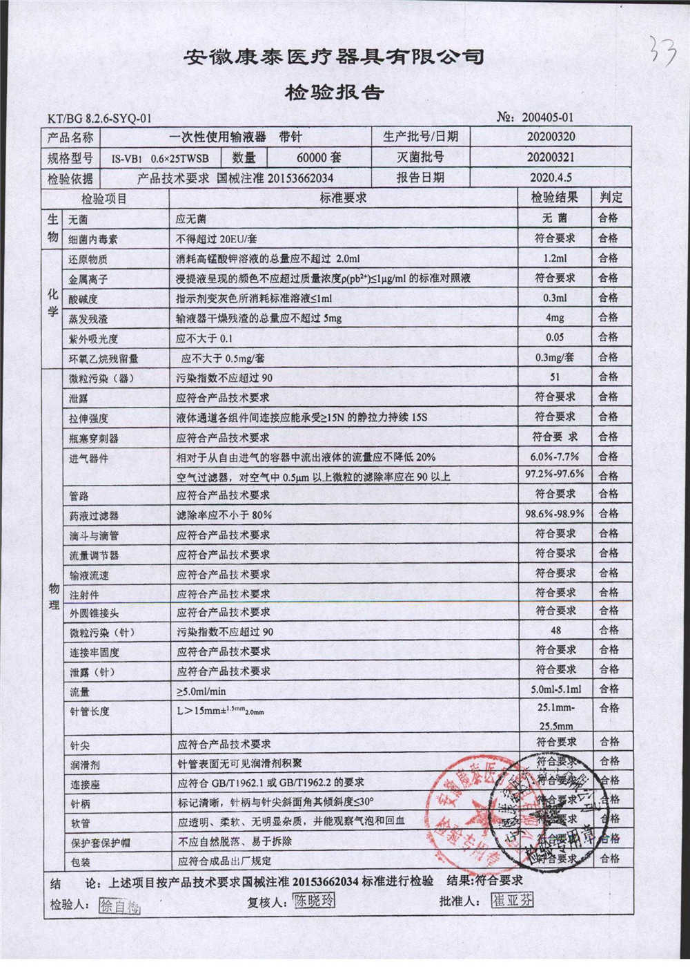 | 一次性使用輸液器 帶針 | 0.6*25TWSB | 20200427 | 查看詳情 |