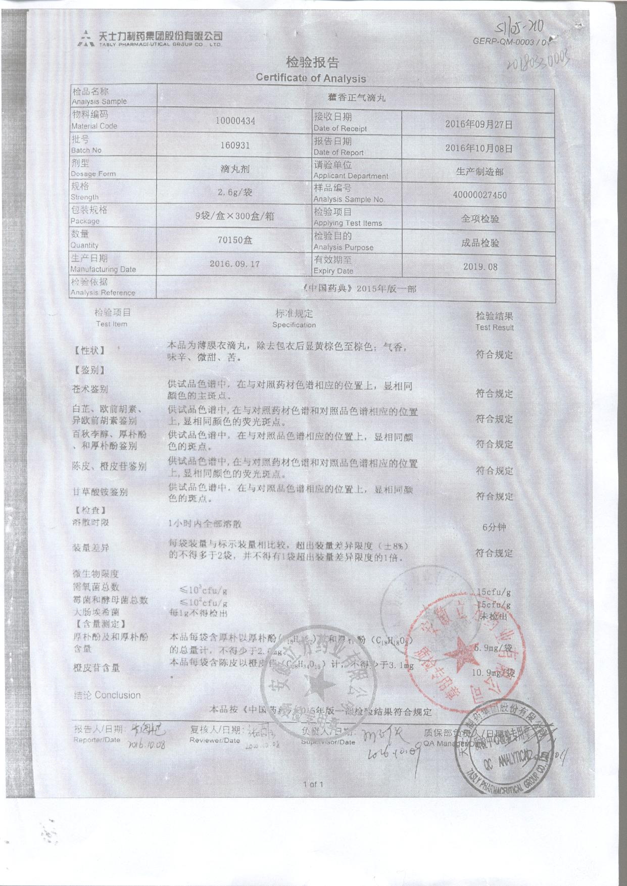| 藿香正氣滴丸 | 2.6g*9袋 | 170203 | 查看詳情 |