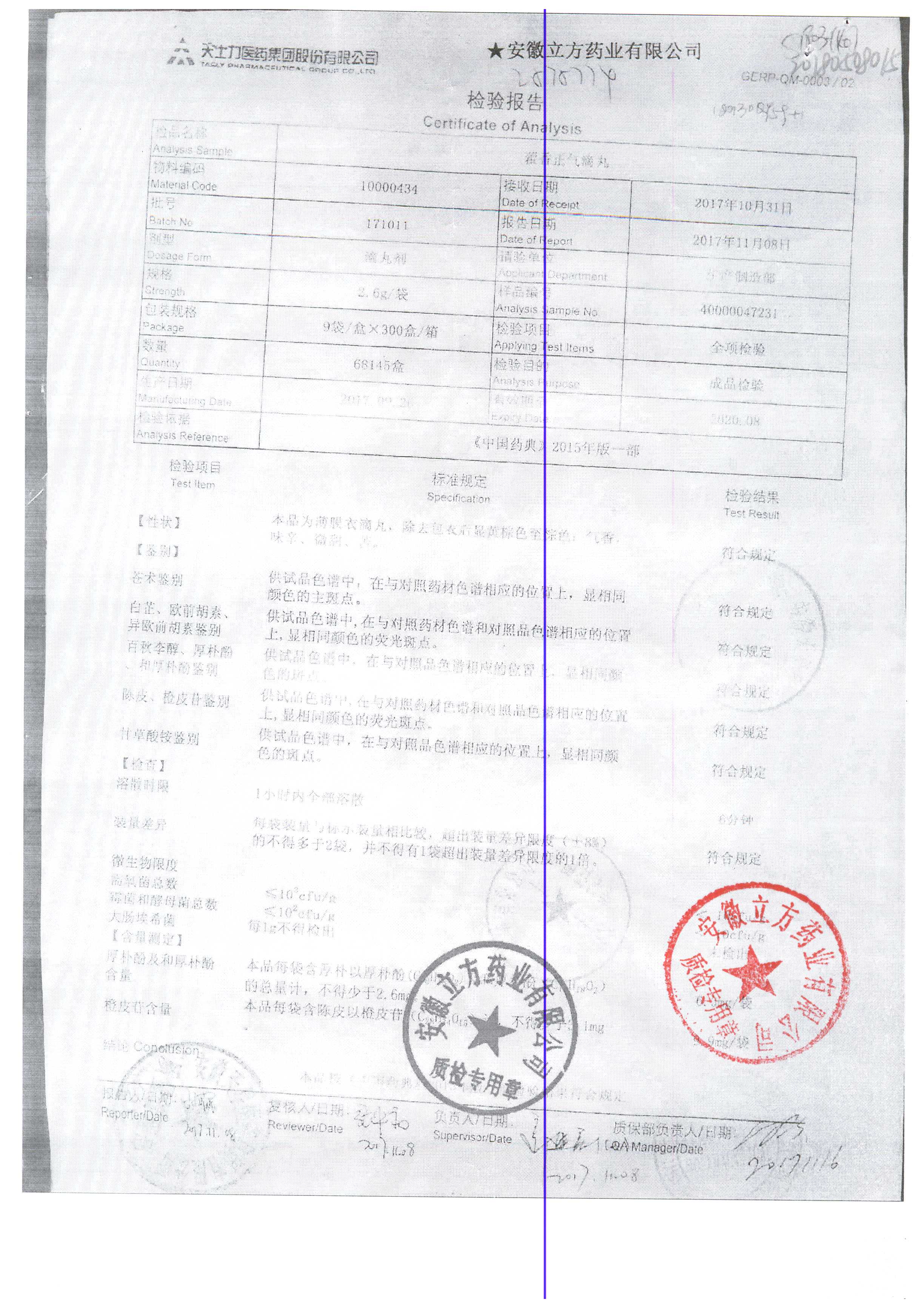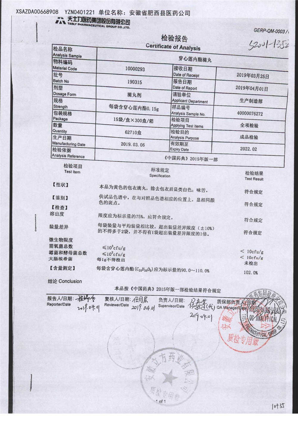 | 名稱 | 規格 | 批號 | 藥檢報告 |