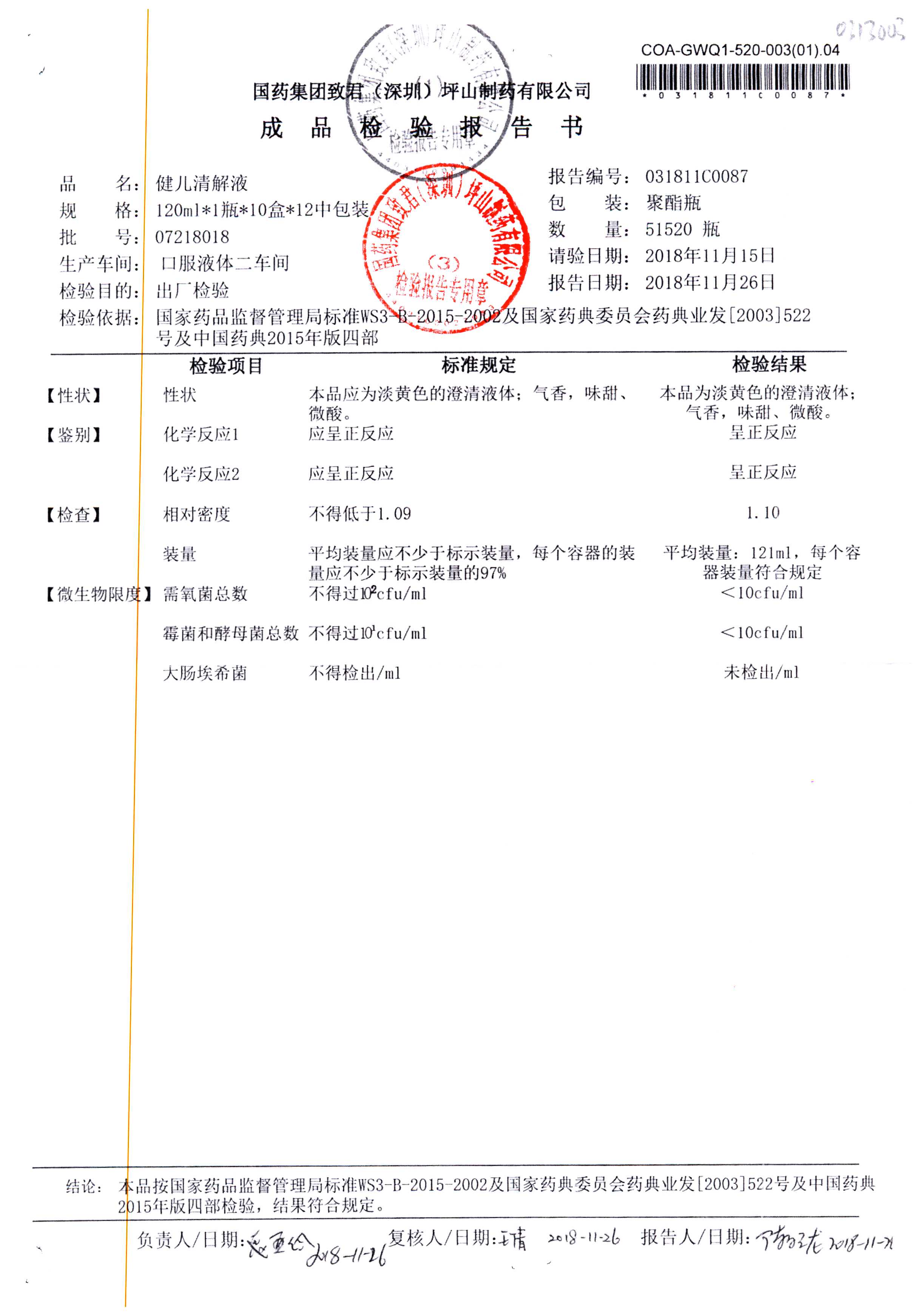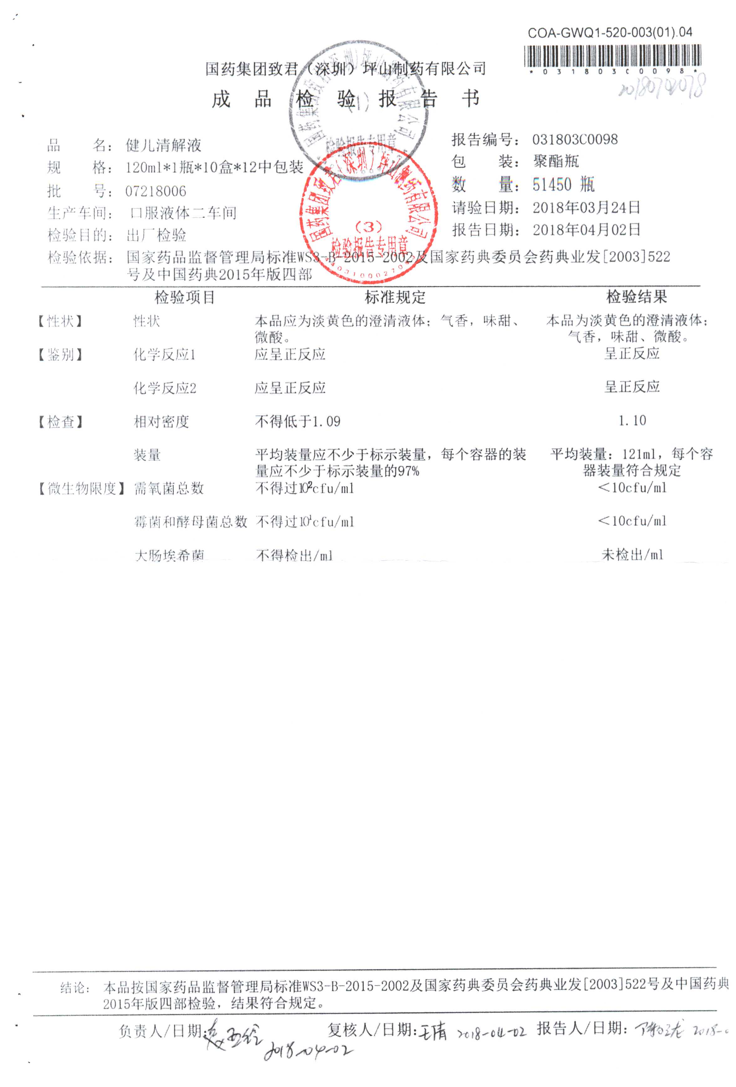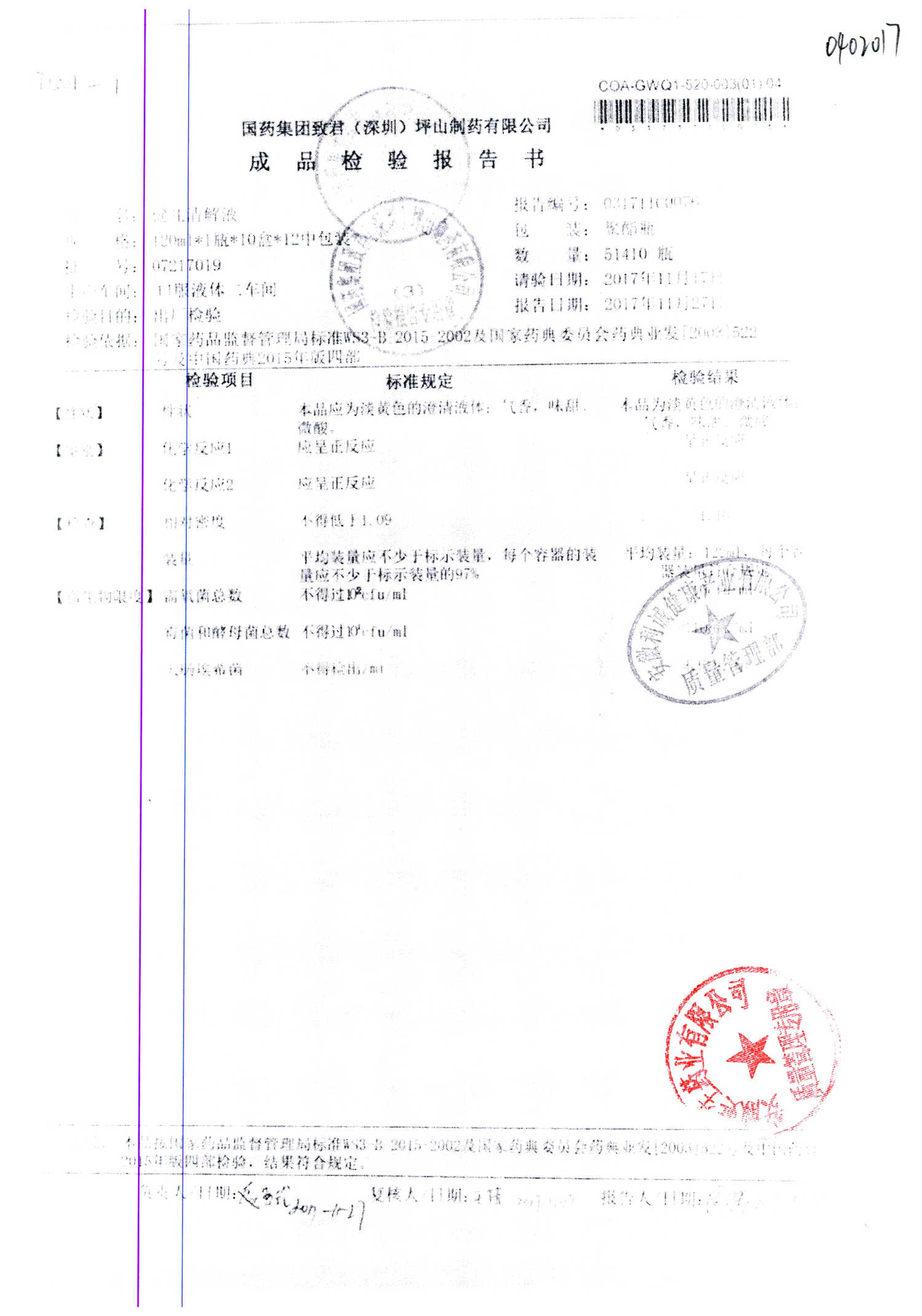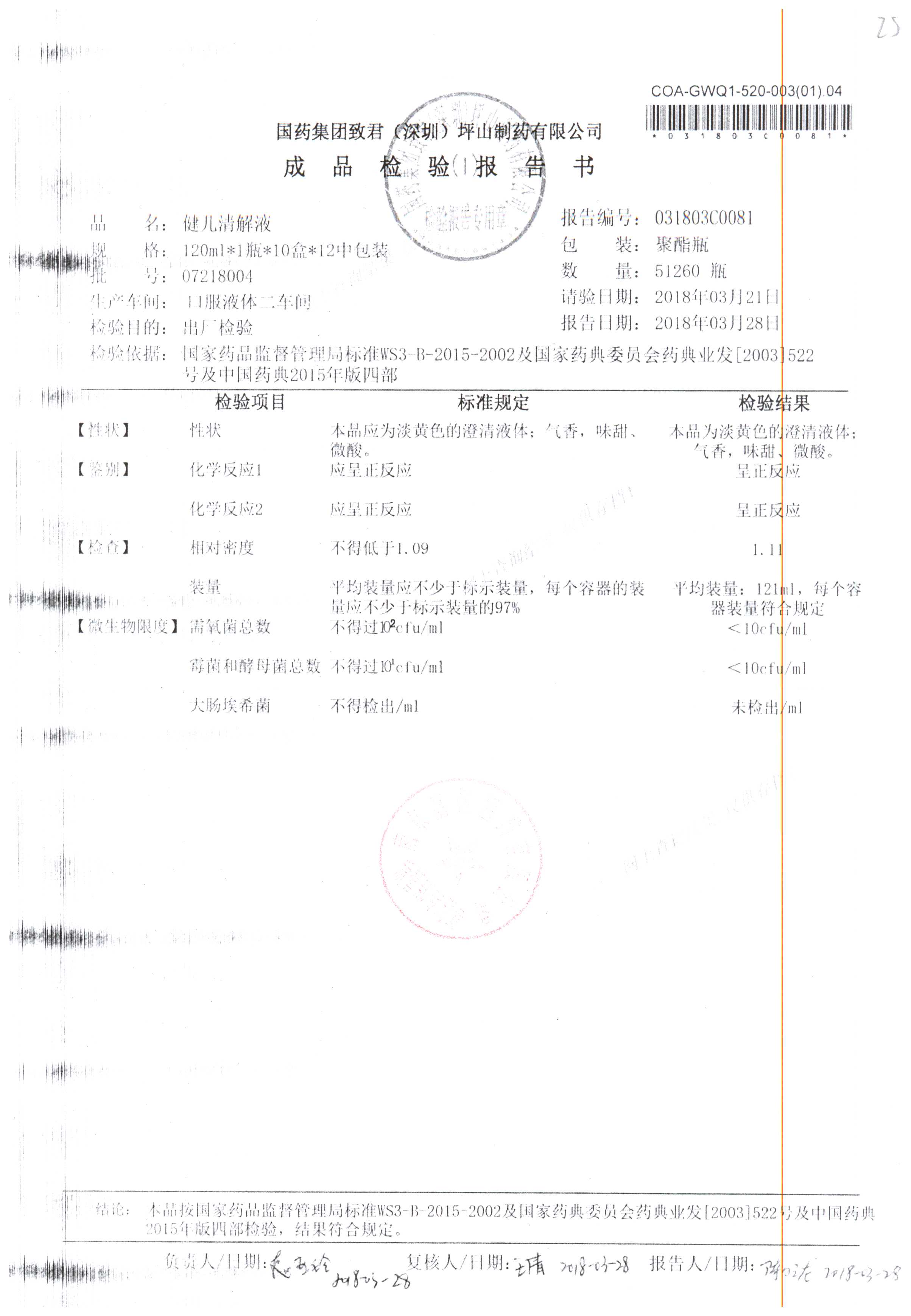 名稱 規格 批號 藥檢報告