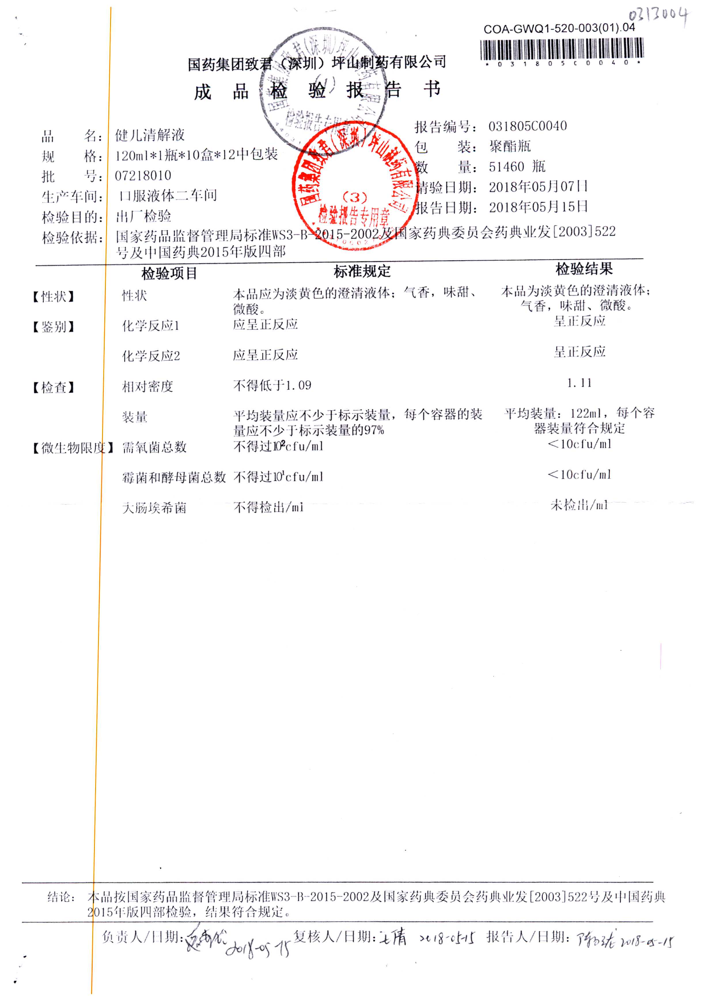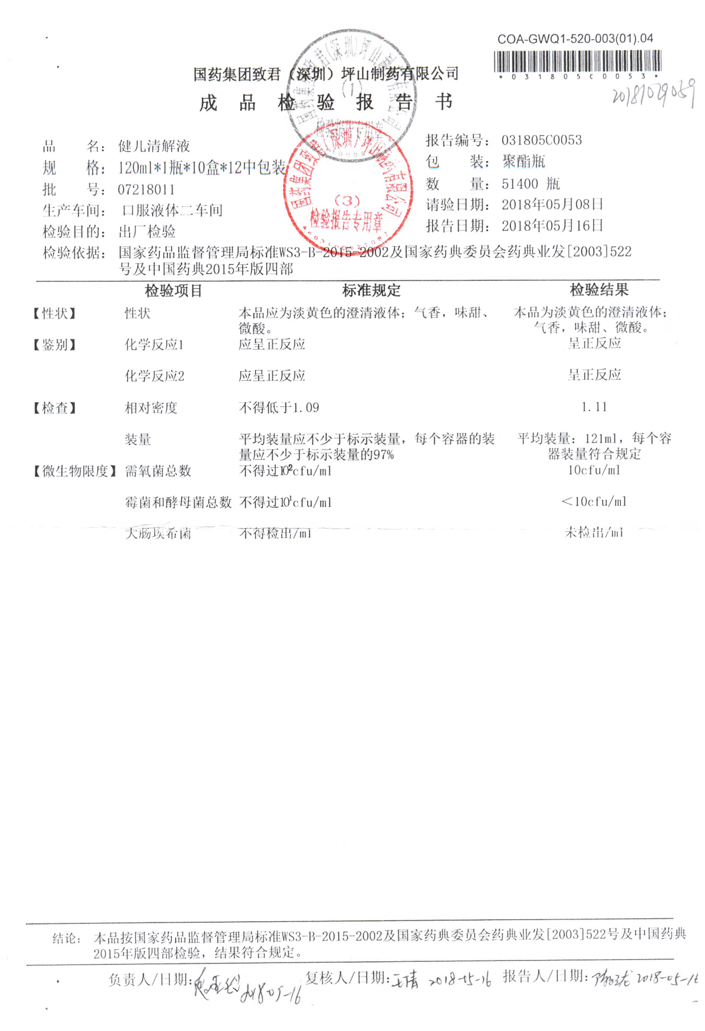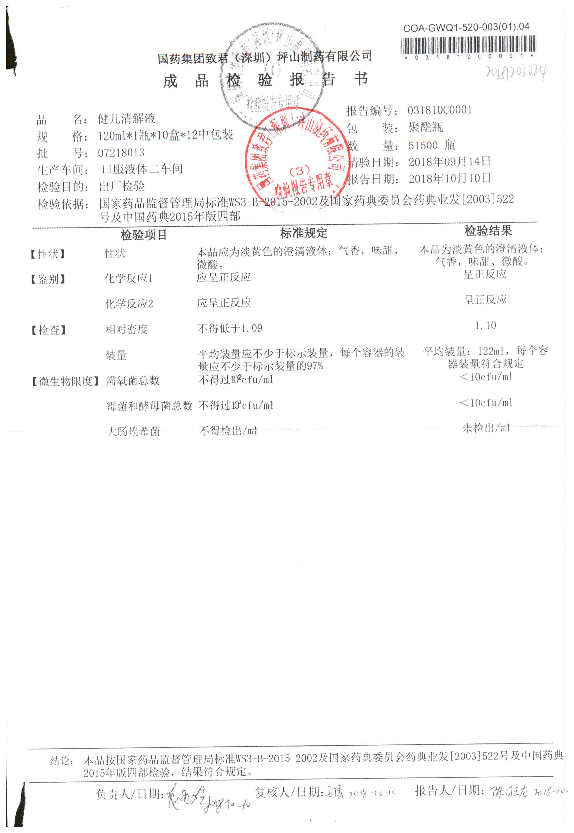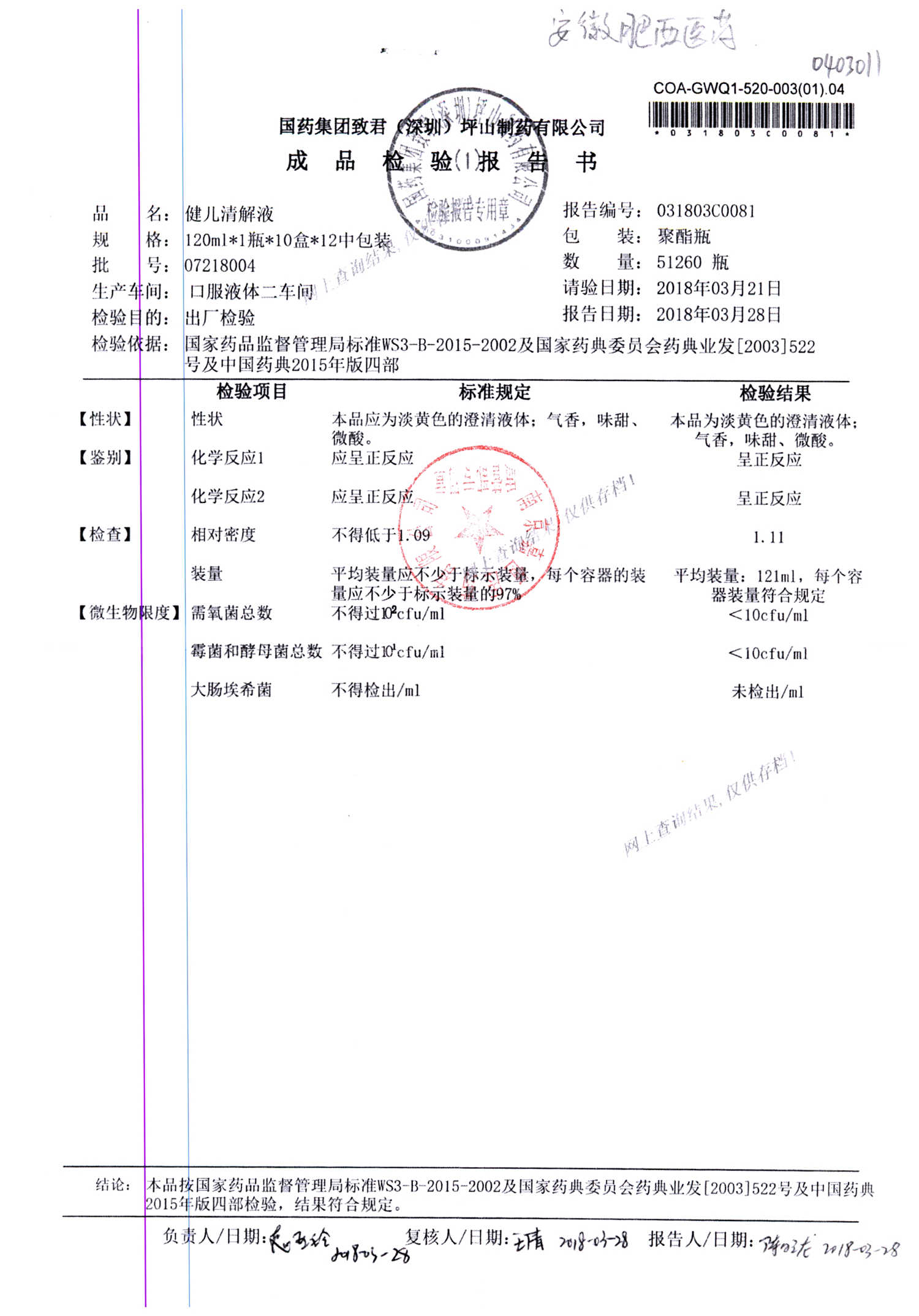名稱 規格 批號 藥檢報告