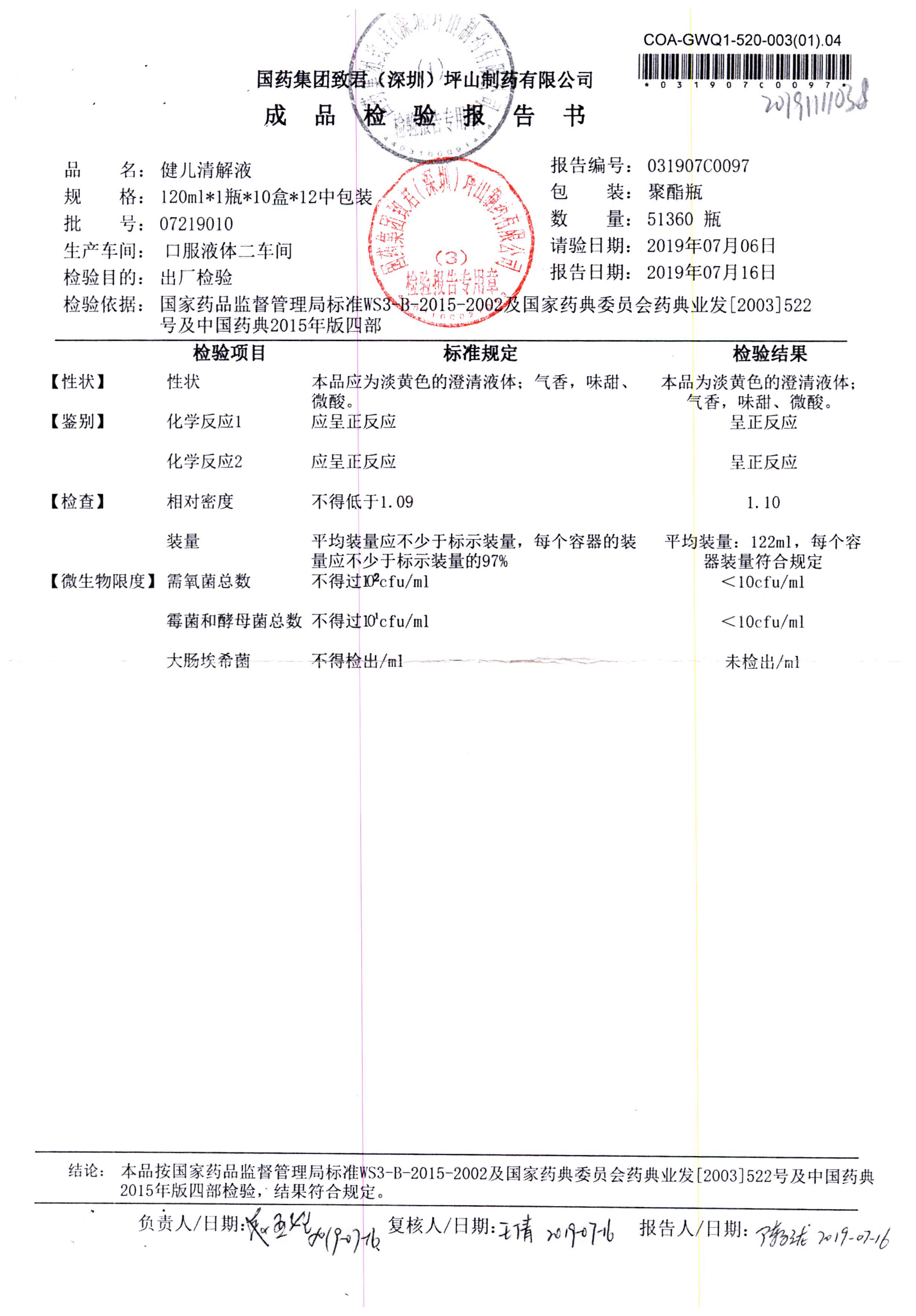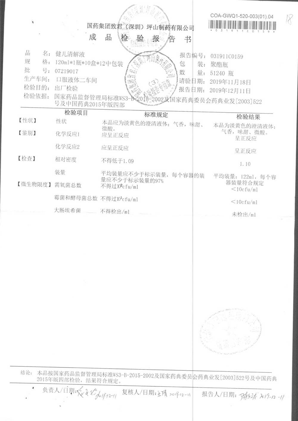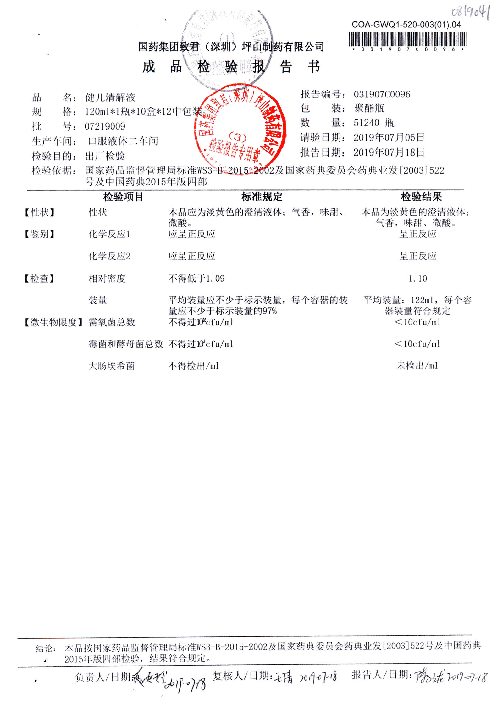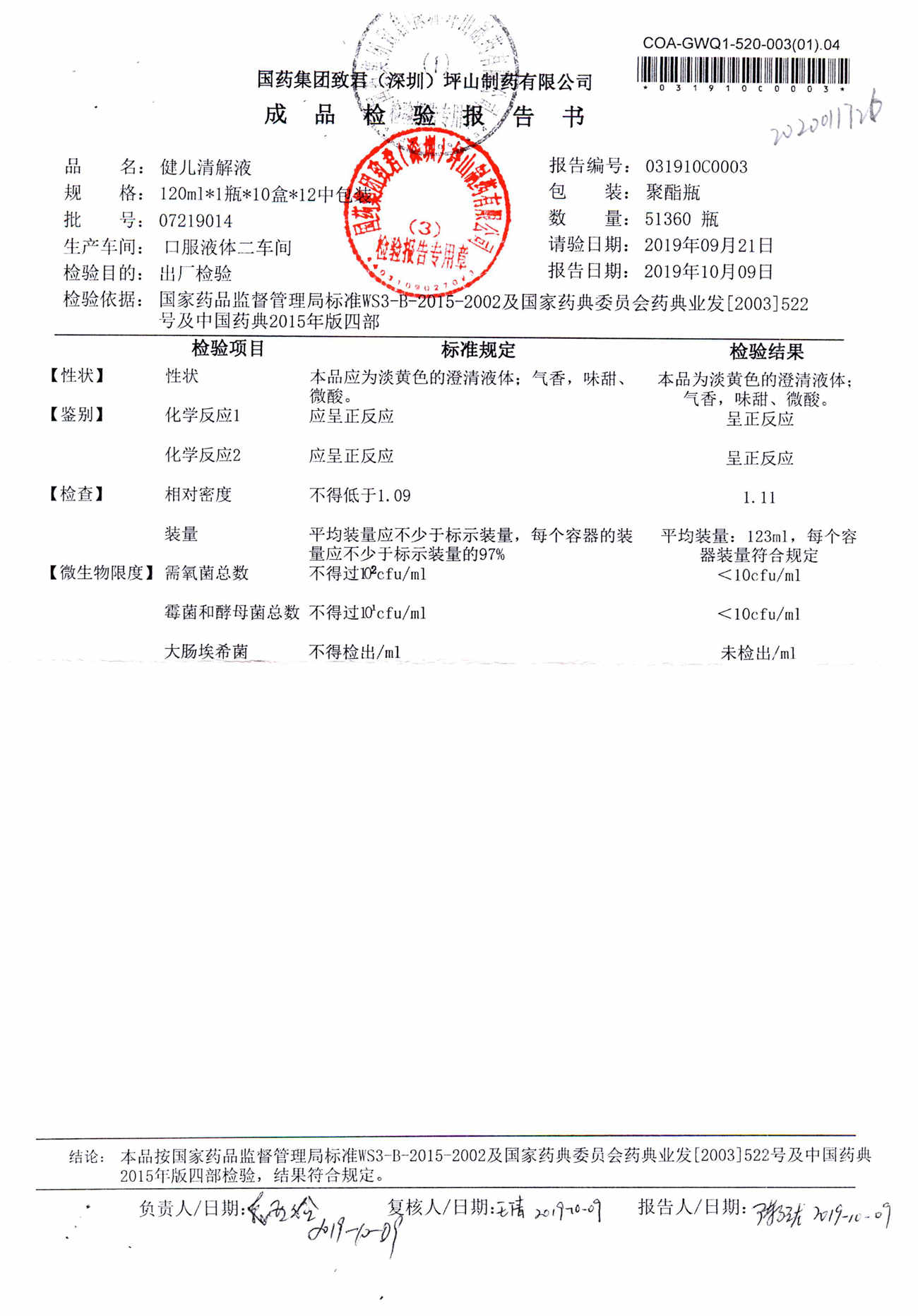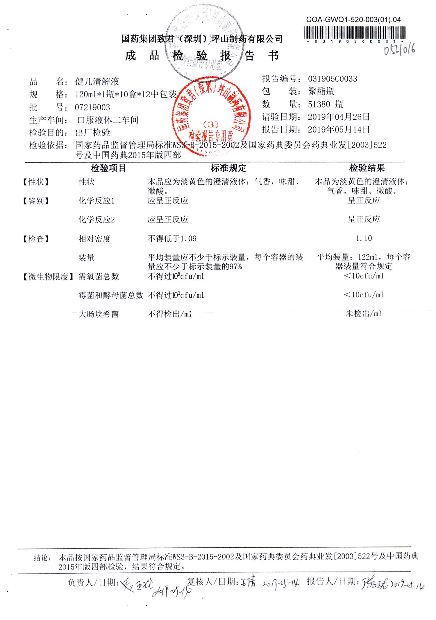 名稱 規格 批號 藥檢報告