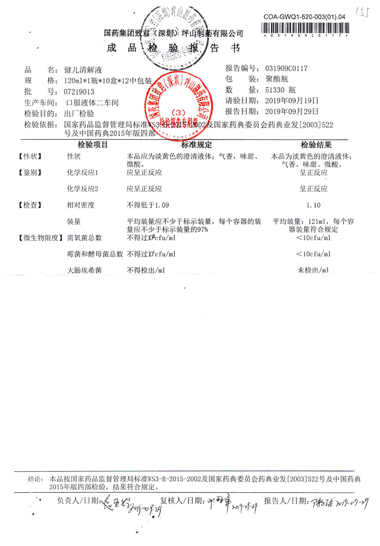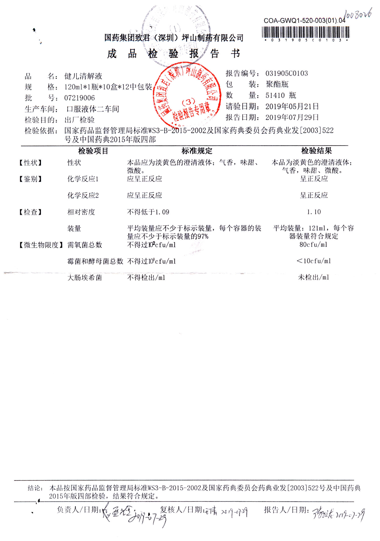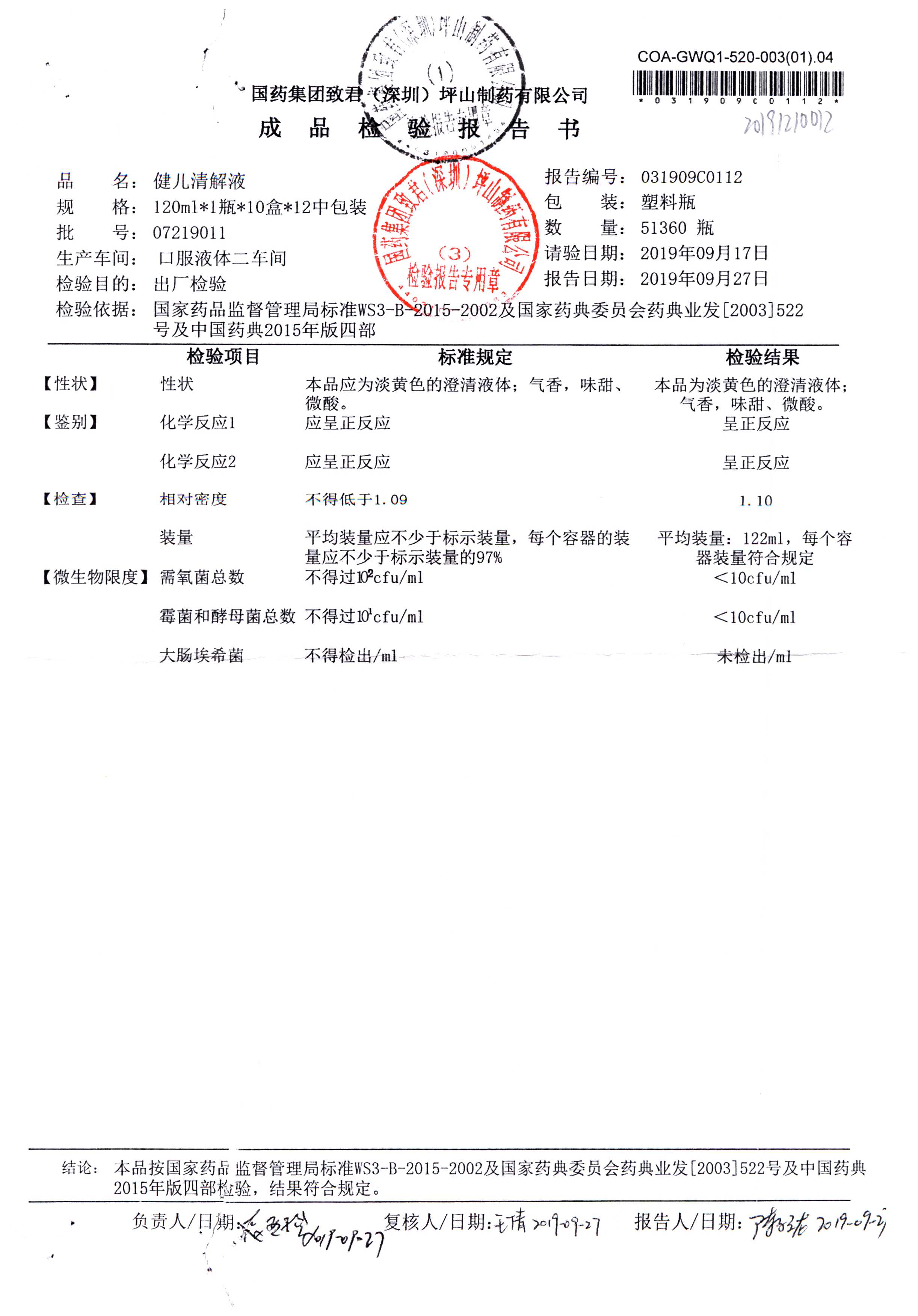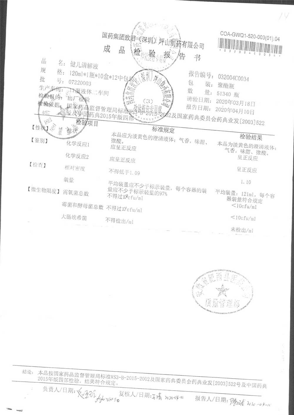 名稱 規格 批號 藥檢報告